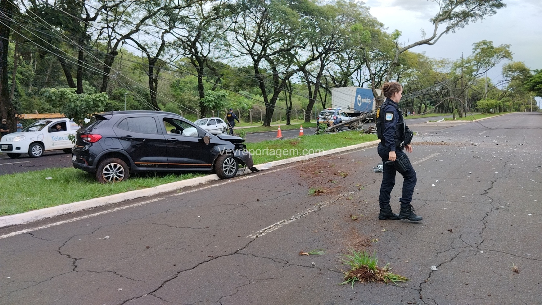 A Guarda Municipal também esteve presente, realizando a sinalização e orientação do trânsito para evitar novos acidentes no trecho.