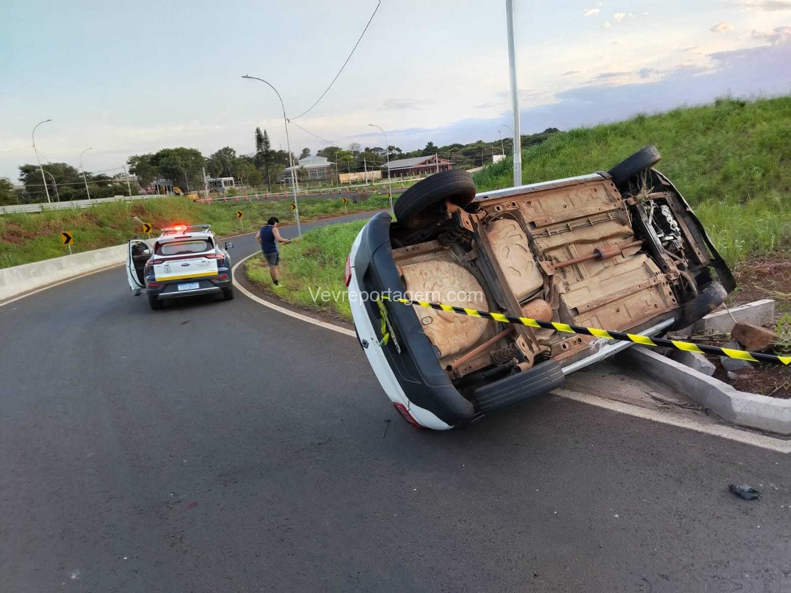 De acordo com informações da Guarda Municipal de Foz do Iguaçu, a equipe estava em deslocamento para a troca de turno quando se deparou com um veículo capotado no retorno do viaduto em frente ao hotel, no sentido Centro.