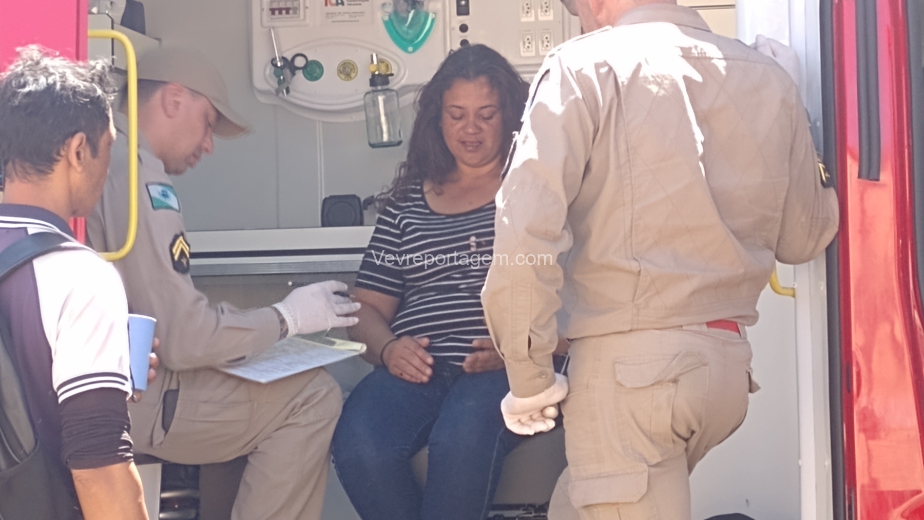 No local, os socorristas encontraram uma mulher acompanhada do marido. Ela caminhou até a ambulância para ser avaliada, mas recusou encaminhamento ao hospital após os primeiros atendimentos.