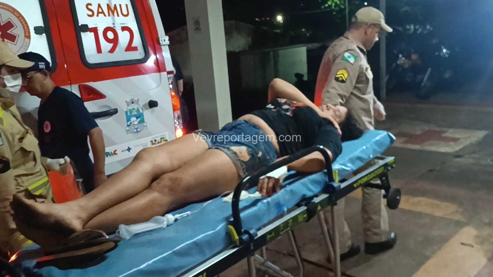 No local, foi constatado que Raquel Aparecida de Souza Prado, 36 anos, havia sido atingida por um golpe de faca. O ferimento era aparentemente superficial. Ela recebeu os primeiros atendimentos dos socorristas e foi encaminhada na ambulância para avaliação médica mais detalhada pelo médico do Samu.