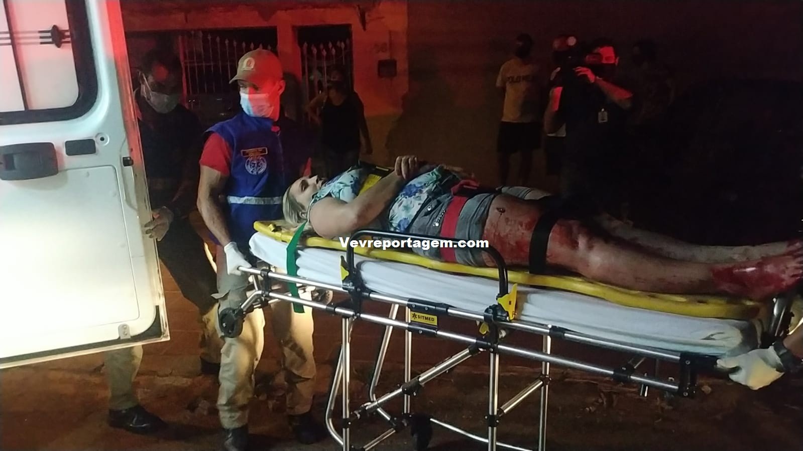 A mãe da vitima relatou a nossa equipe, que eles estavam sentados dentro do patio da residência conversando, quando o homem vulgo “Alemão”, chegou dizendo e aquelas mensagens, em seguida partiu para cima da vitima e começou a desferir golpes de facada, a vitima entrou em luta corporal e a mãe da vitima entrou na briga e levou uma facada no dedo, nisso a vitima conseguiu sair correndo toda ensanguentada e foi pedir ajuda no vizinho. O “Alemão” saiu correndo em rumo ignorado. Tudo indicada que a vitima e o agressor estavam a vários dias discutindo por causa de uma divida.
