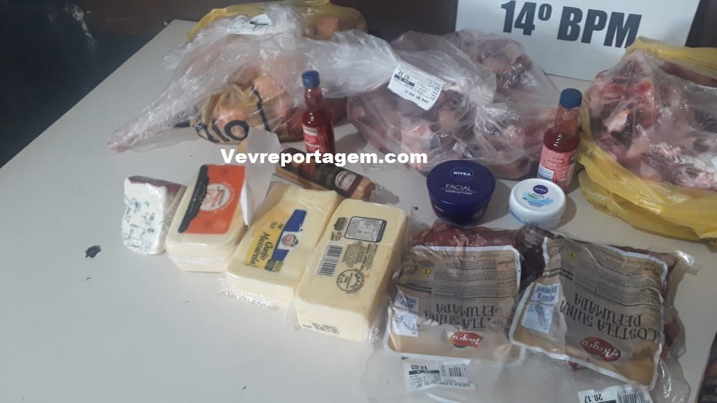 Os policiais da RPA Centro, foram informados que uma mulher juntamente com sua filha, foram detidas no interior do supermercado localizado no centro furtando carne e produtos de beleza foi encontrado na bolsa produtos de beleza da Avon e carne sendo rabada.