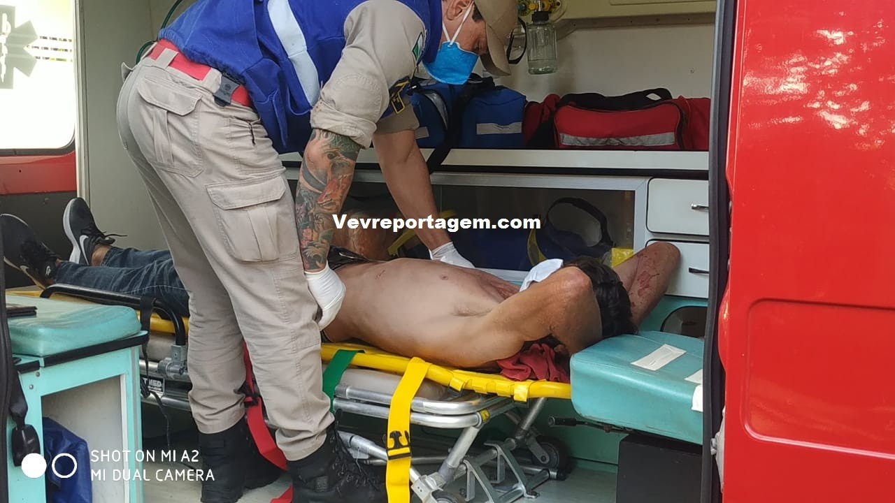 No local, foi constatado a ocorrência, onde a vítima estava perambulando na frente de sua residência, rapidamente os socorristas avaliaram a vítima e encaminharam para o interior da ambulância para melhor ser avaliado até a chegada do médico de plantão.