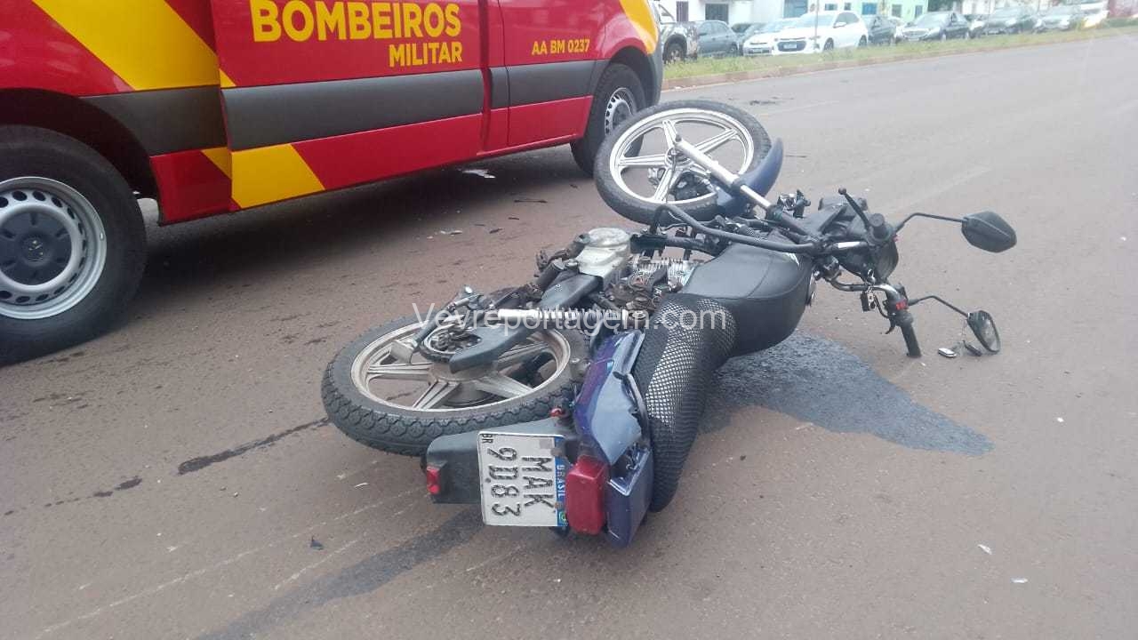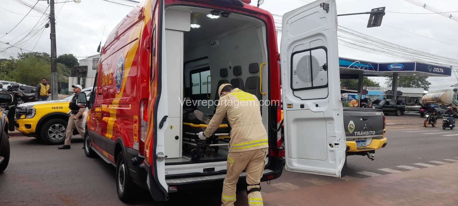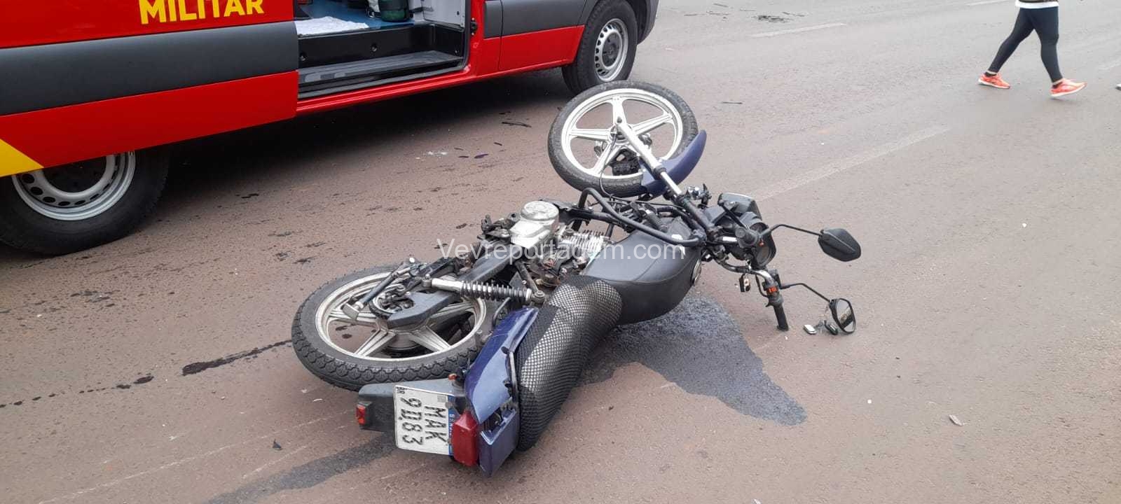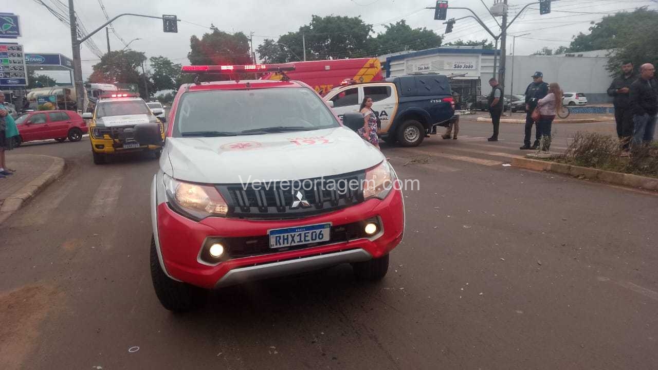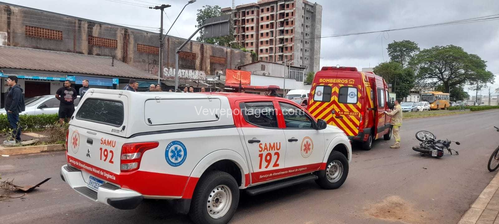 O acidente envolveu um automóvel e uma motocicleta. Conforme as informações, a garupa da moto foi encontrada inconsciente caída ao solo.