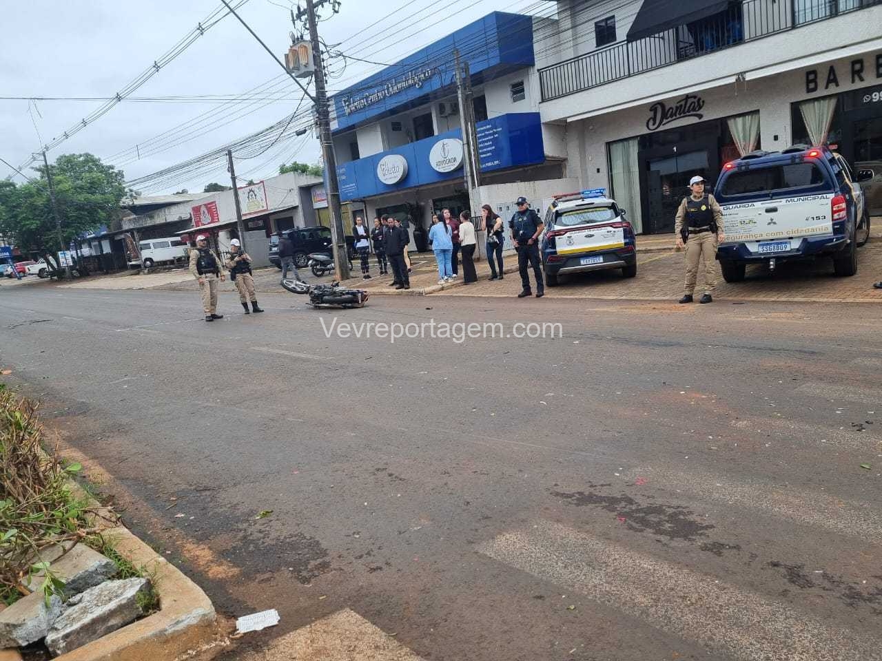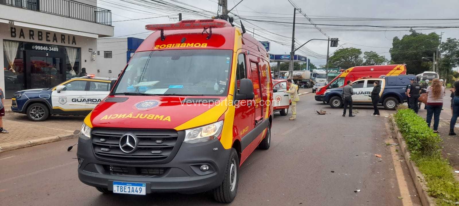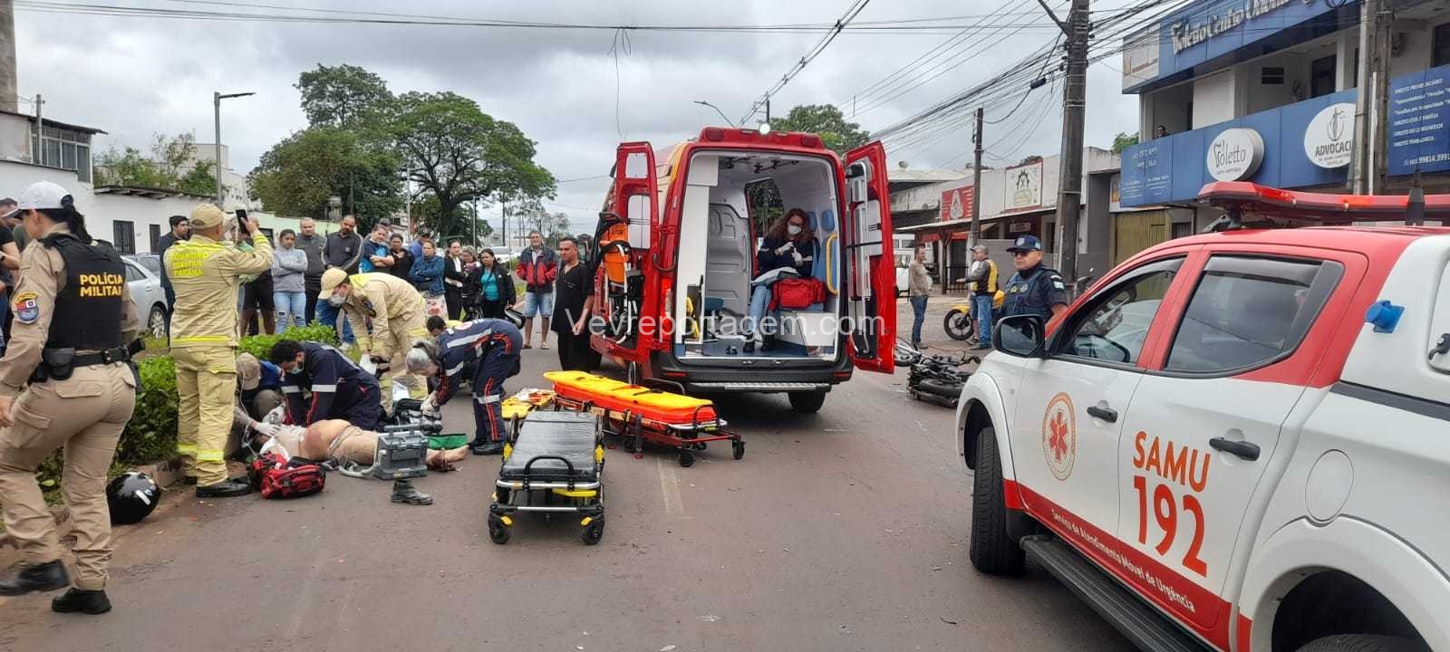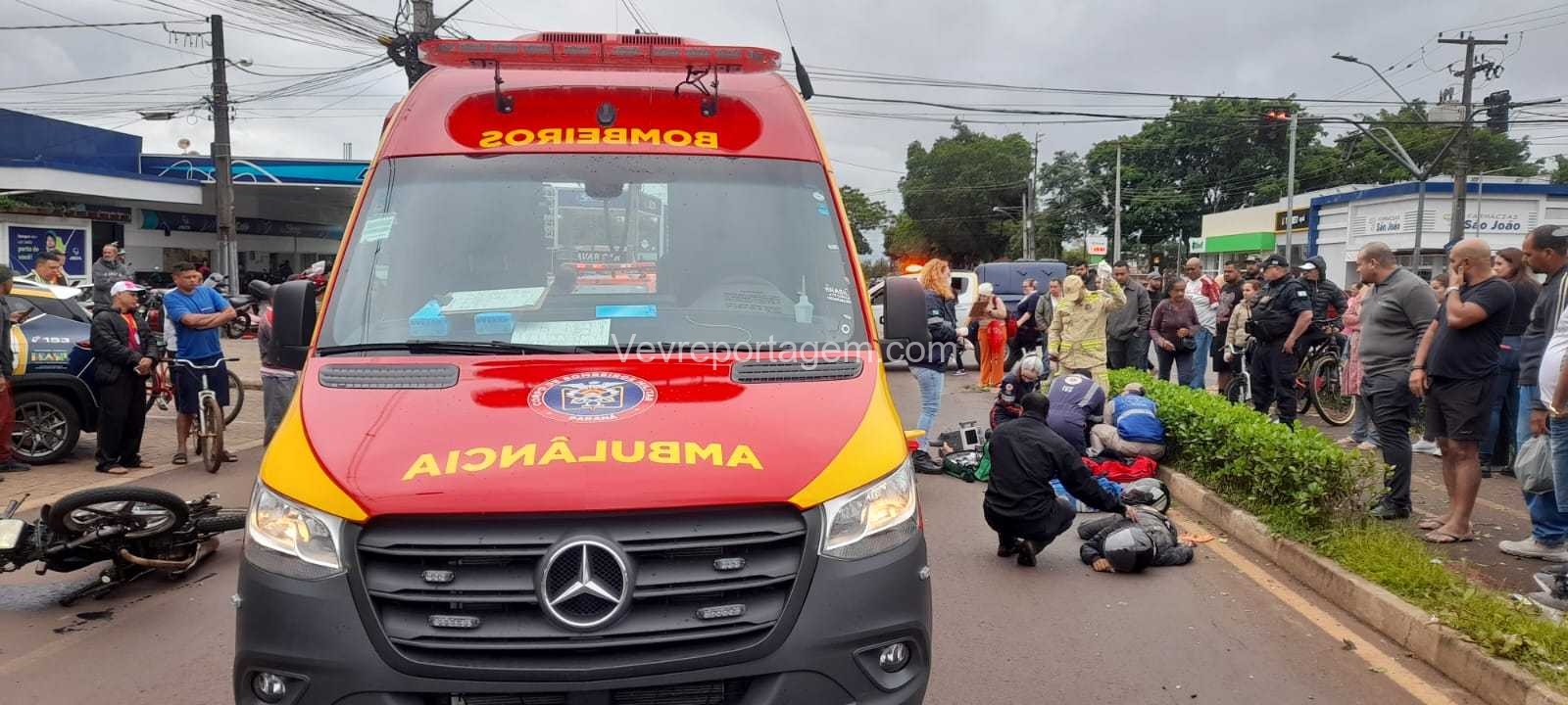 O acidente envolveu um automóvel e uma motocicleta. Conforme as informações, a garupa da moto foi encontrada inconsciente caída ao solo.