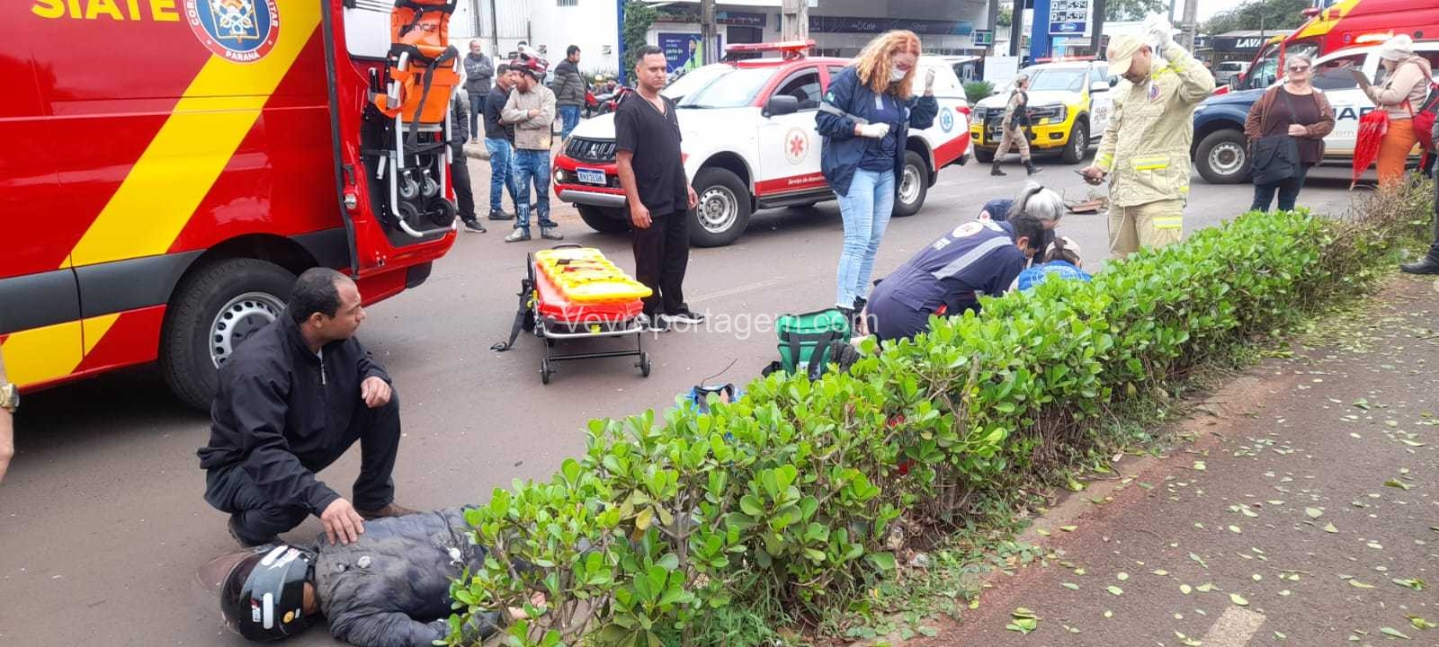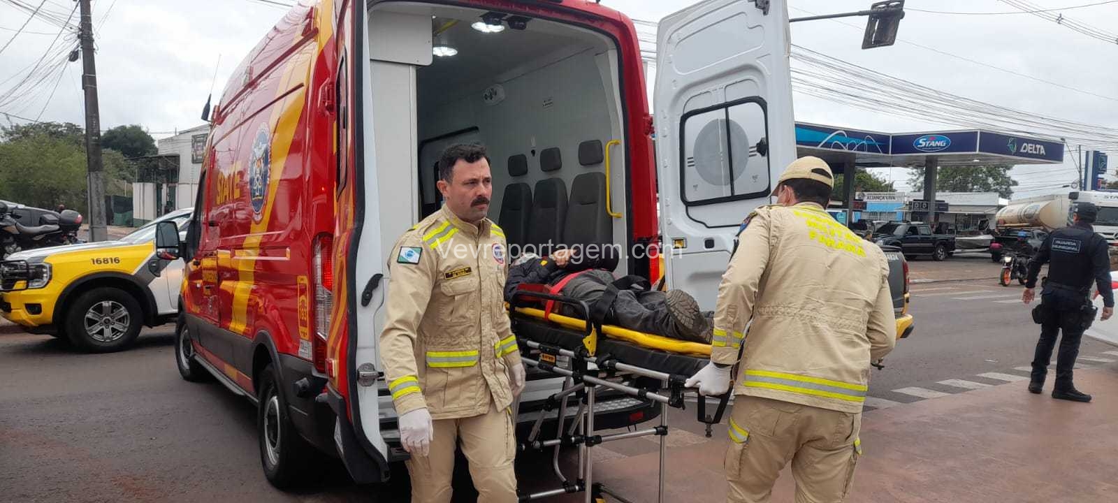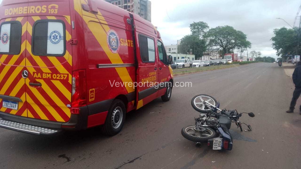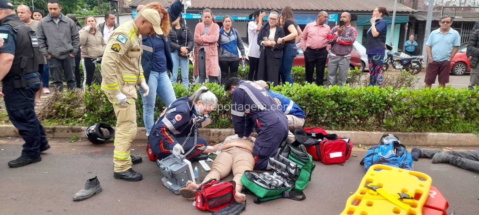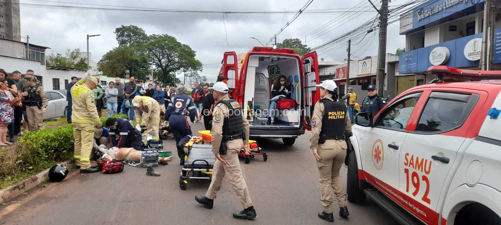 O acidente envolveu um automóvel e uma motocicleta. Conforme as informações, a garupa da moto foi encontrada inconsciente caída ao solo.