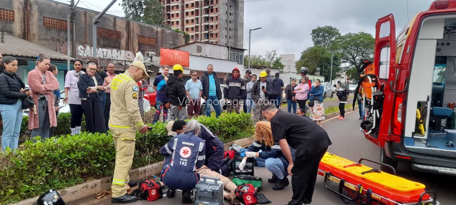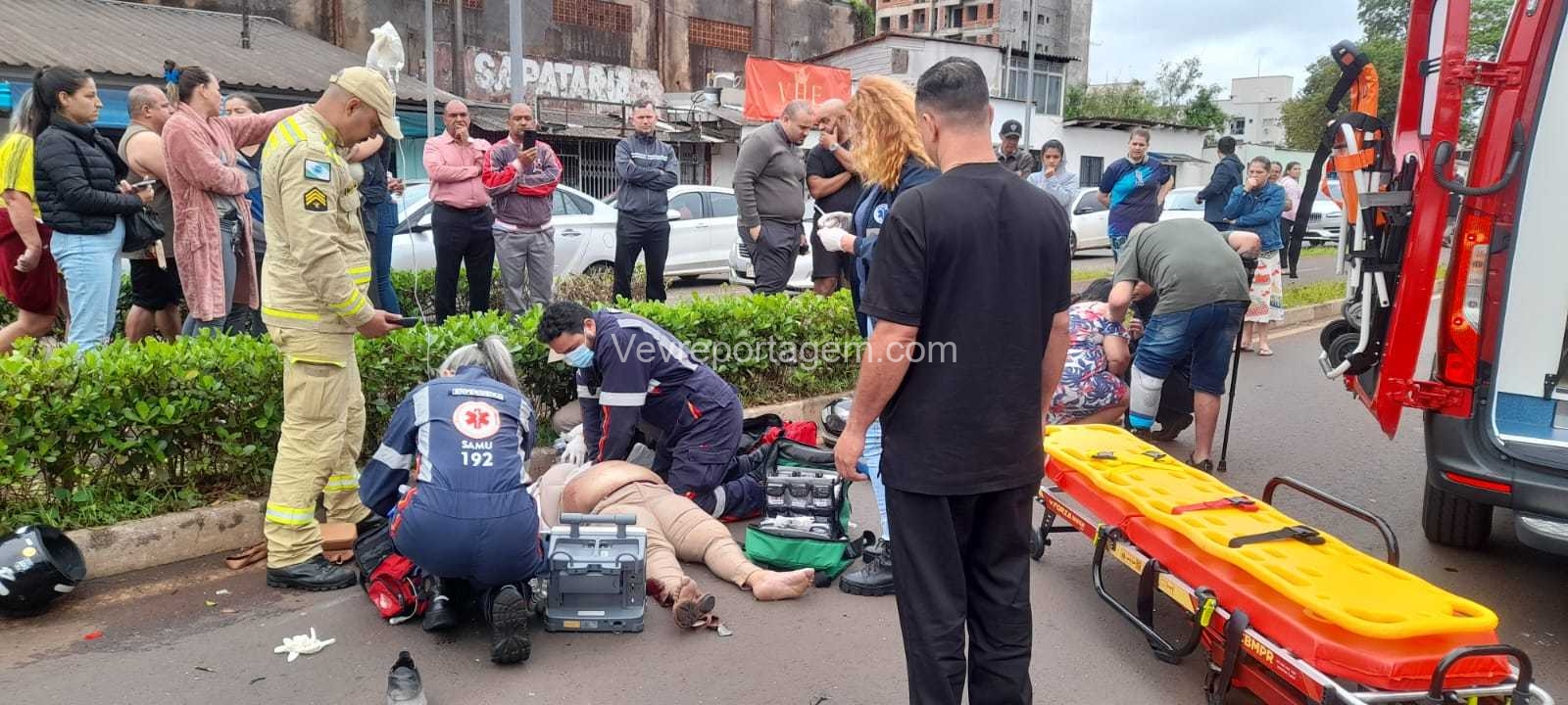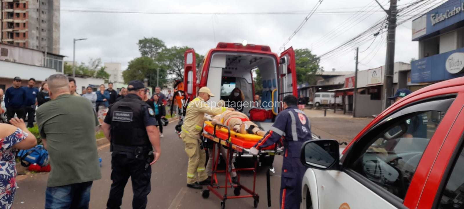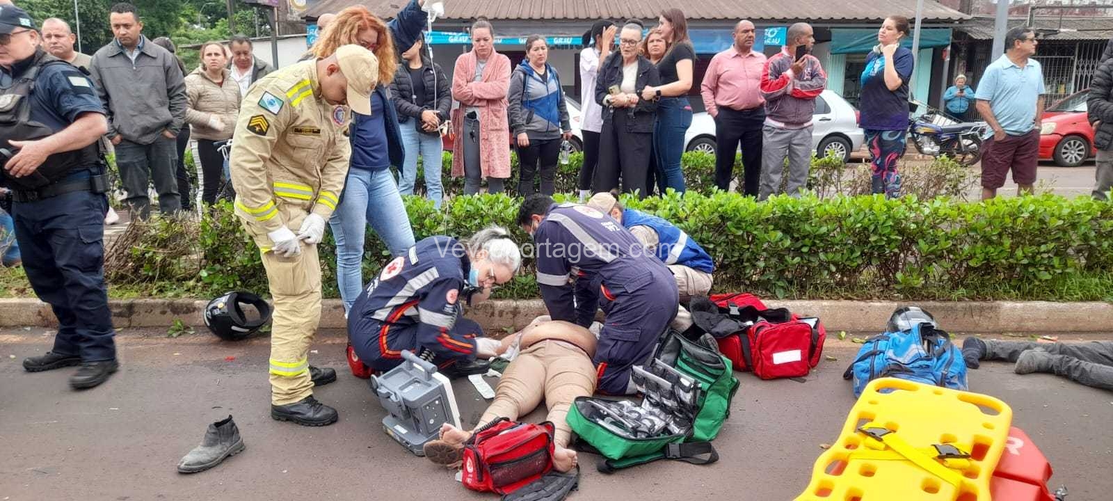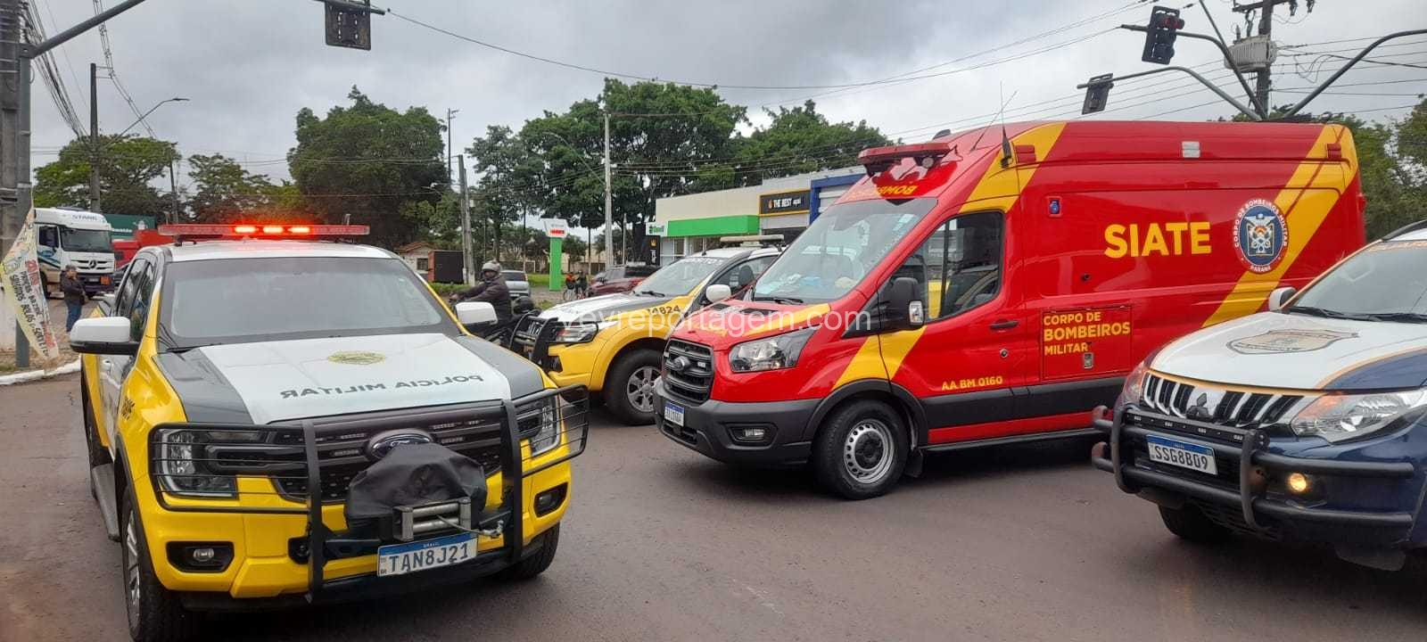 O acidente envolveu um automóvel e uma motocicleta. Conforme as informações, a garupa da moto foi encontrada inconsciente caída ao solo.