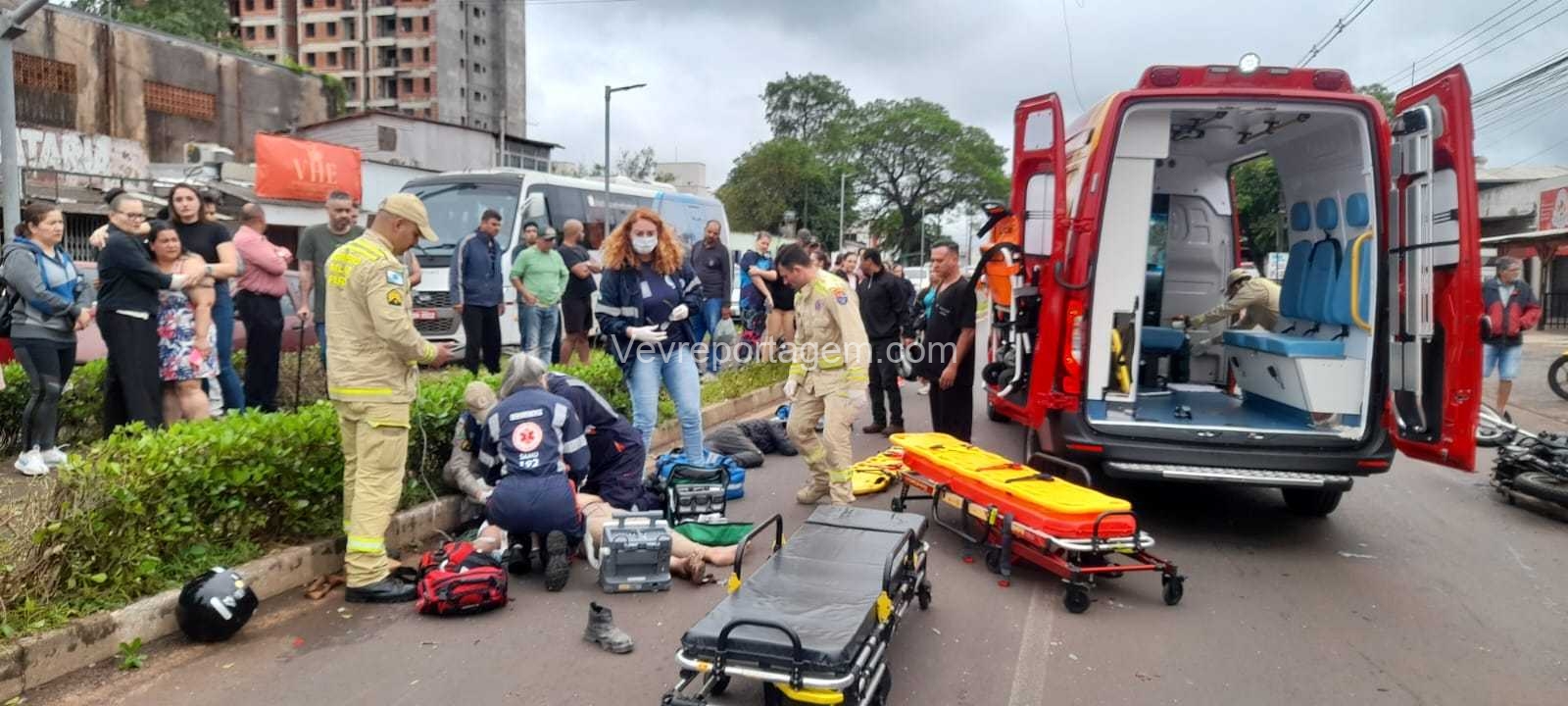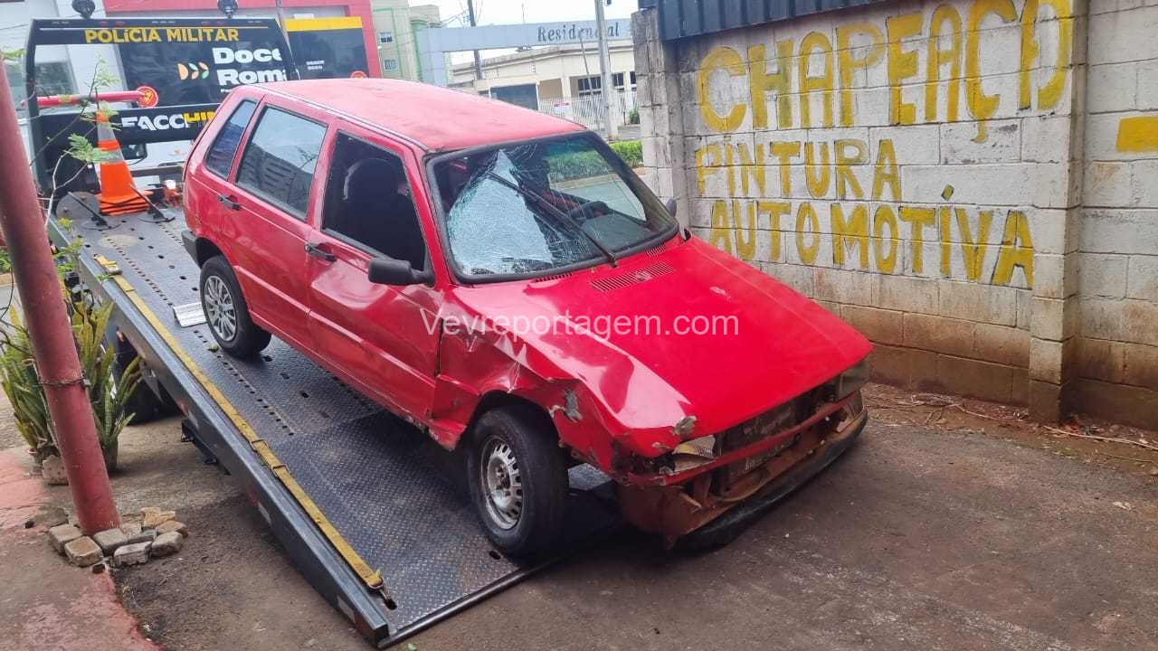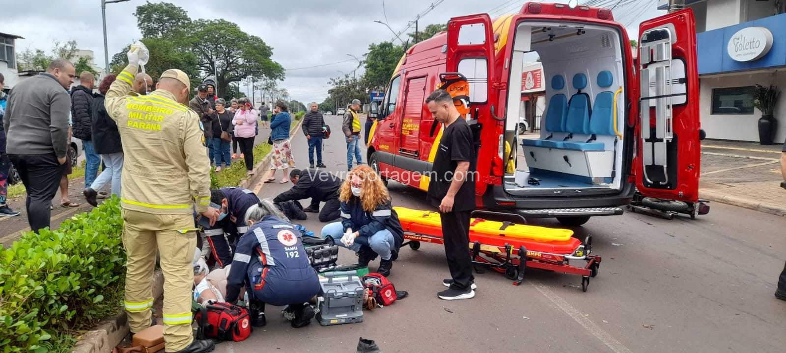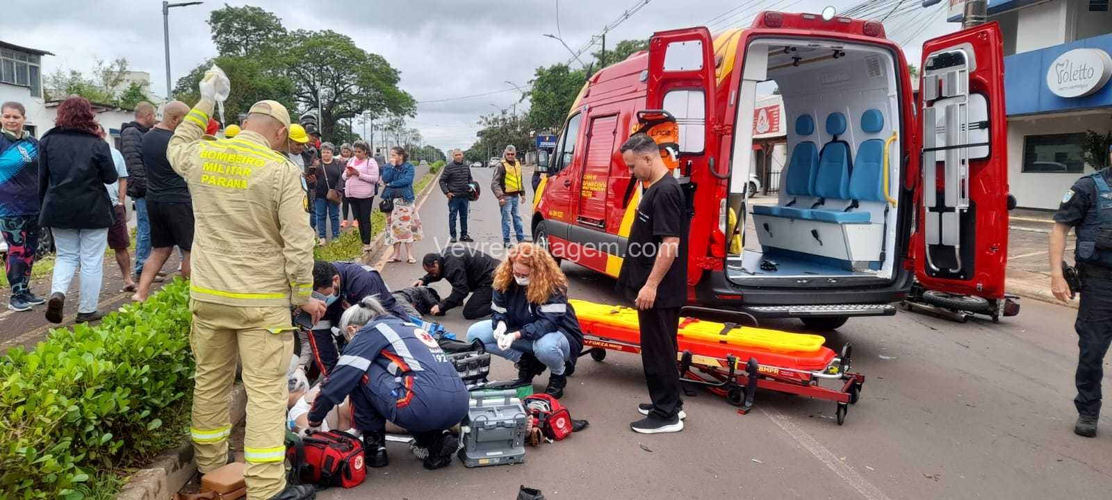 O acidente envolveu um automóvel e uma motocicleta. Conforme as informações, a garupa da moto foi encontrada inconsciente caída ao solo.