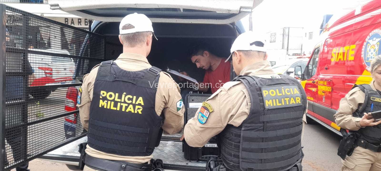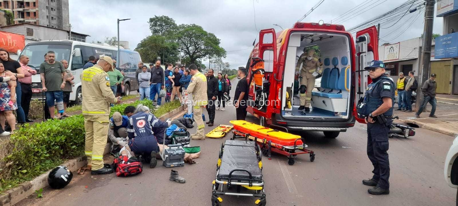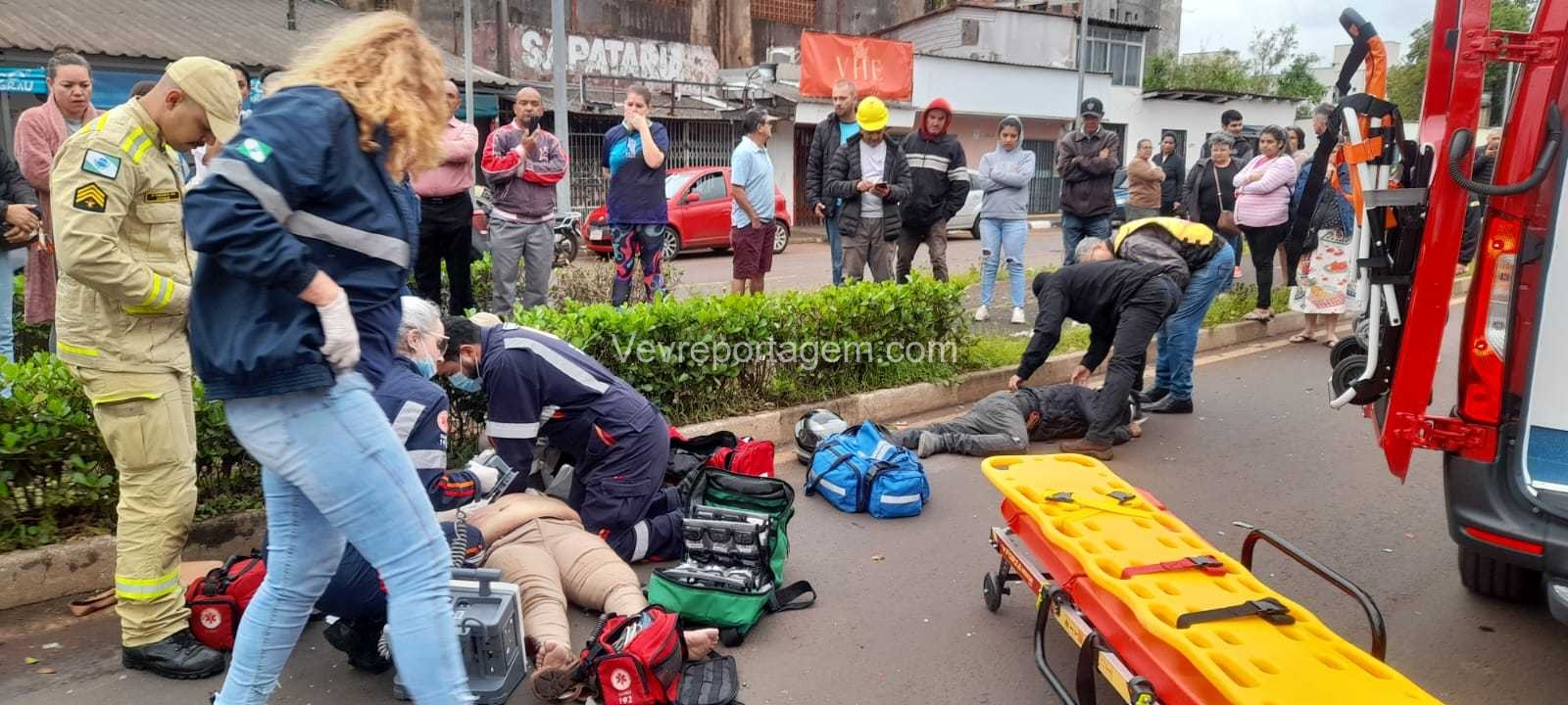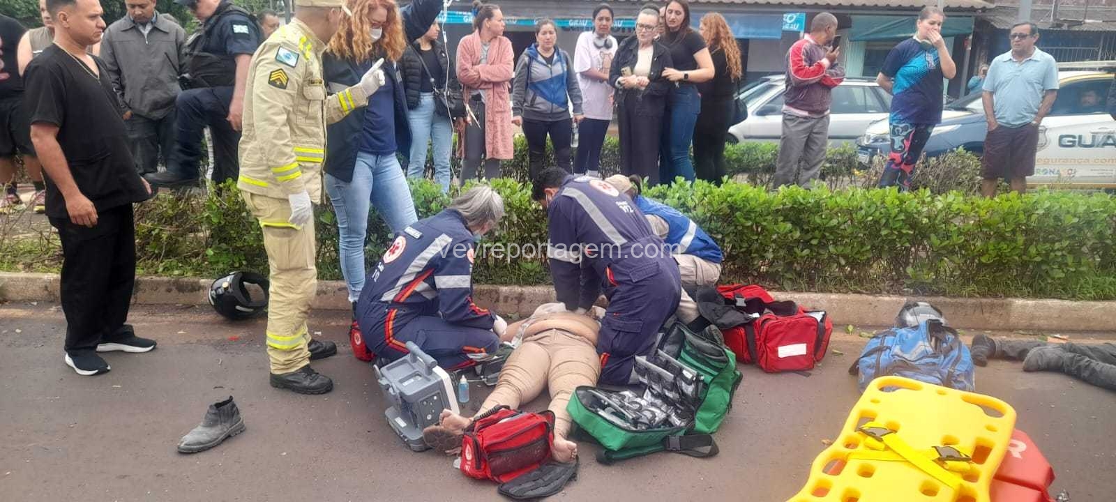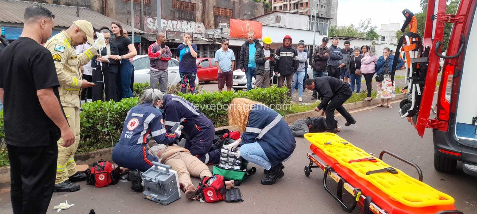 O acidente envolveu um automóvel e uma motocicleta. Conforme as informações, a garupa da moto foi encontrada inconsciente caída ao solo.