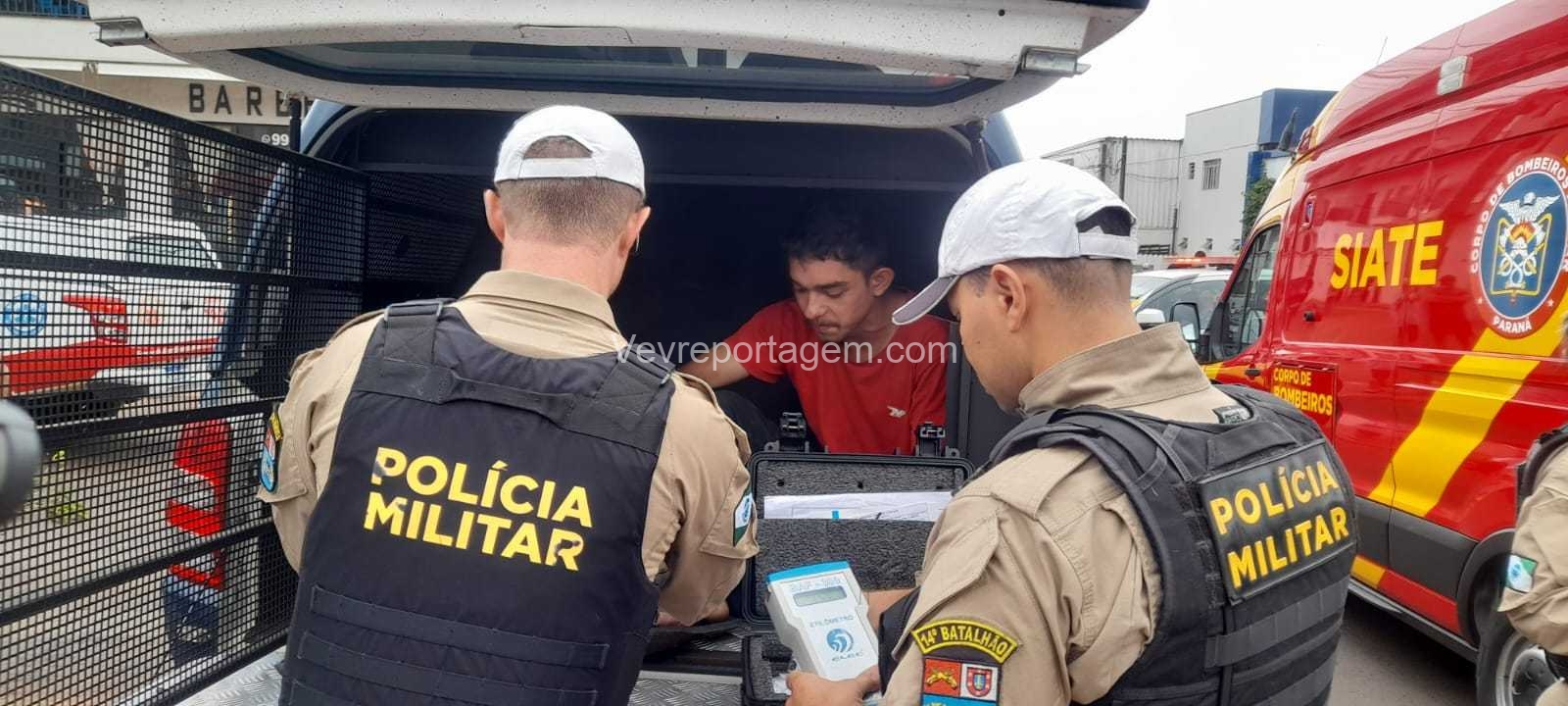 A Polícia Militar também esteve presente no local. O Pelotão de Acidentes do 14º BPM realizou o teste do bafômetro, que apontou 0,24 mg/L de álcool no sangue do motorista.