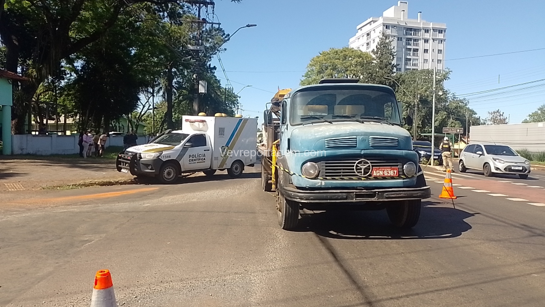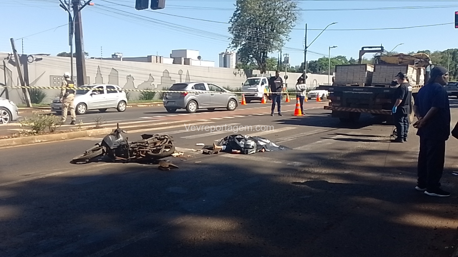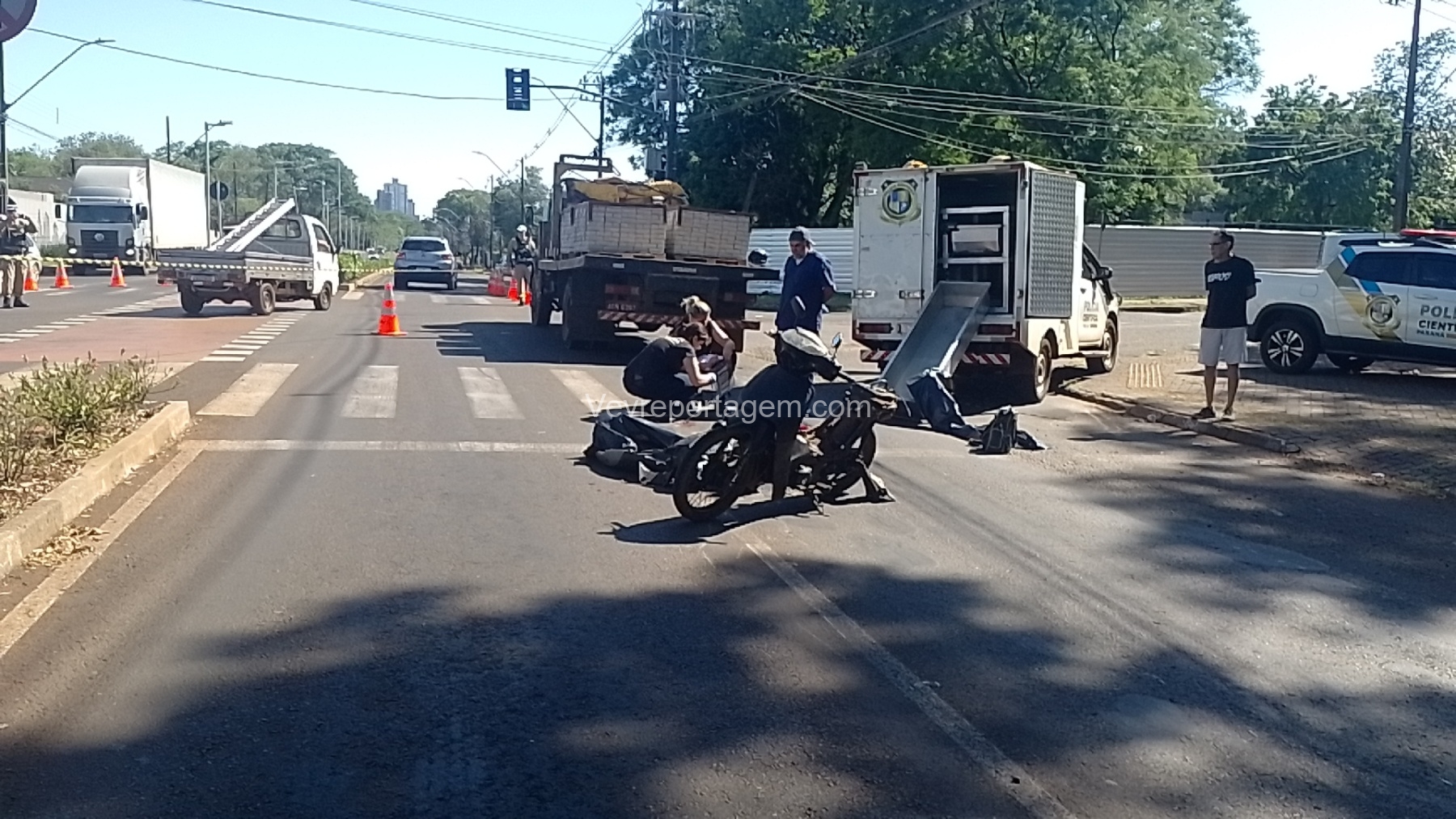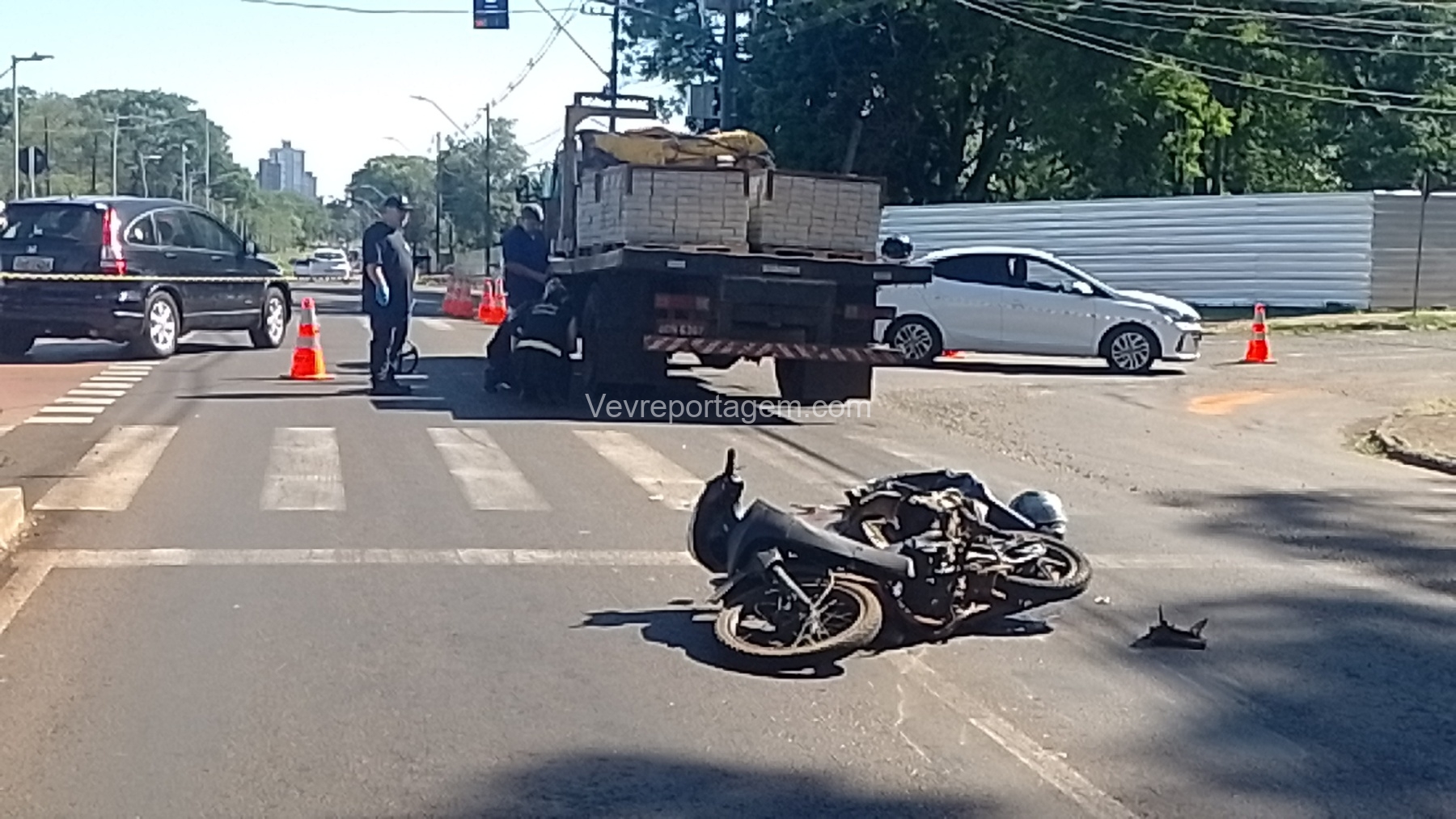 Na manhã desta quinta-feira (6), um grave acidente de trânsito foi registrado na Avenida General Meira, em frente ao Colégio Agrícola, em Foz do Iguaçu. A colisão envolveu uma motocicleta e um caminhão.