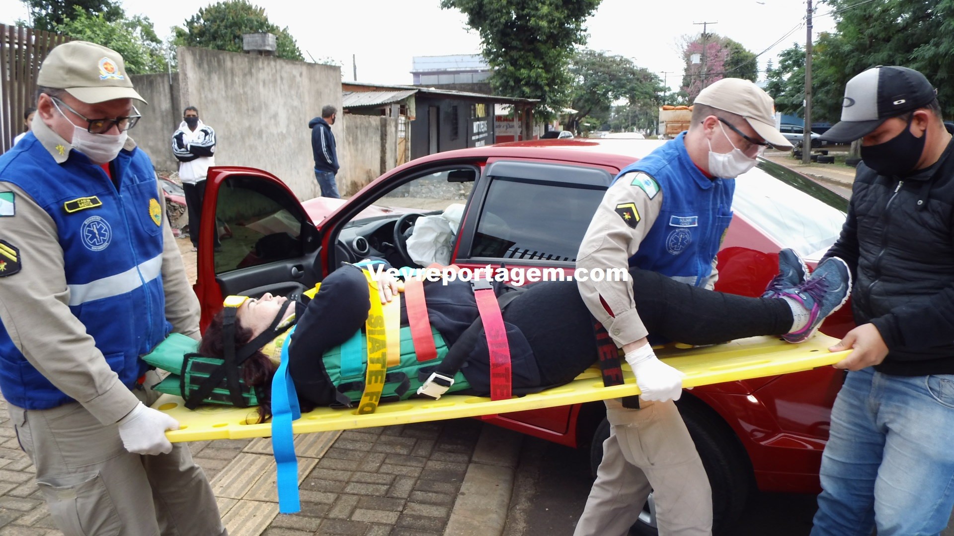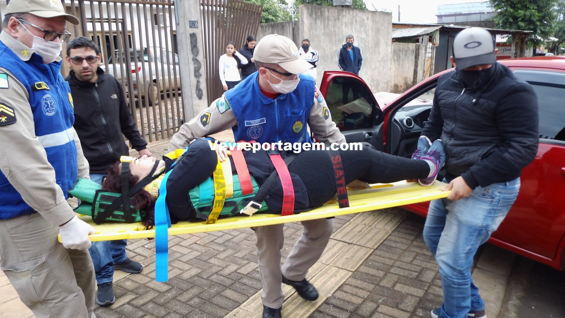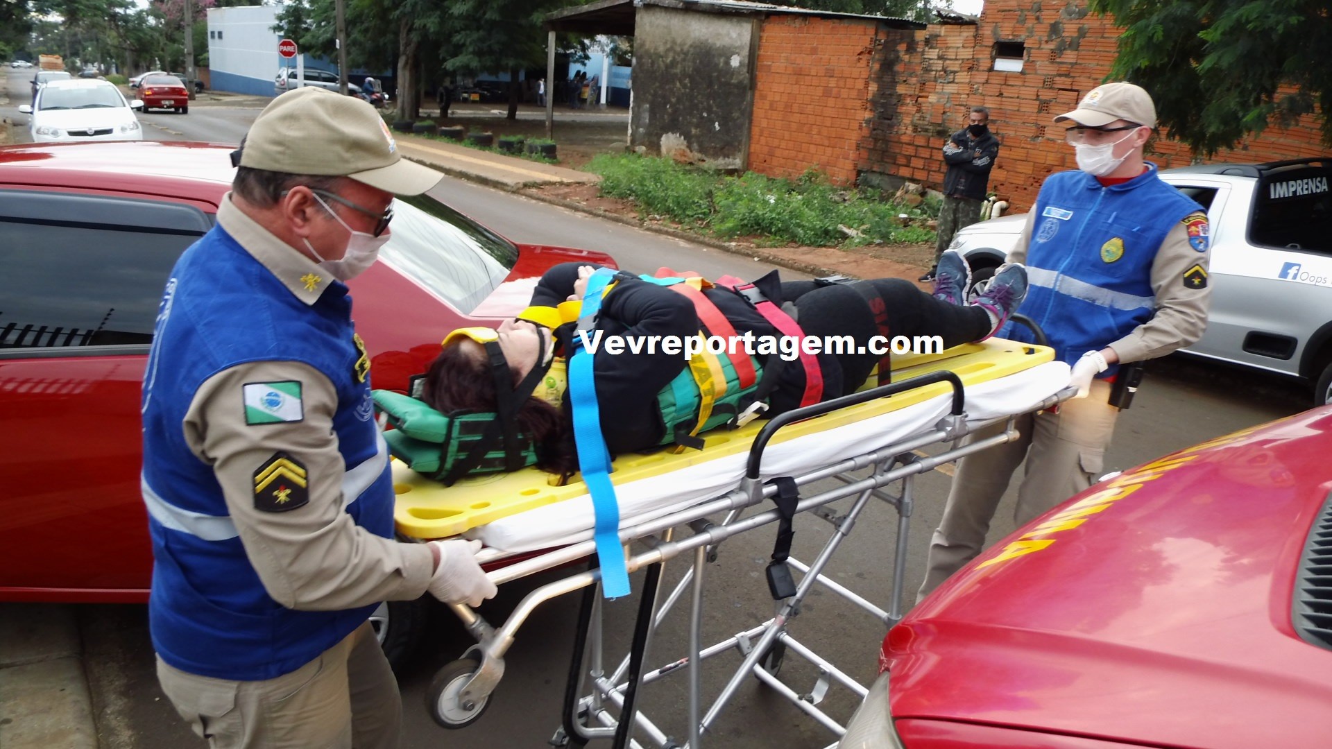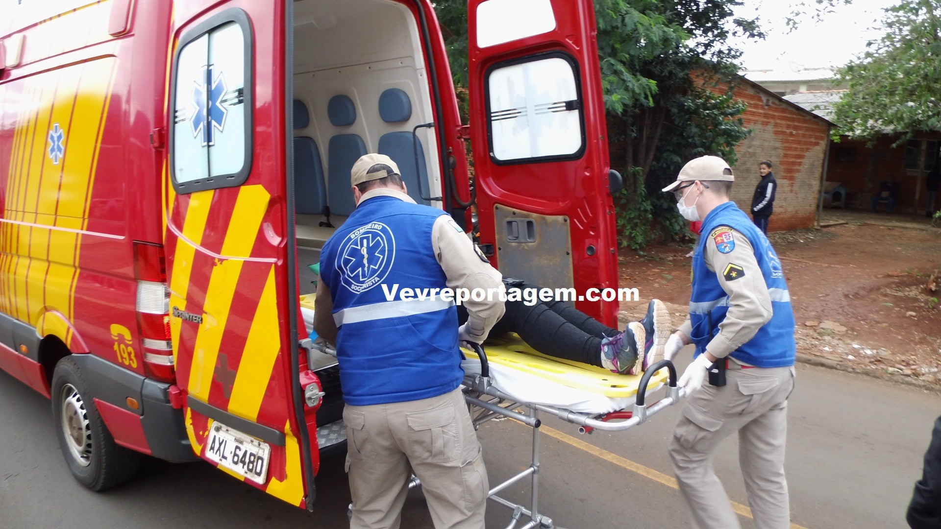 No local os socorristas constataram a ocorrência, rapidamente avaliaram a vitima que sentia fortes dores pelo corpo, principalmente nas costas, os socorristas imobilizaram a vitima e encaminharam para o interior da ambulância para melhor ser avaliada.