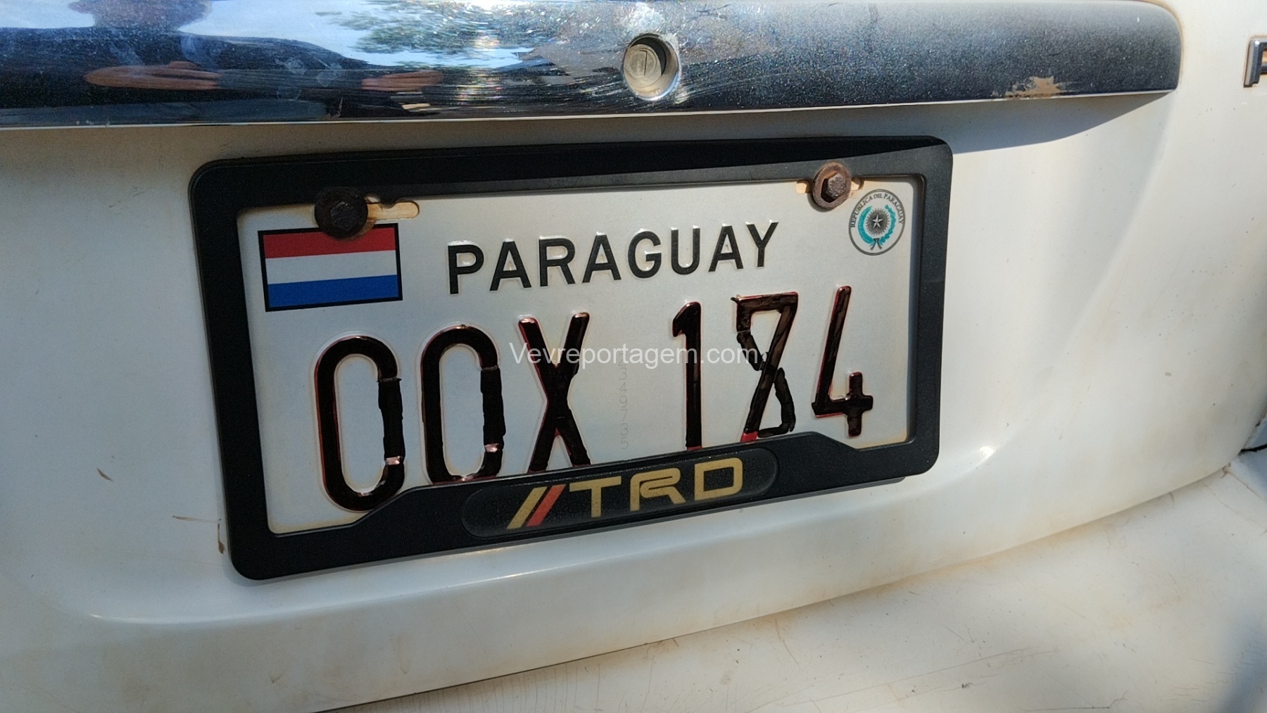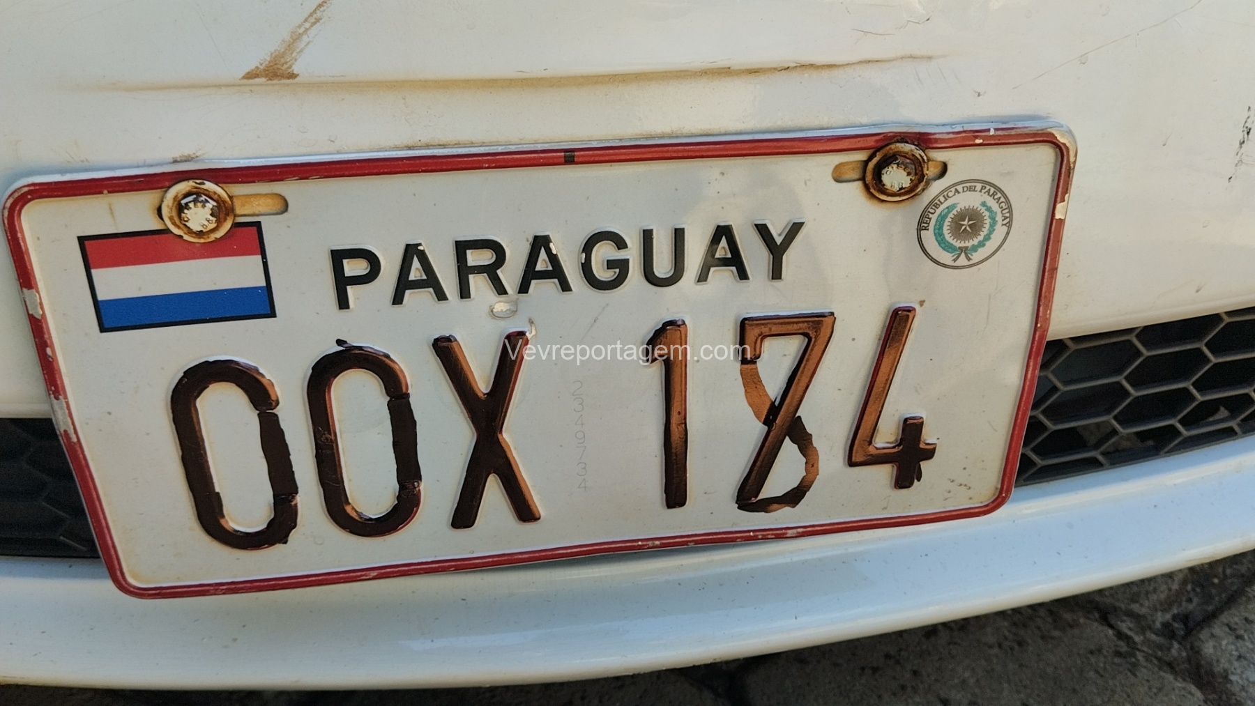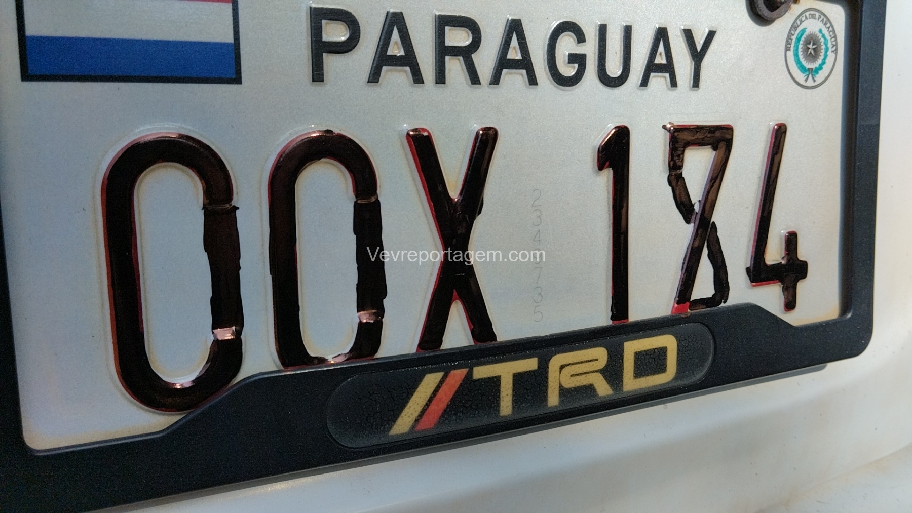 Durante a verificação do veículo utilizado pelos suspeitos, os policiais constataram que a placa estava adulterada, tendo sido pintada para modificar a numeração original, que seria CCX-174.