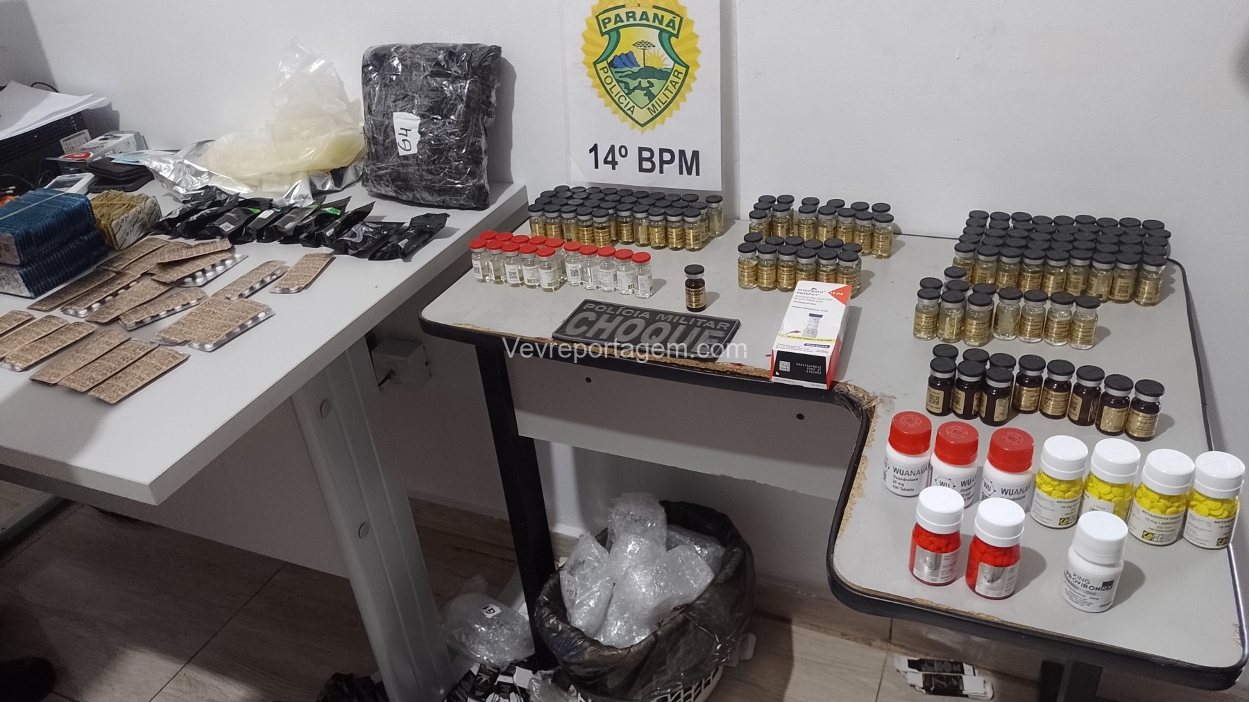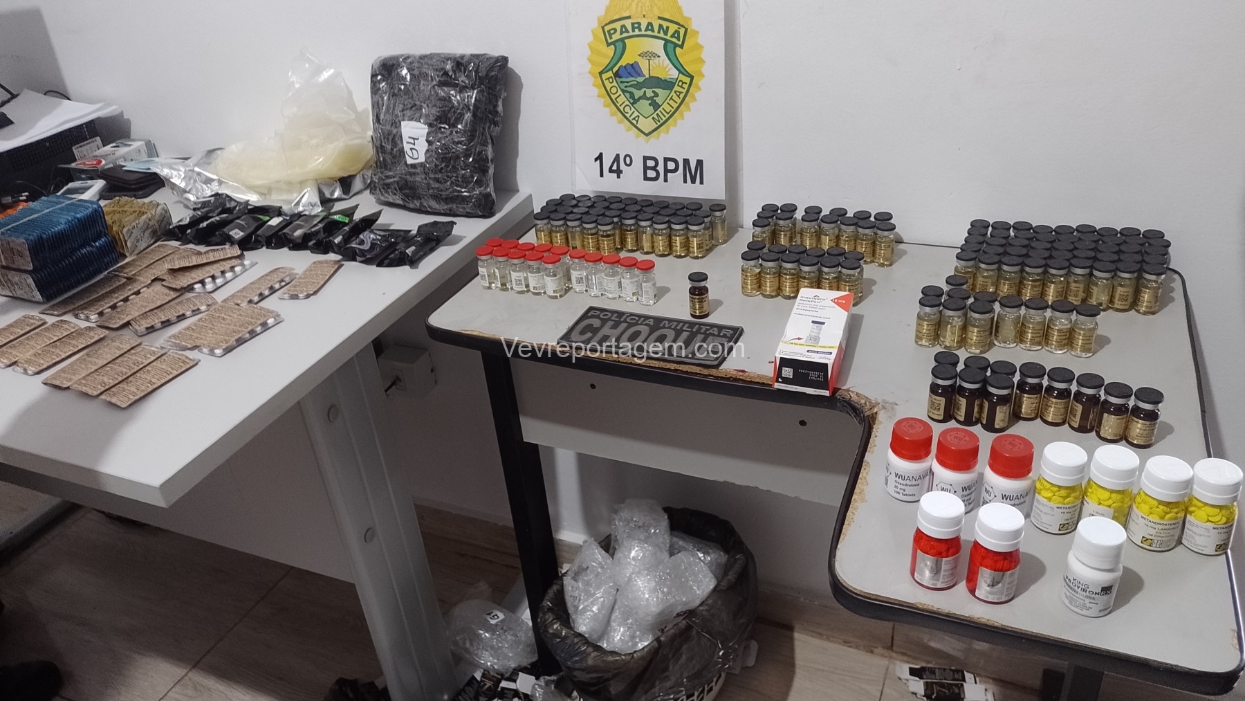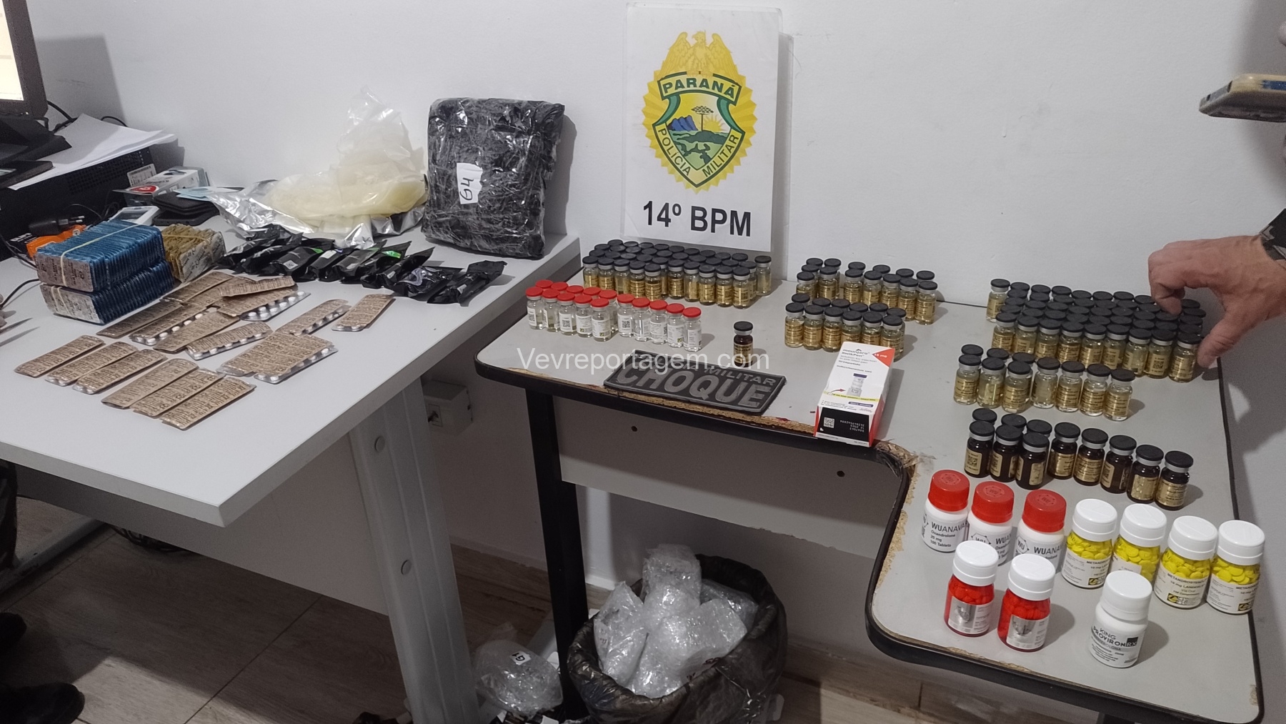 Ao abrir parcialmente o equipamento, os agentes localizaram uma grande quantidade de anabolizantes escondidos em seu interior. O passageiro recebeu voz de prisão imediatamente, enquanto o motorista foi conduzido à 6ª Subdivisão Policial (SDP) como testemunha.