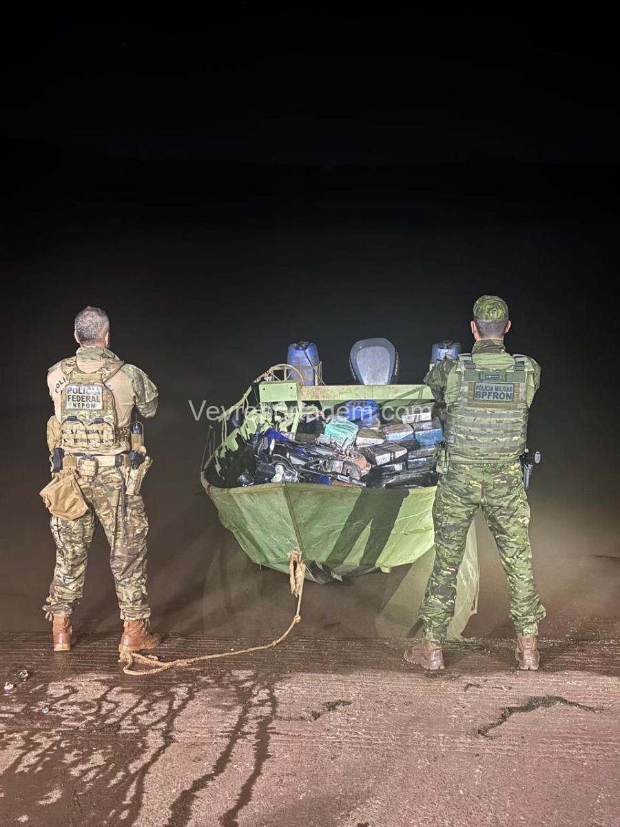 No interior da embarcação abandonada foram encontrados dezenas de fardos de maconha prensada, que após pesagem totalizaram 1.445,3 kg do entorpecente. Durante as buscas na região, também foi localizada uma motocicleta abandonada, possivelmente utilizada por carregadores que aguardavam para realizar o transbordo da droga. A embarcação, equipada com motor de 130 HP, a motocicleta e a droga foram encaminhadas à Delegacia de Polícia Federal em Foz do Iguaçu para os procedimentos cabíveis.