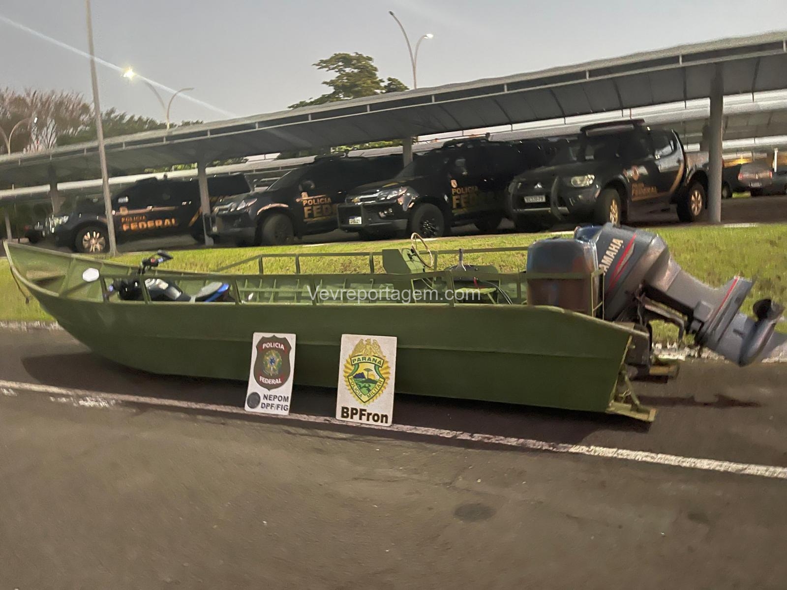 Equipes embarcadas que realizavam patrulhamento noturno identificaram, por volta da 1h30, um barco realizando a travessia do lago. Ao perceber a aproximação policial, o condutor empreendeu fuga e projetou a embarcação contra a margem brasileira, em um porto clandestino localizado na área rural de Missal/PR, fugindo em seguida para a mata, não sendo localizado.