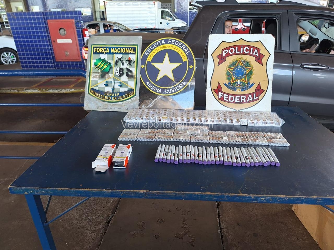 Uma ação conjunta entre a Polícia Federal e a Receita Federal do Brasil resultou na apreensão de medicamentos para emagrecimento de origem estrangeira e na prisão em flagrante de um cidadão paraguaio, na tarde de ontem, quinta-feira (19/03), na aduana da Ponte Internacional da Amizade, em Foz do Iguaçu/PR.