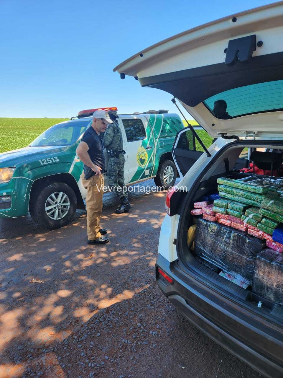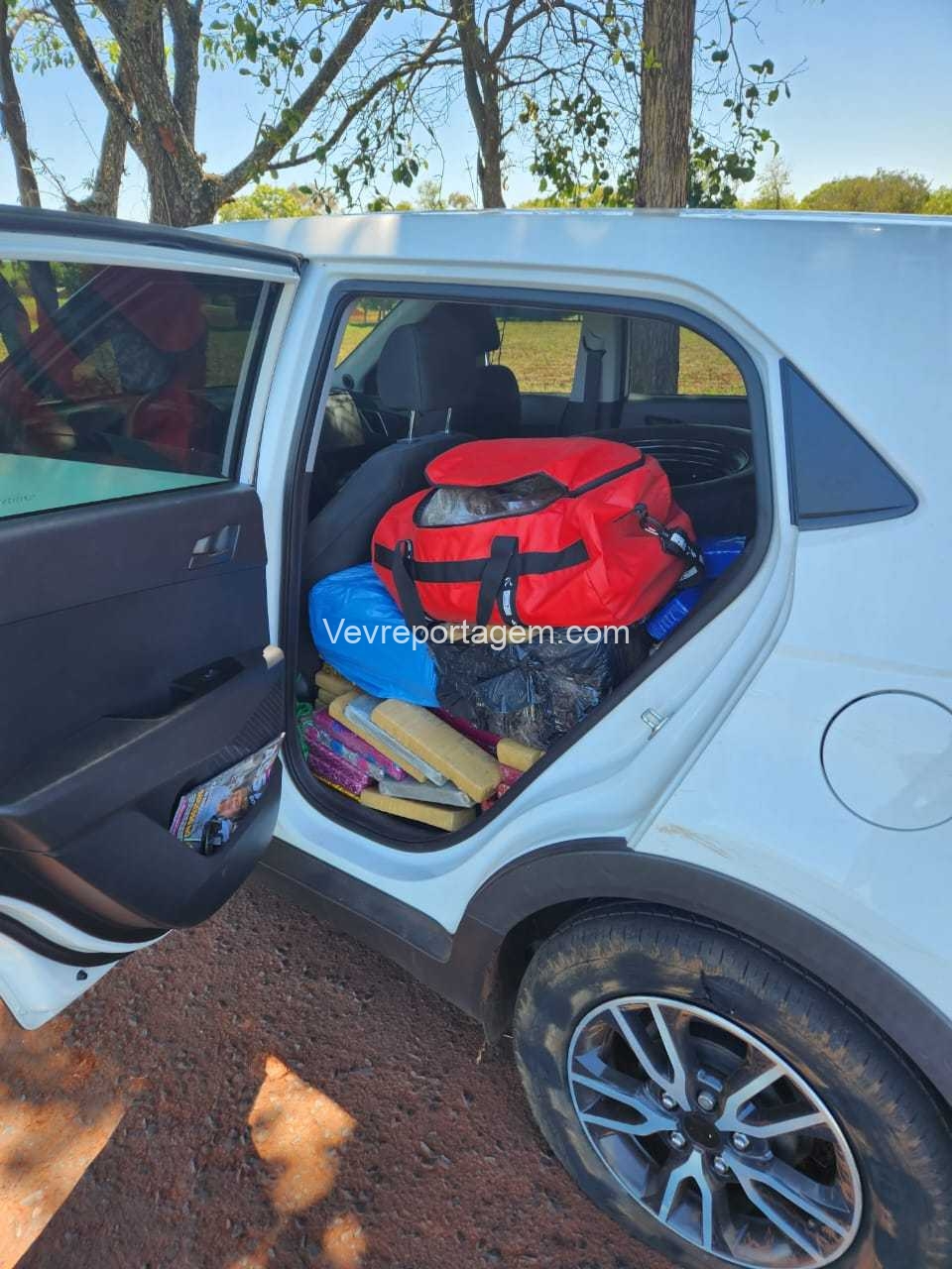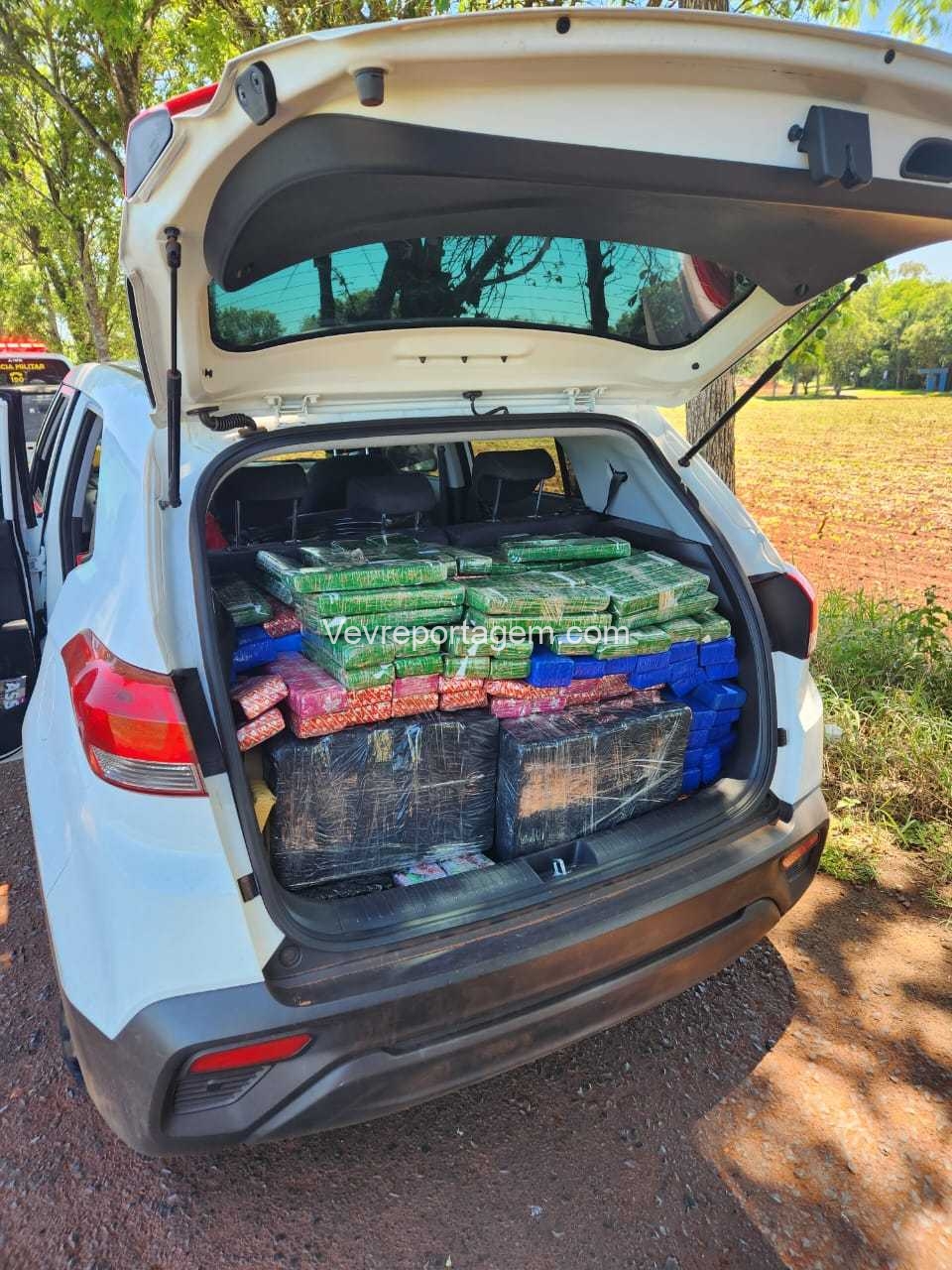 Sendo assim dada ordem de parada, onde em seguida foi abordado, na revista pessoal no condutor nada foi encontrado, porém, no interior do automóvel foi localizado diversos (tabletes) de maconha e dois carregadores de pistola 9mm.