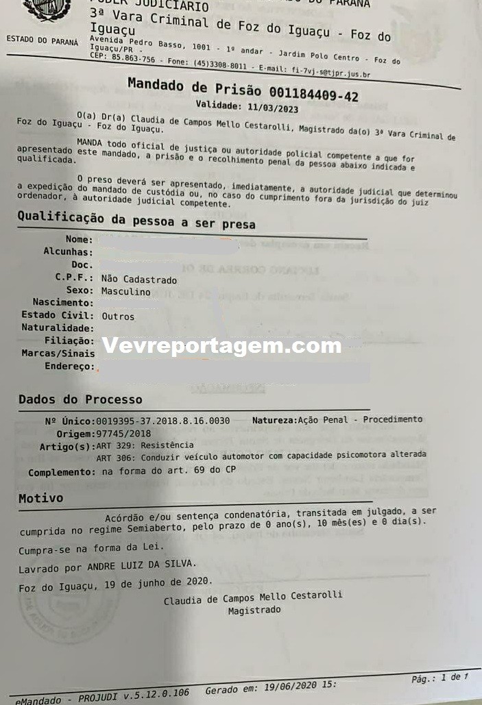 O homem de 28 anos, que tinha contra si um mandado de prisão em aberto pelos crimes. Art. 306 – Conduzir veículo automotor com capacidade psicomotora alterada. Art. 329 – Resistência.