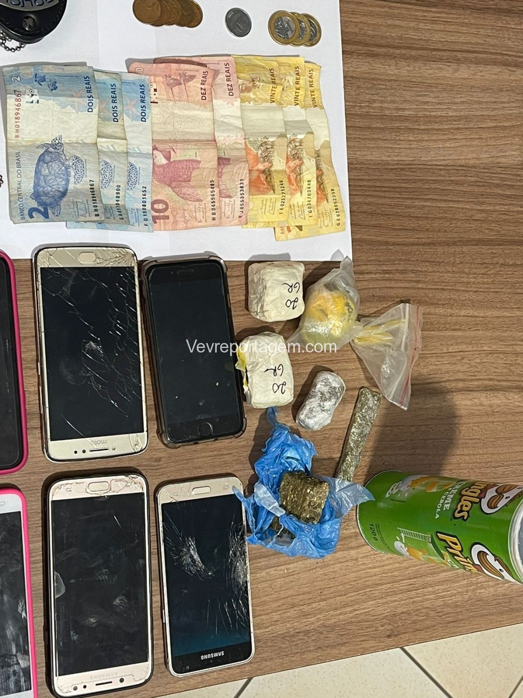 Que a equipe em diligencia no local abordou o irmão do autor, que permitiu a entrada na residencia, logo ao entrar no imóvel, foi visualizado alguns invólucros que totalizaram 110 gramas de maconha, o qual o autor alegou ser para uso próprio, também foi encontrado um recipiente com dinheiro trocado e moedas totalizando R$ 91.00 e também foram encontrados 06 (seis) aparelhos celulares na posse do autor.