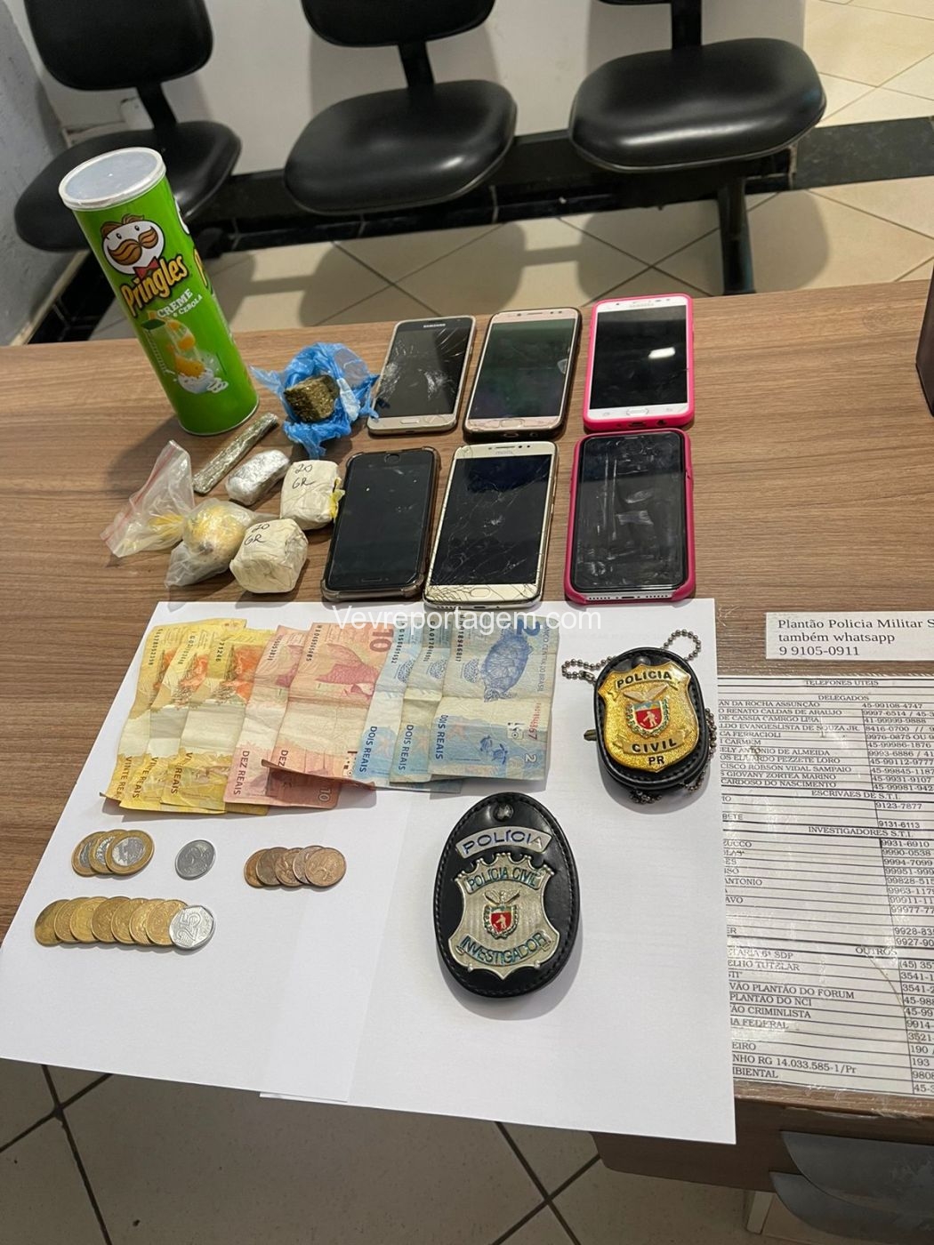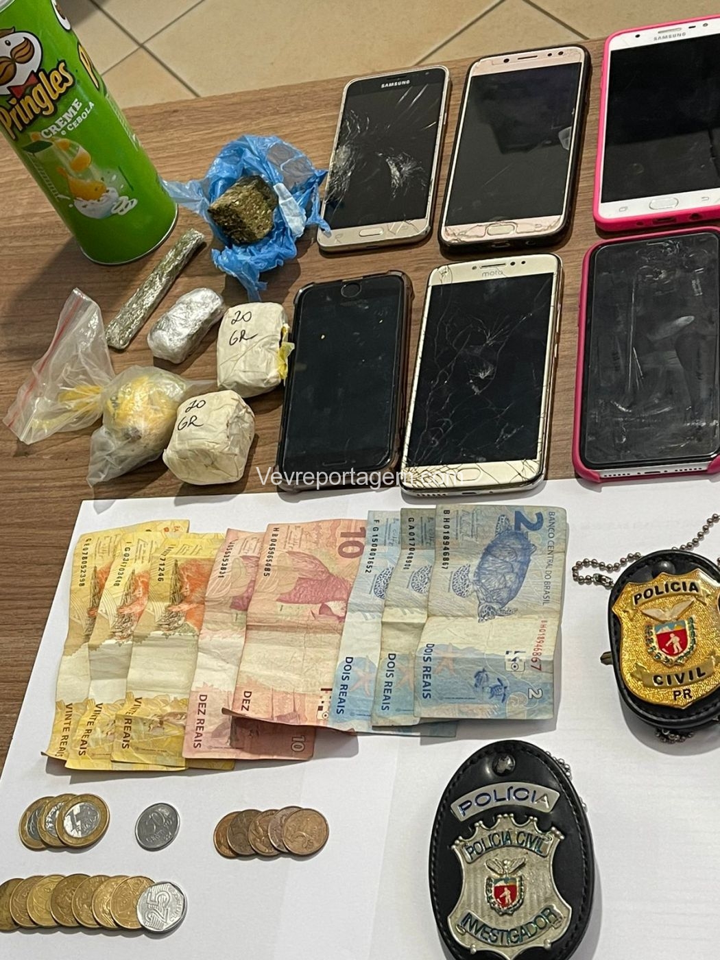 Na manhã de quarta-feira (09), durante investigações de diversos crimes de furtos ocorridos na cidade, a equipe recebeu informações que um homem com idade 20 anos seria o autor dos delitos investigados, além desses crimes chegaram denuncias anonimas de que o suspeito também estava traficando drogas em sua residencia Rua Domingos favarin.