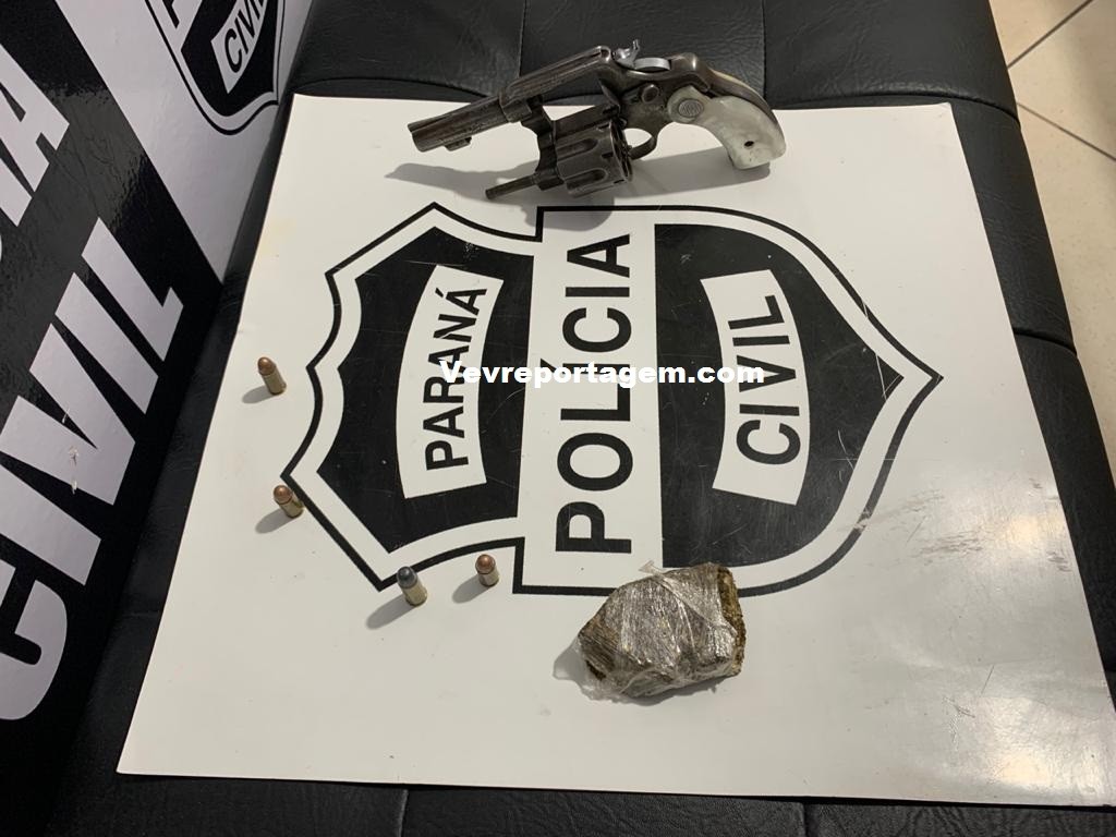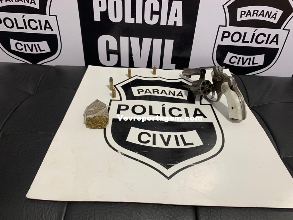 A Polícia Civil de Santa Terezinha de Itaipu prendeu em flagrante pelo crime de porte ilegal de arma de fogo, drogas para consumo e mandado de prisão pelo crime de tráfico de drogas, homem, 22 anos de idade, no bairro BNH.