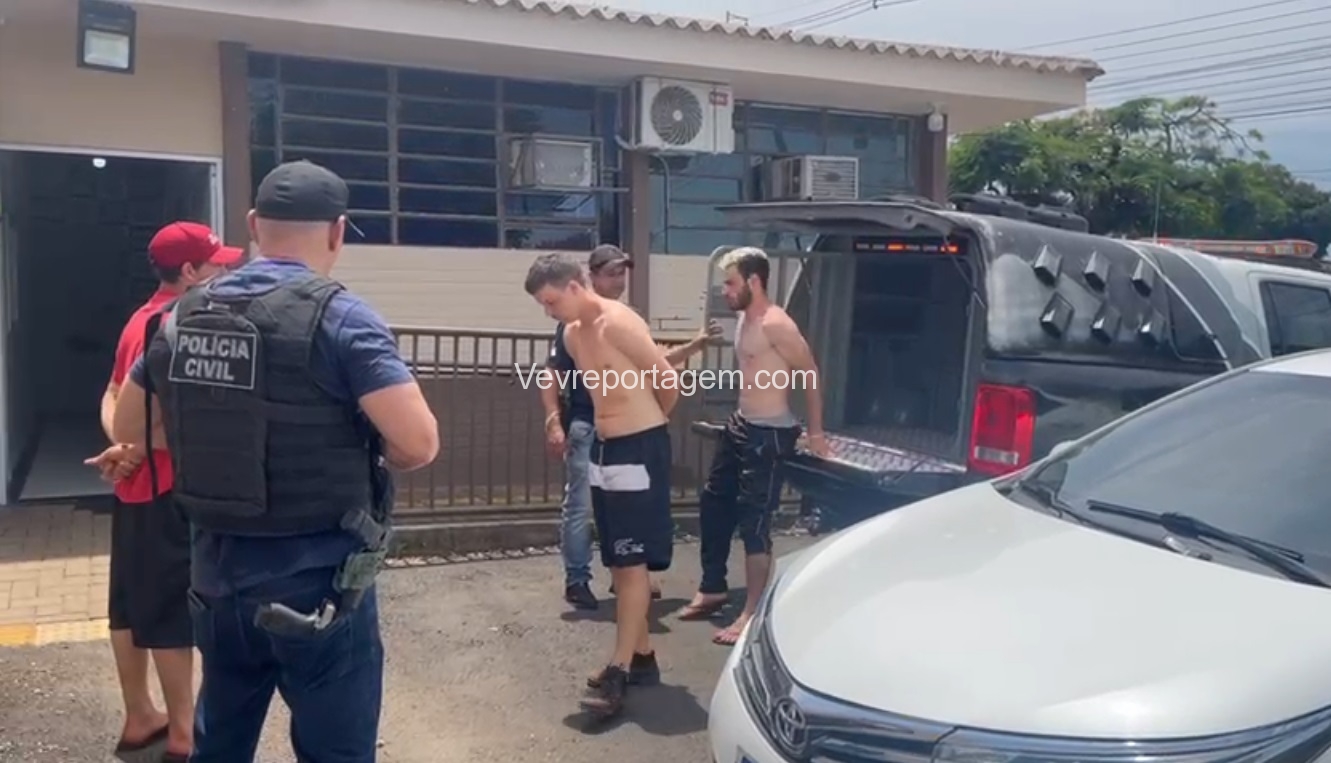 Na tarde desta quinta-feira (04), investigadores de polícia da Delegacia de Santa Terezinha de Itaipu prederam três suspeitos, de 21, 27 e 18 anos de idade, pela prática dos crimes de homicídio, homicídio tentado e tráfico de drogas.