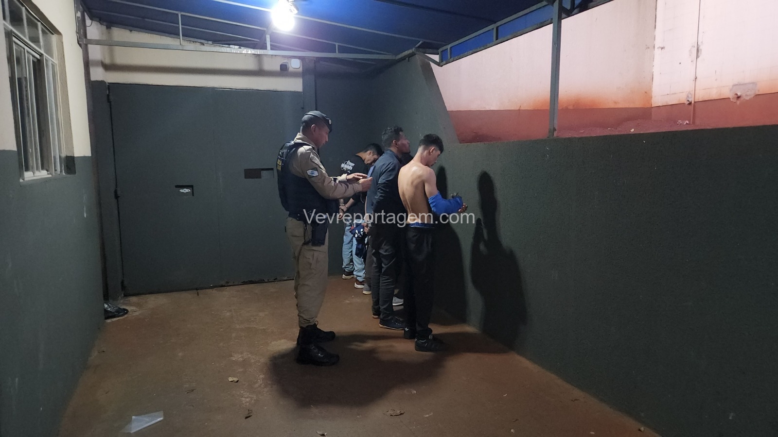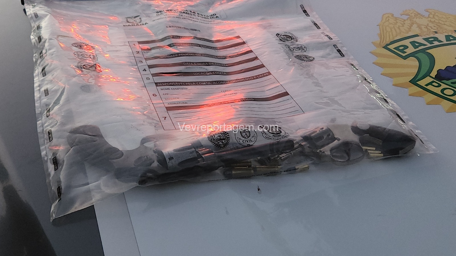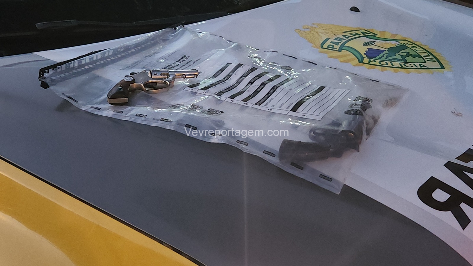 A equipe policial deslocou-se até o local e avistou o automóvel, momento em que foi dada ordem de parada, prontamente acatada pelos ocupantes. Durante as buscas, os militares localizaram uma arma de fogo nas proximidades do veículo e, em seguida, outra arma no interior do Kadett.