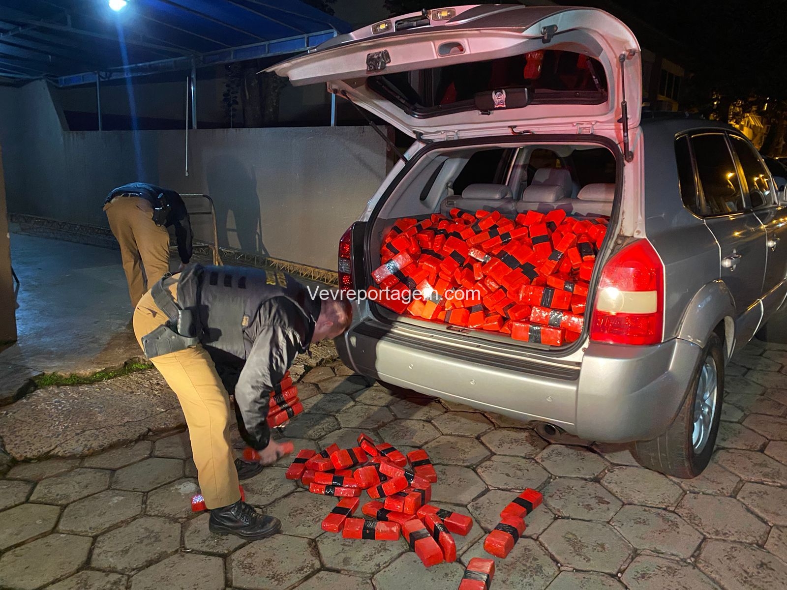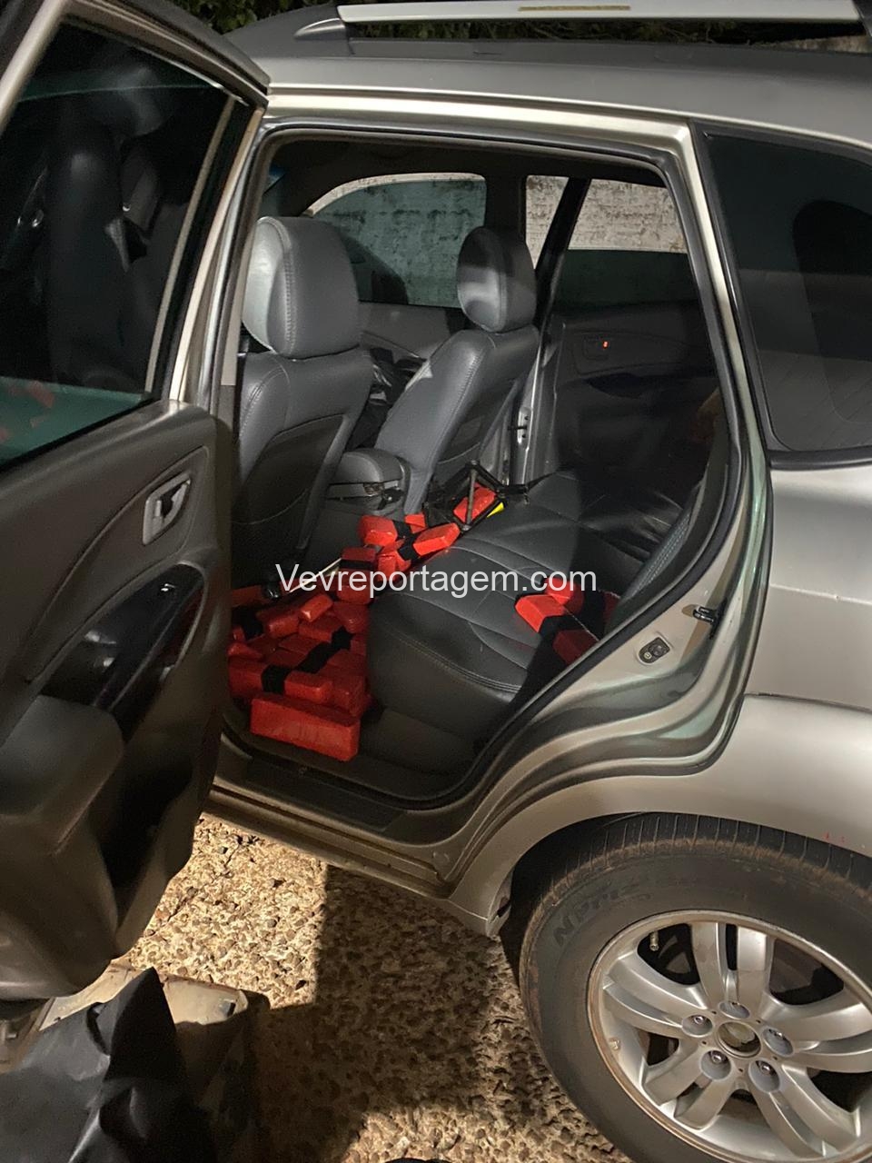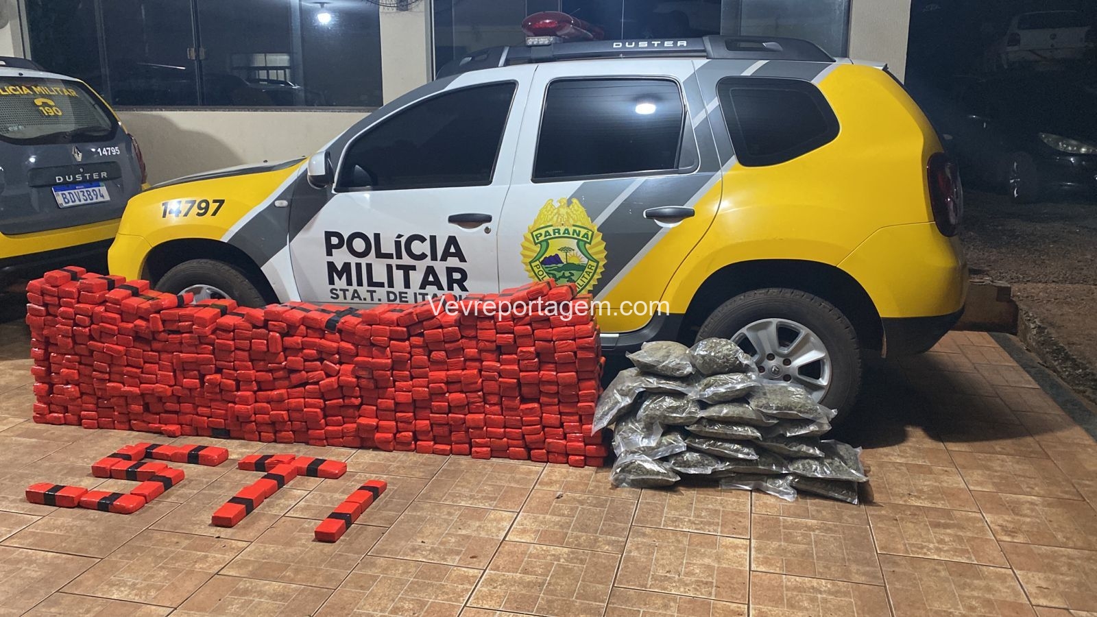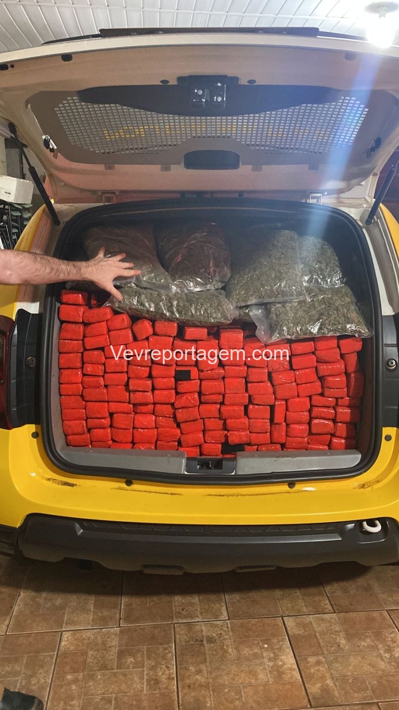 Em vistoria no veículo foi encontrado diversos tabletes de maconha no porta malas do veículo. Perguntado ao indivíduo onde levaria a droga e quantos ganharia, o mesmo disse que levaria até Santa Terezinha de Itaipu e ganharia 6 mil reais, porém, os policiais acredita que o indivíduo está mentindo e que levaria para outra cidade, pois, havia uma mala de viajem com mais roupas. O mesmo informou também que pegou a droga em Foz em um estacionamento de um posto de combustível.