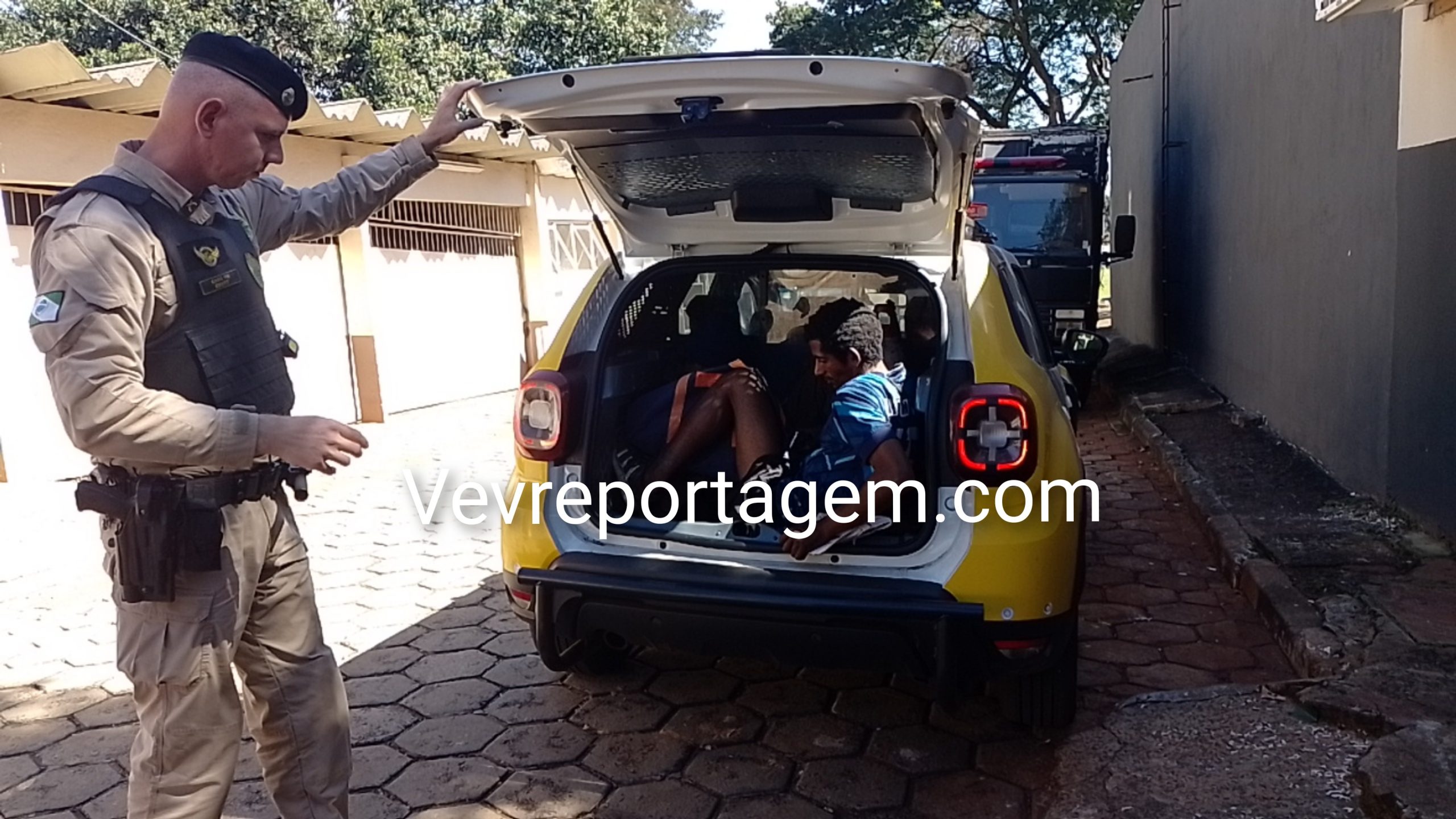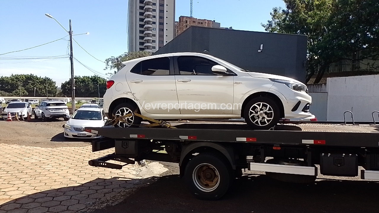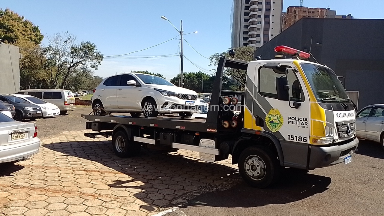 Ao chegarem ao local, a equipe abordou dois indivíduos que estavam dentro de um automóvel. Durante a checagem da placa, foi constatado que o veículo possuía registro de furto ocorrido na noite anterior.