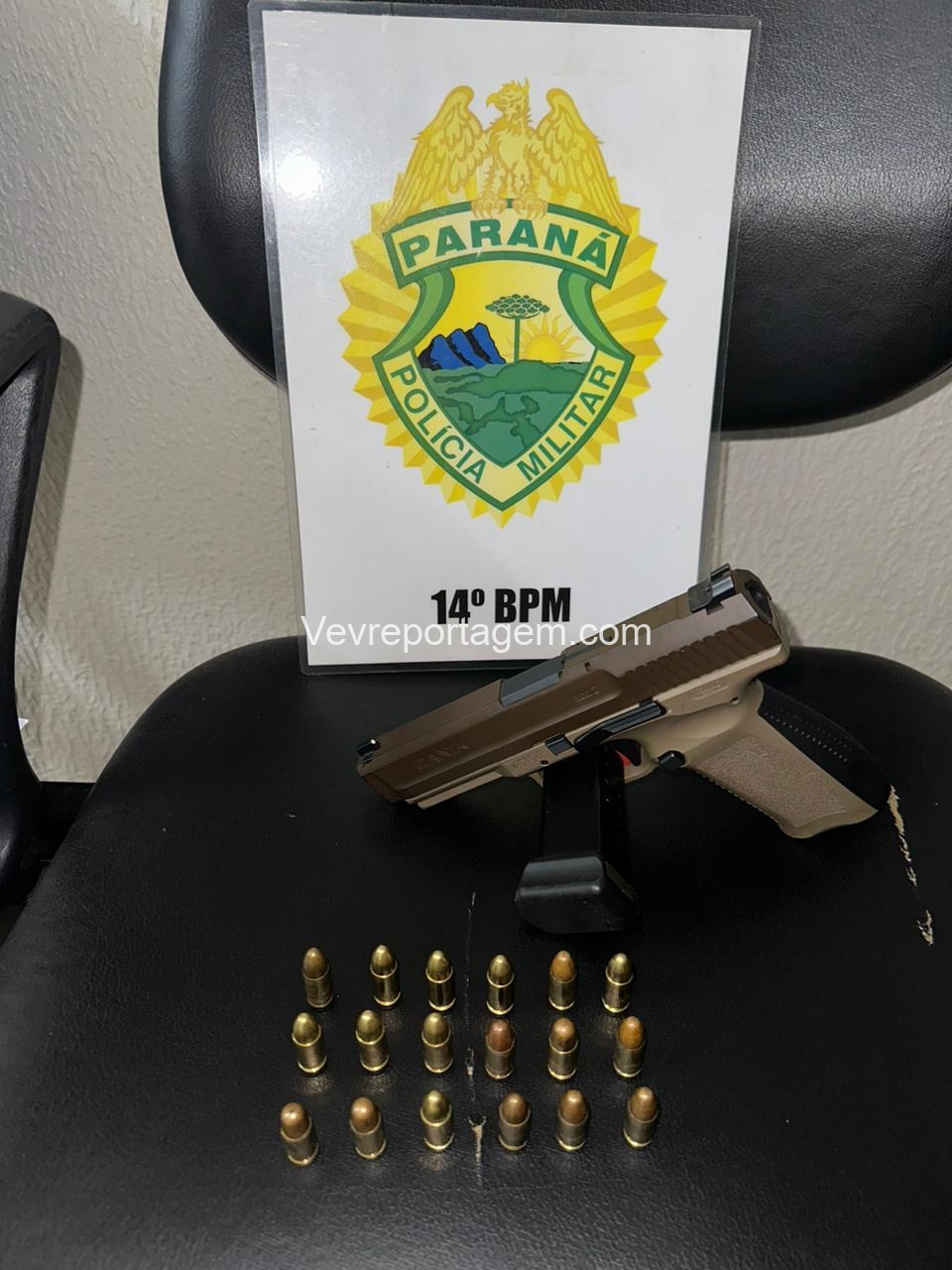 No interior do veículo, a equipe localizou uma pistola cal 9mm e com 18 munições intactas.