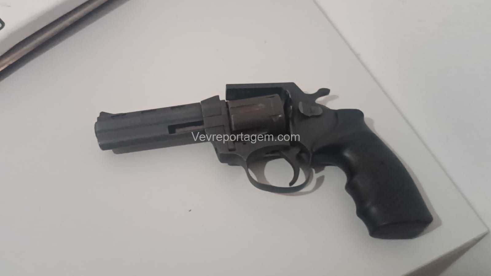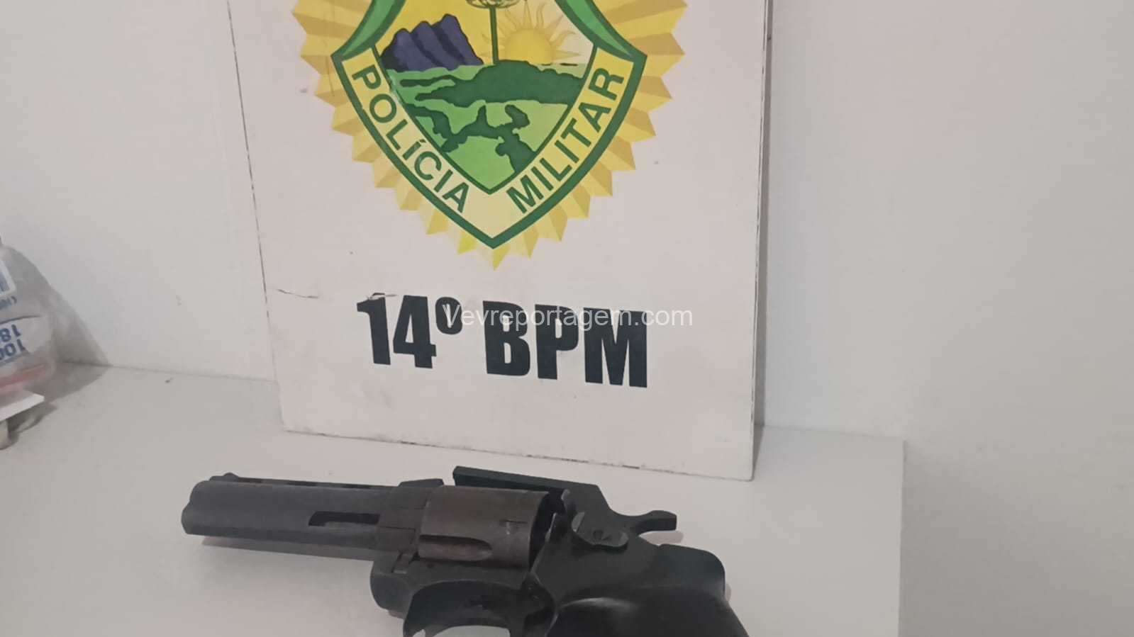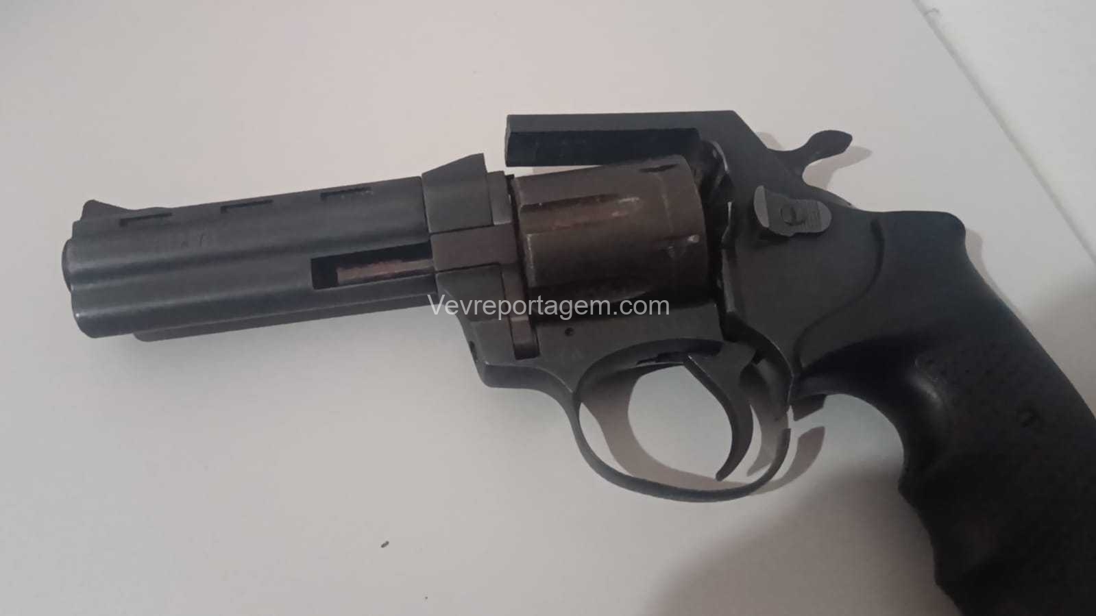 Durante a abordagem, os policiais localizaram com o suspeito um revólver calibre .38, que apresentava sinais de dano. Questionado sobre a arma, o homem relatou que iria levá-la até a região conhecida como invasão do Bubas, onde outra pessoa faria o conserto do revólver.