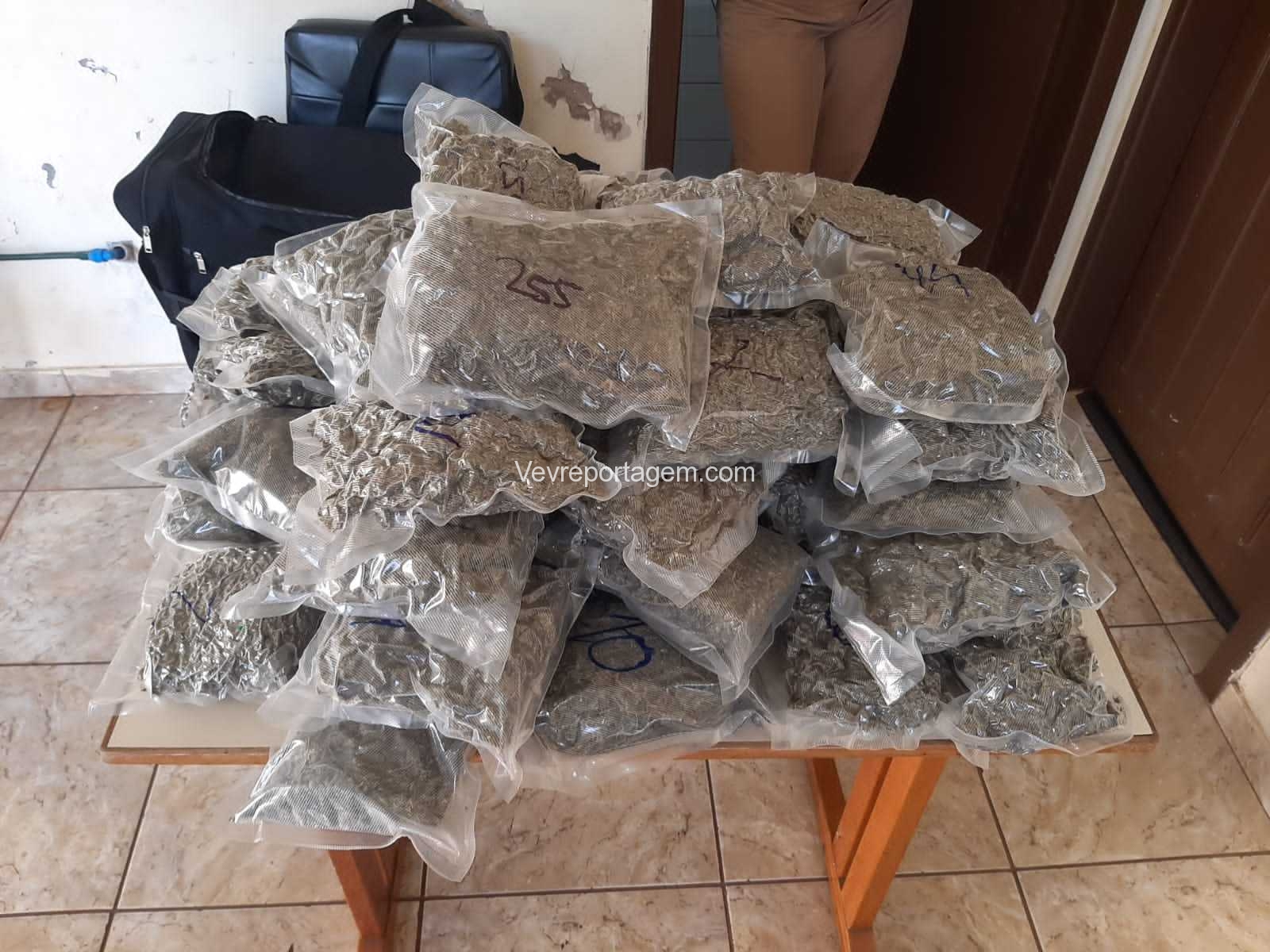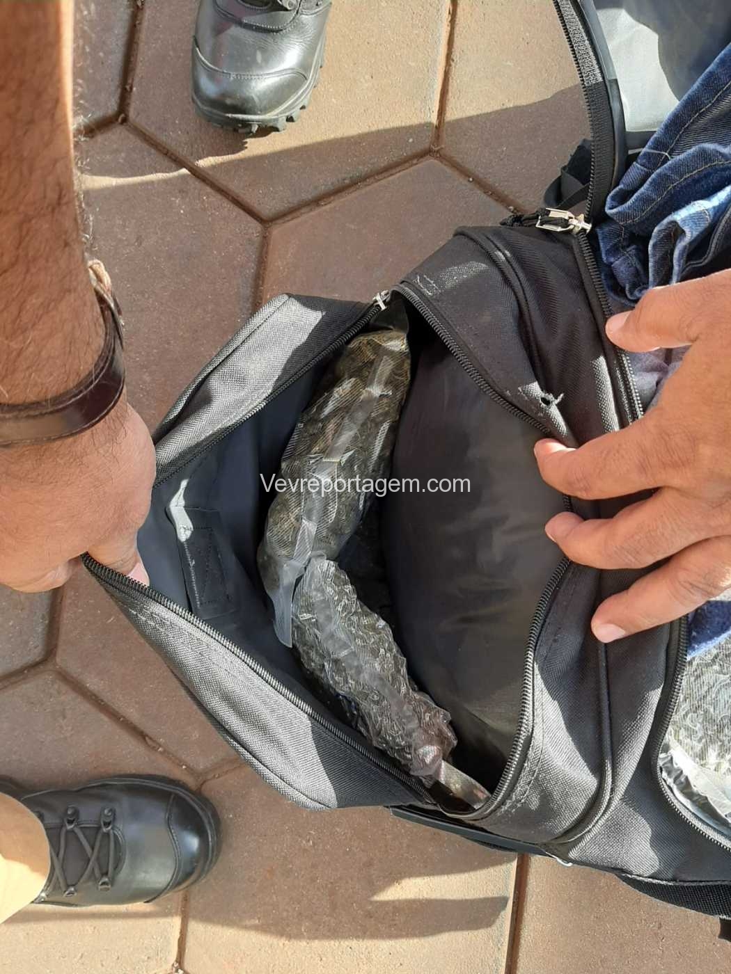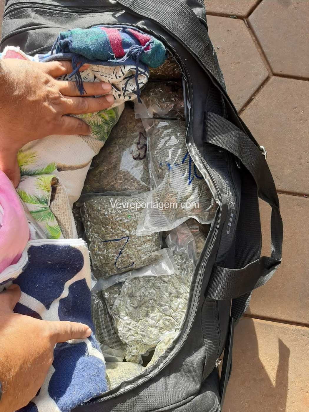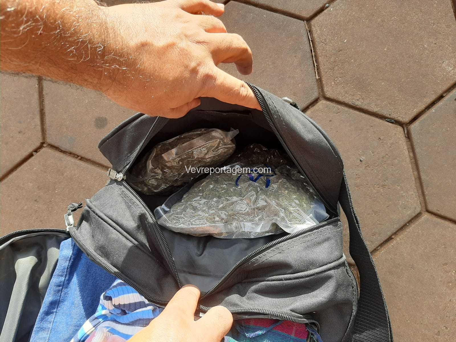 Como a Van estava parada perguntado para o motorista o que ele estava fazendo ali parado o mesmo disse estar aguardando uma pessoa que estaria dentro de uma loja de conveniência do posto. Sendo realizado vistoria nas bagagens que estavam na Van, onde foi encontrado em uma mochila diversos vácuos de maconha conhecida como “Capulho”