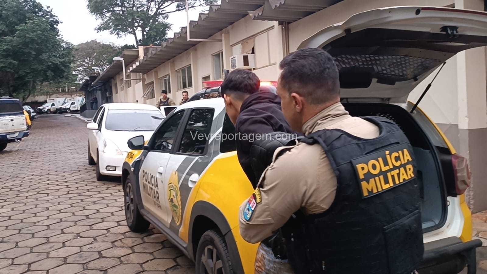 A perseguição terminou na Avenida Araucária, no bairro Três Bandeiras, onde os policiais conseguiram interceptar o carro. No interior do veículo estava um jovem de 18 anos, que já possui passagem pela polícia por tráfico de drogas, quando ainda era menor de idade.
