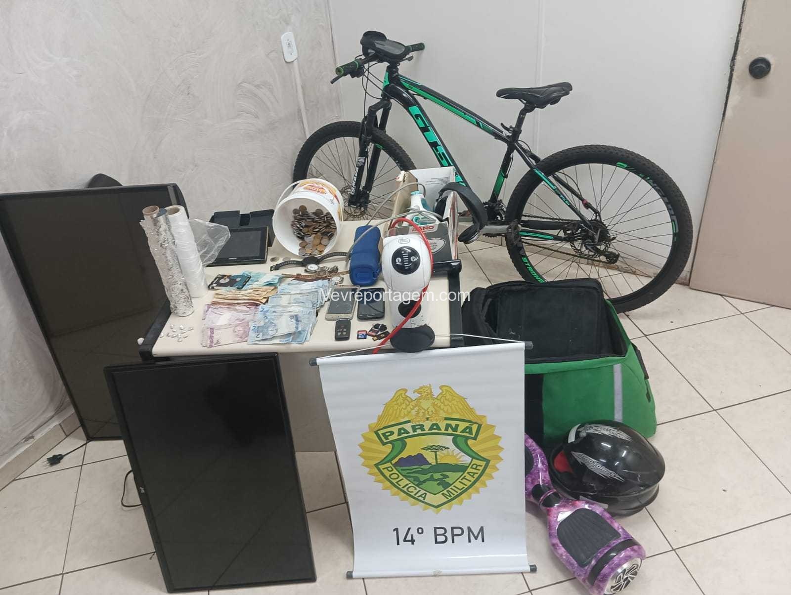 Os policiais foram até a residência e localizaram diversos produtos de furto, em outro barraco ao lado, foi localizado papel de alumínio, dinheiro em um pote, pedras de crack e documentos. Em uma filmagem foi possível observar que a motocicleta era a mesma utilizada para cometer furtos na área Leste de Foz.