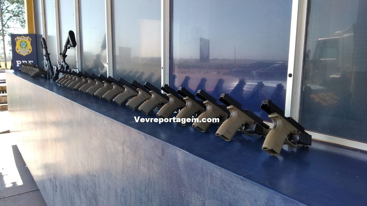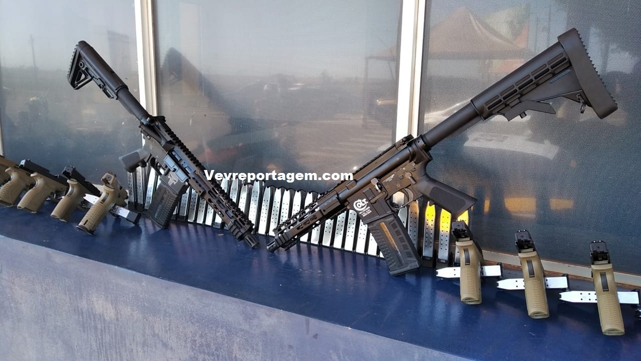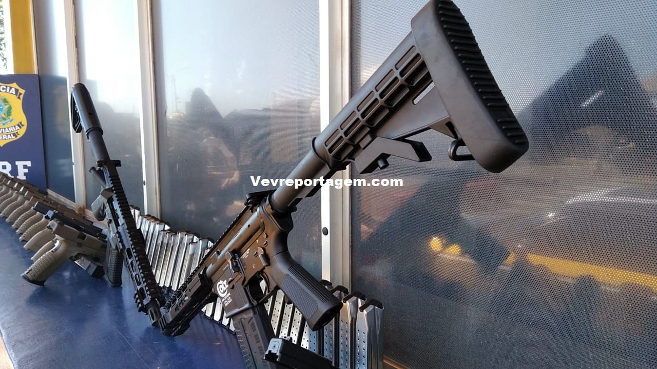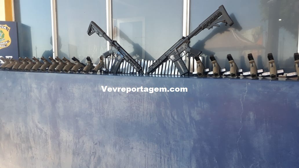A expertise dos policiais aliada à aplicação de técnicas de entrevista acarretou em uma busca minuciosa avançada em compartimentos ocultos nas laterais traseiras de um veiculo, sendo flagrados 2 fuzis da marca Colt, dos EUA, de calibre 556, 31 pistolas da marca HS, da Croácia, de calibre 9mm, com mira laser, e 62 carregadores de pistolas.