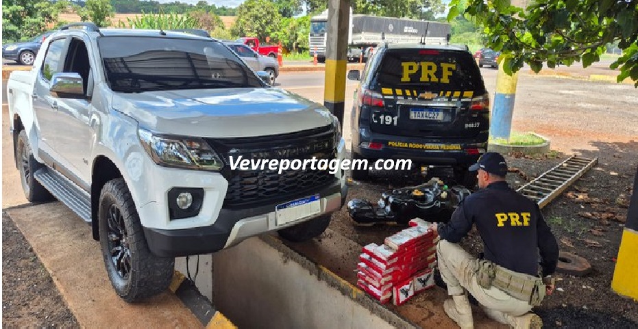 Na manhã do mesmo domingo (8), em São Miguel do Iguaçu, a PRF abordou o motorista de uma caminhonete. O condutor, de 25 anos, apresentou informações contraditórias sobre a viagem, o que levou ao aprofundamento da abordagem. Durante a vistoria, os policiais localizaram 46 tabletes de cocaína escondidos no interior do tanque de combustível do veículo, somando 46,5 kg da droga.