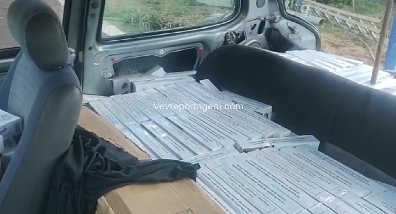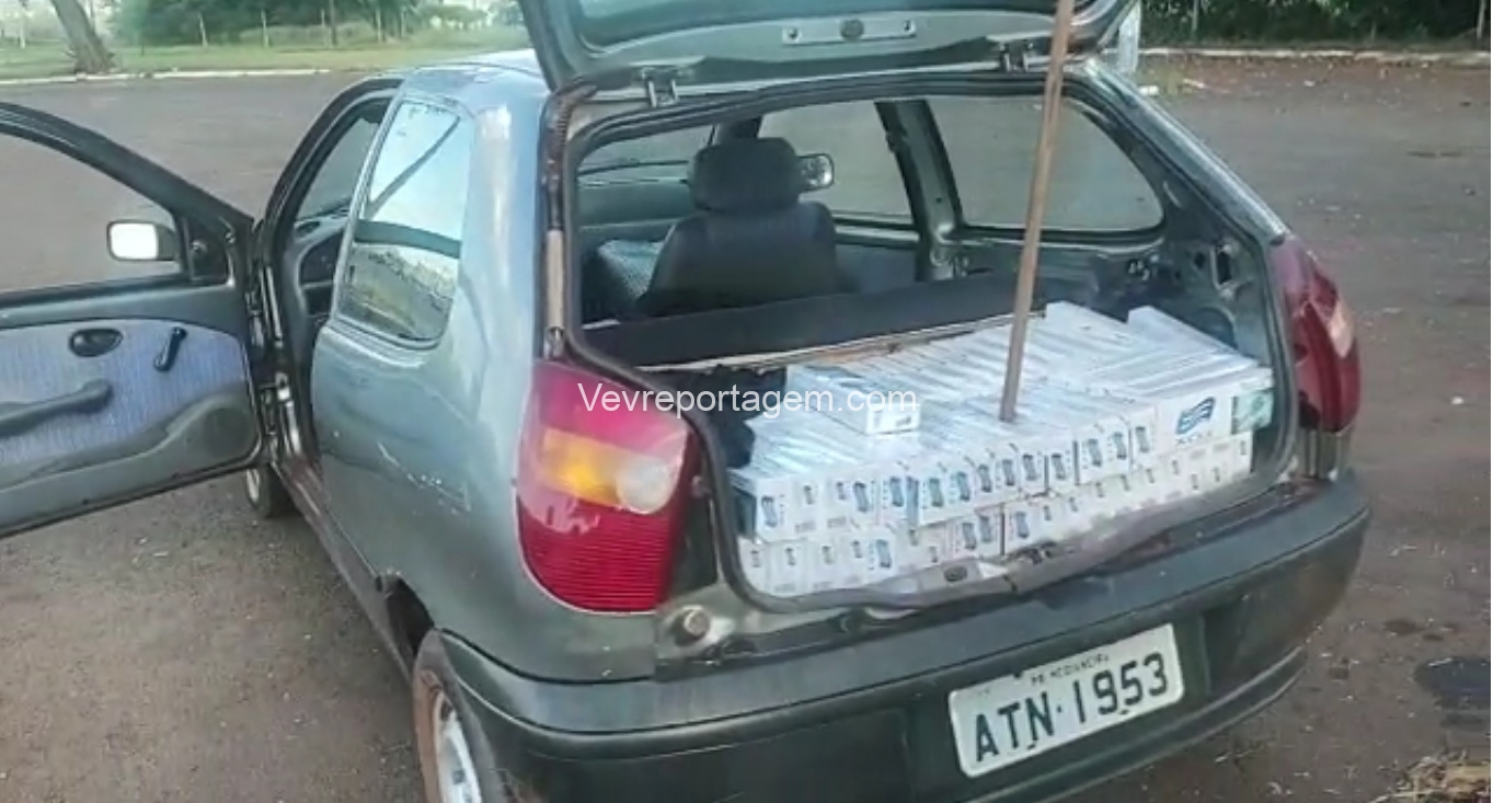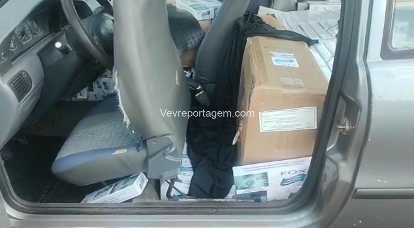 De imediato, foi verificado pela equipe que o citado veículo estava carregado com uma grande quantidade de cigarros de origem estrangeira, escondidos sobre o banco traseiro, do passageiro dianteiro e no, porta malas, todos cobertos com um pano preto.