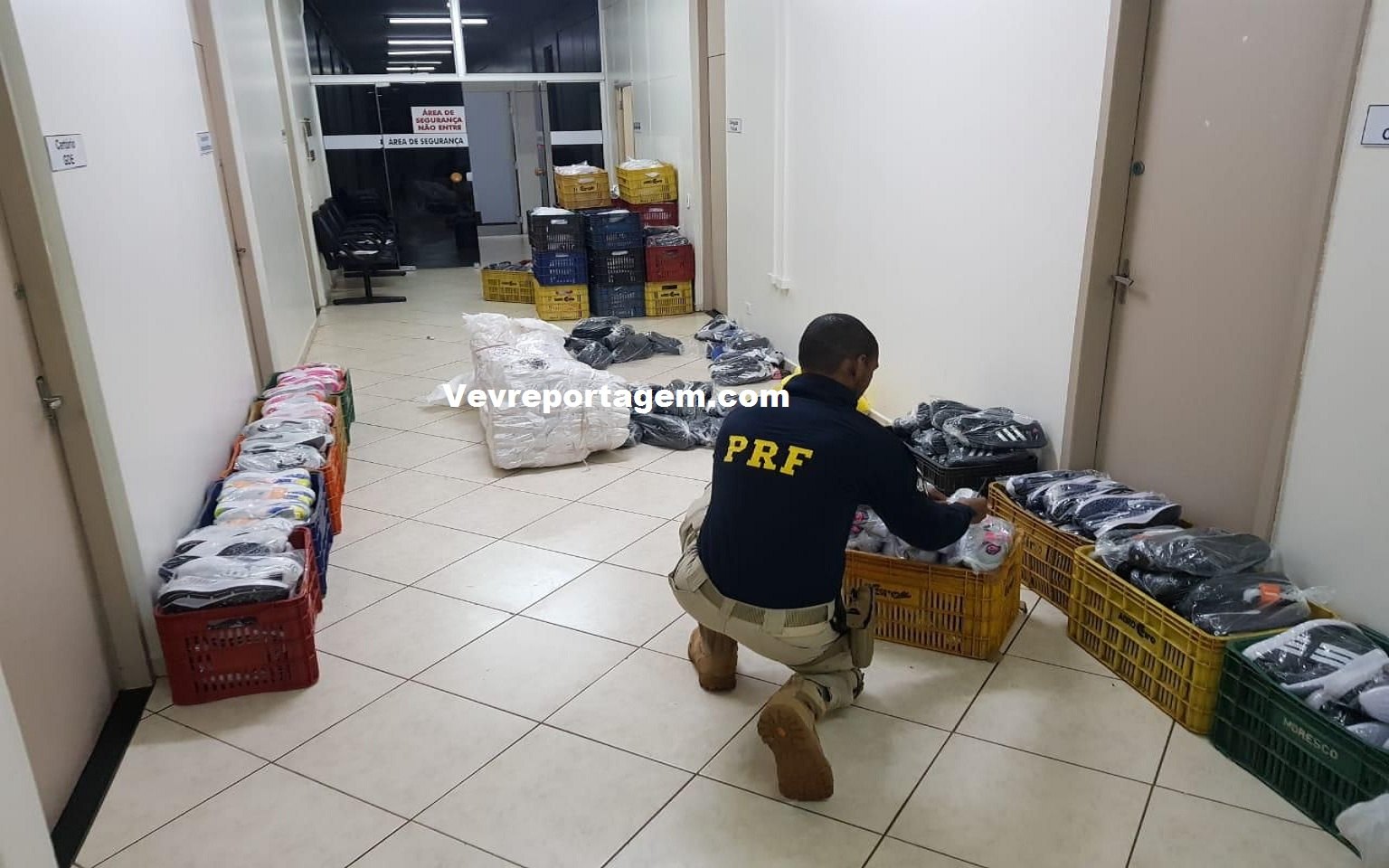 Em verificação ao veículo, foram encontrados 884 pares de calçados em embalagens plásticas divididos em 12 fardos maiores. Após contato com os fabricantes das marcas de calçados encontradas no veículo, foi constatado que seriam produtos contrafeitos, praticando assim os ilícitos do Art. 66 do Código de Defesa do Consumidor (Lei n.º 8.078/1990), o Art. 175 do Código Penal Brasileiro e crime contra a marca conforme art. 190, inciso I da Lei de Propriedade Industrial (Lei nº 9.279/1996).