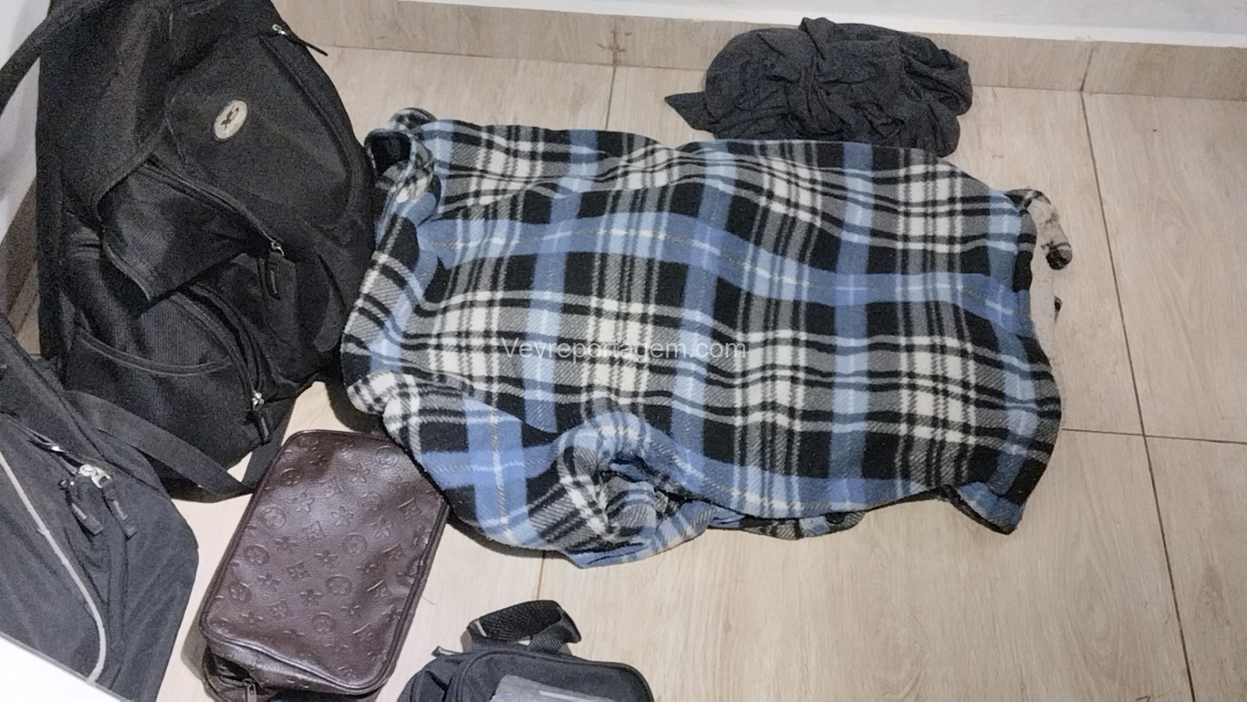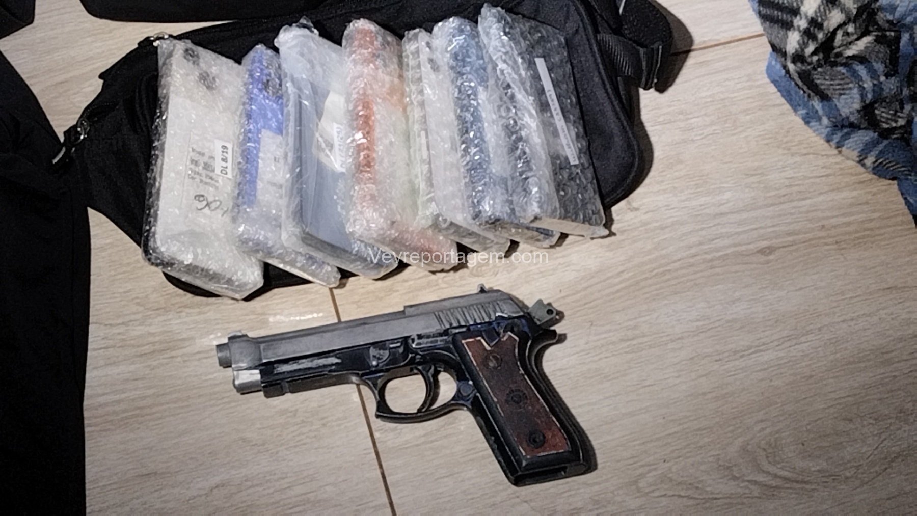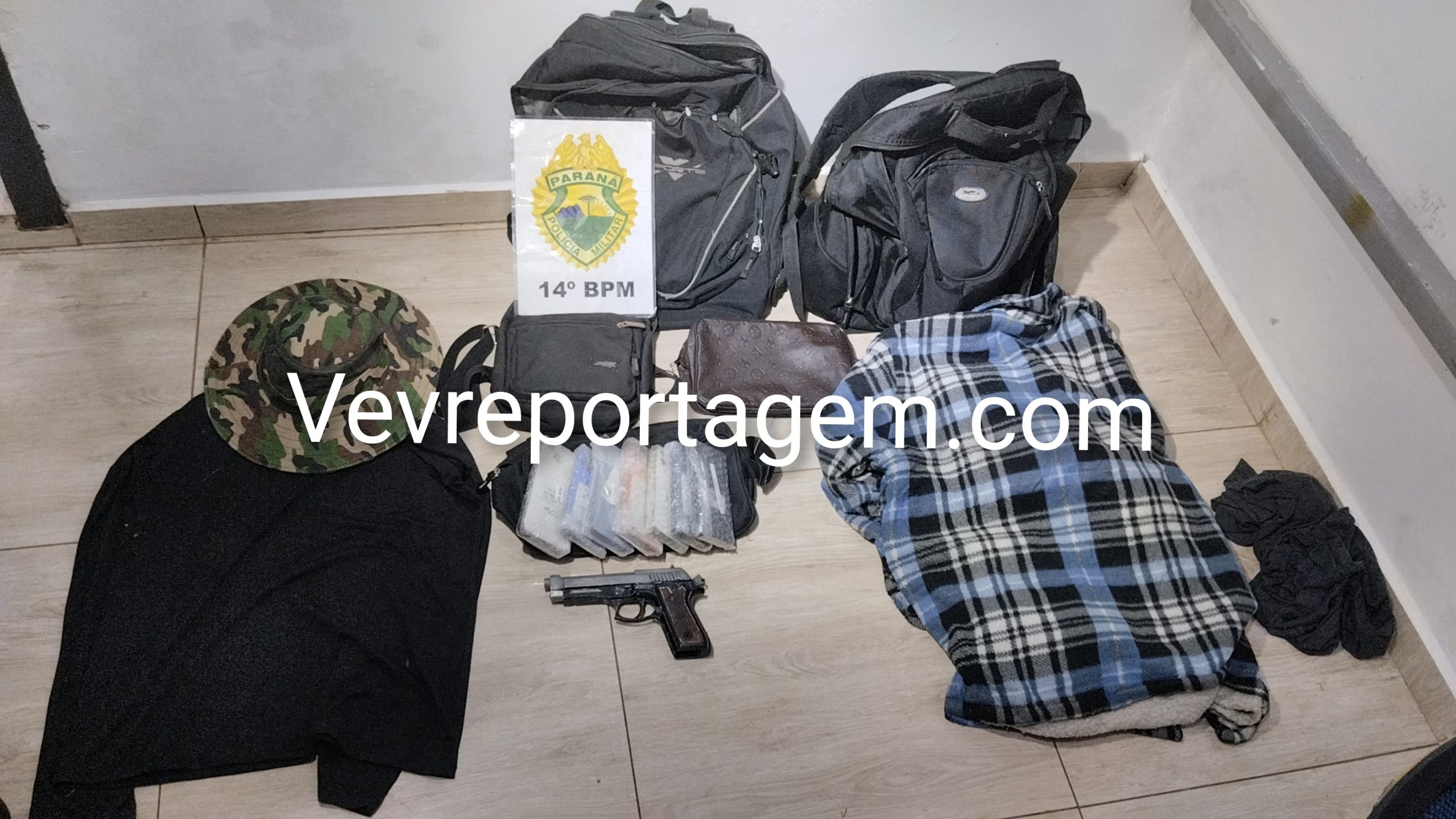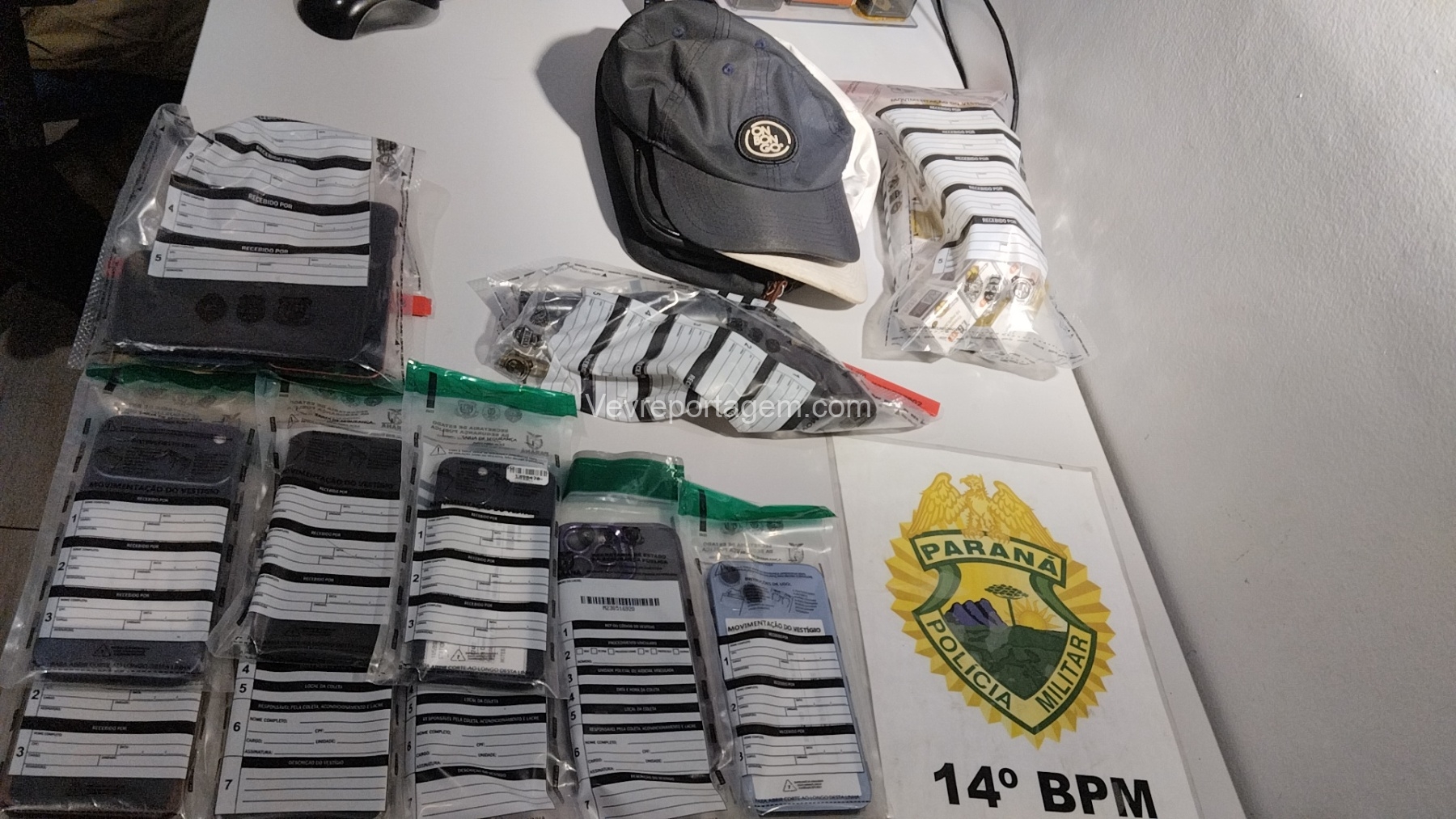 No interior de um dos automóveis estavam uma mulher, um menor de idade e dois homens. Durante a revista pessoal e veicular, os policiais localizaram um revólver calibre .38, municiado, os pertences roubados das vítimas, roupas utilizadas no crime, além de aproximadamente 30 aparelhos iPhone. Também foi encontrado um simulacro de arma de fogo, do tipo pistola.