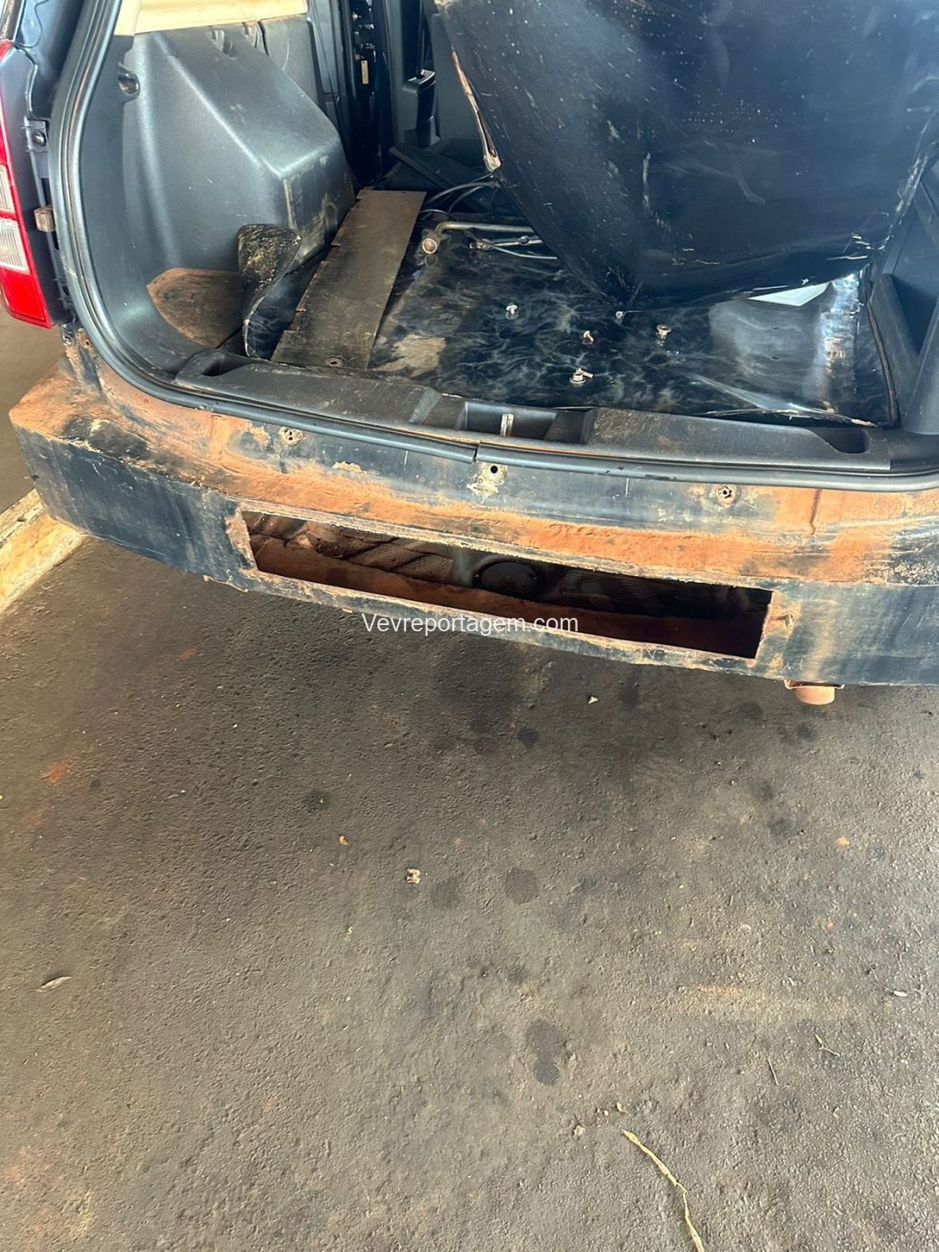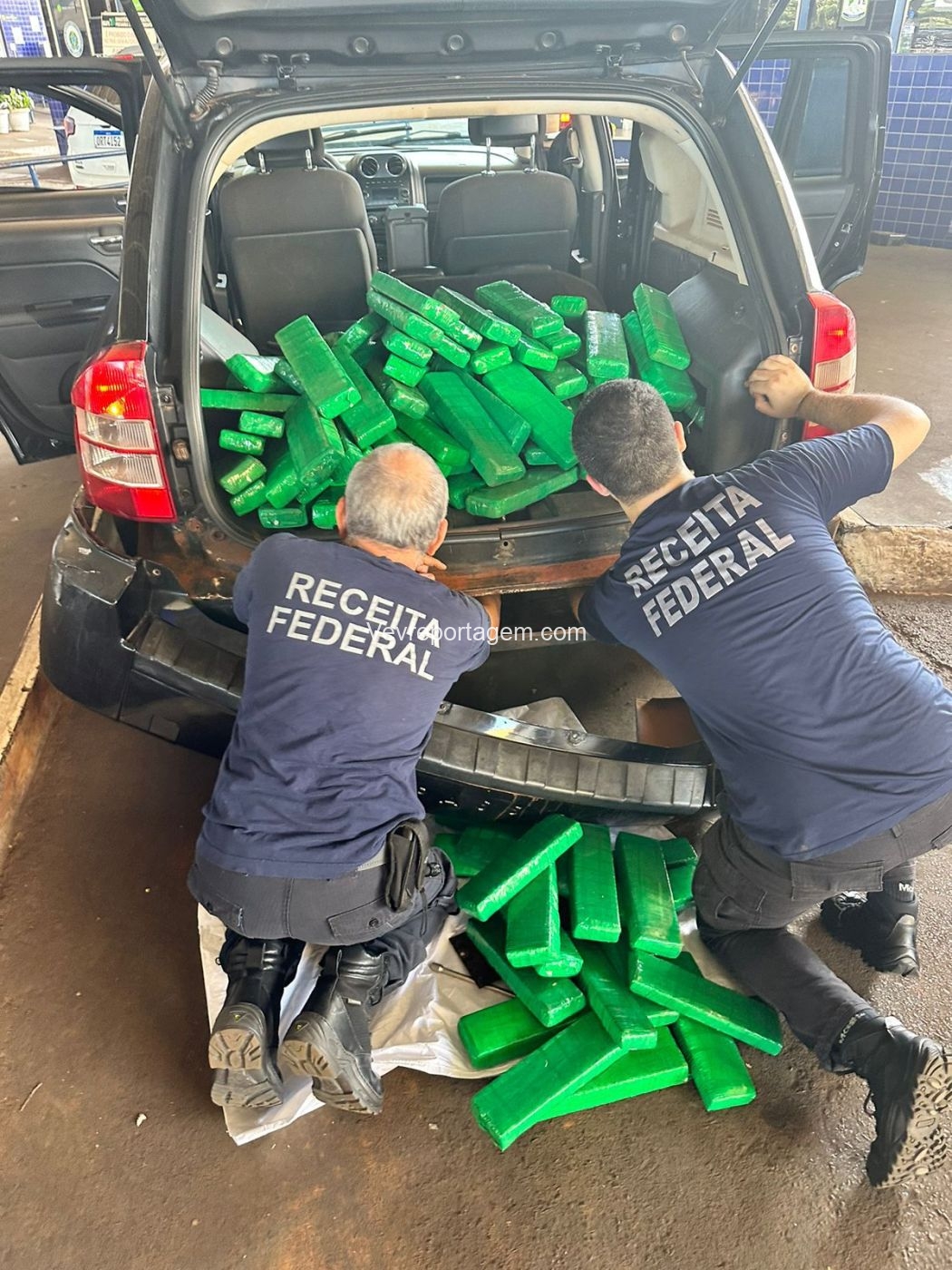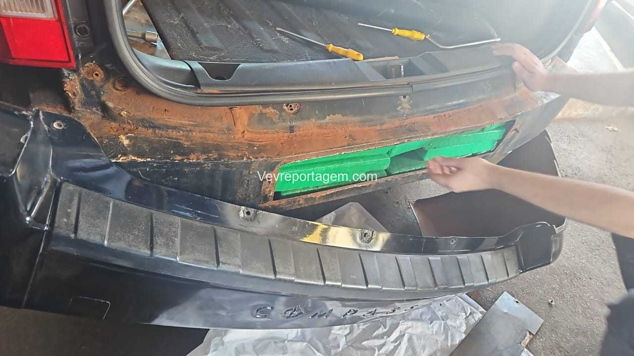 Durante a vistoria, os servidores da Receita Federal encontraram 160 tabletes de maconha, totalizando aproximadamente 145 kg, escondidos em um fundo falso no parachoque traseiro do carro. As duas mulheres foram presas em flagrante por tráfico internacional de drogas e levadas à Delegacia da Polícia Federal em Foz do Iguaçu, junto com a droga apreendida