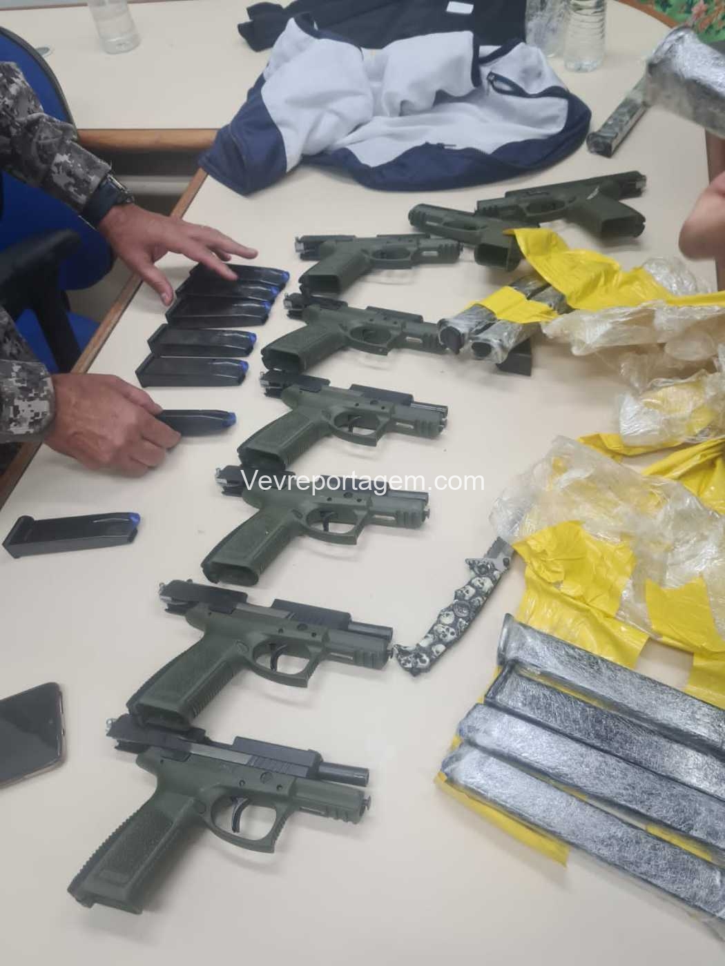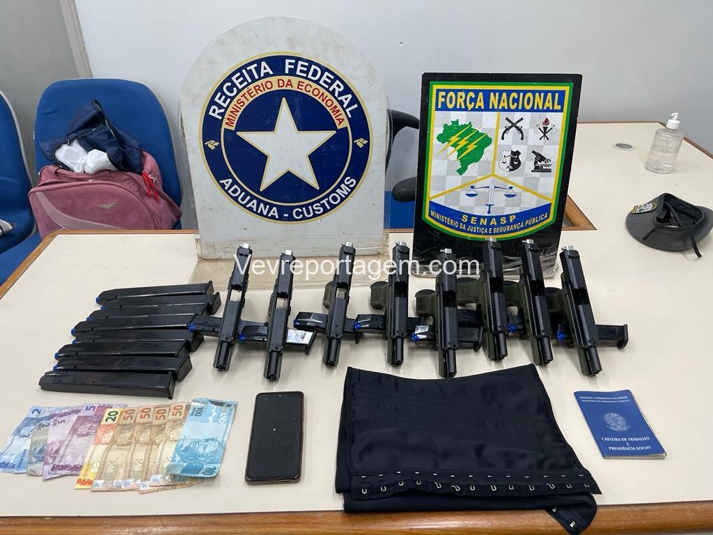 Durante uma fiscalização de rotina a uma van de placas paraguaias, os servidores abordaram uma das passageiras, de nacionalidade brasileira. No decorrer da revista pessoal da mesma, localizaram 8 pistolas turcas, 16 carregadores, sendo 8 estendidos, afixados na cintura da passageira, por meio de uma cinta e fitas, escondidas sob as roupas.