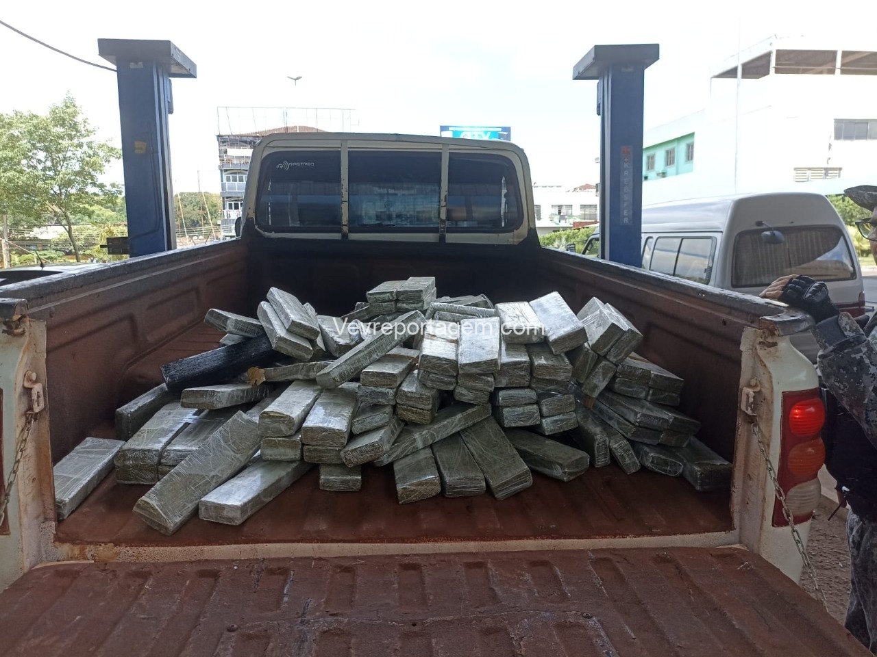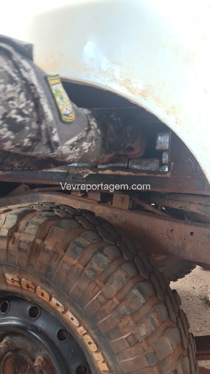 A droga estava oculta em fundos falsos no veículo que entrava no Brasil.