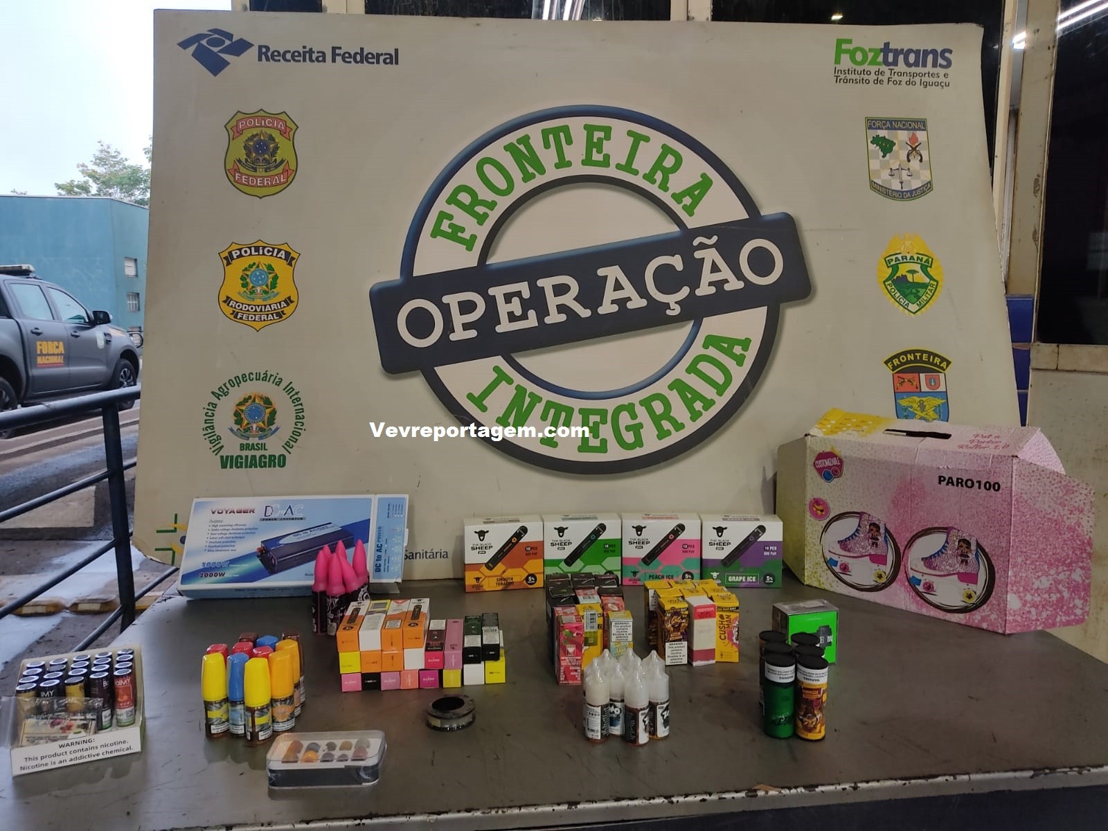 De todas as fiscalizações ocorridas neste dia, 56 resultaram em retenções. Entre elas, estão itens diversos, como cigarros, essências, carvão natural, pneus, medicamentos, ferramentas, produtos para pet shop, eletrônicos, entre outros.