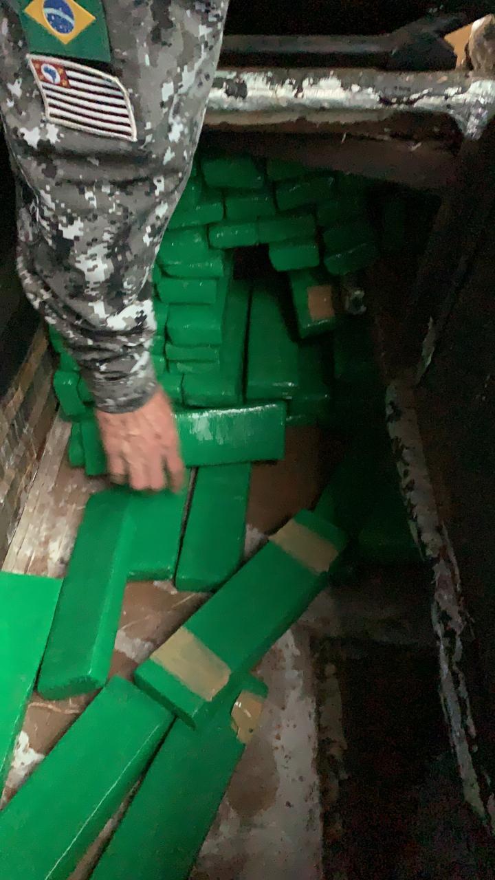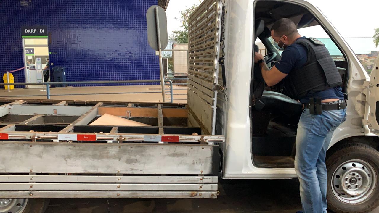 No veículo foram encontrados cerca de 531 kg de maconha escondidos em fundos falsos na carroceria e embaixo do banco do passageiro.