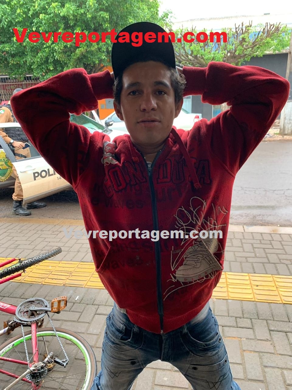 Os policiais deslocaram até o local onde foram informados que o homem teria saindo do local em uma bicicleta, os policiais em patrulhamento na Rua Golfinho avistou um homem com as mesmas características, onde abordaram o mesmo e em seguida mostrado para o solicitante que reconheceu o mesmo que estava tentando furtar o automóvel.