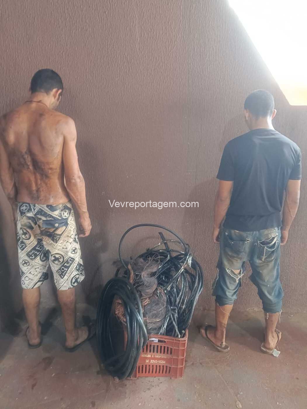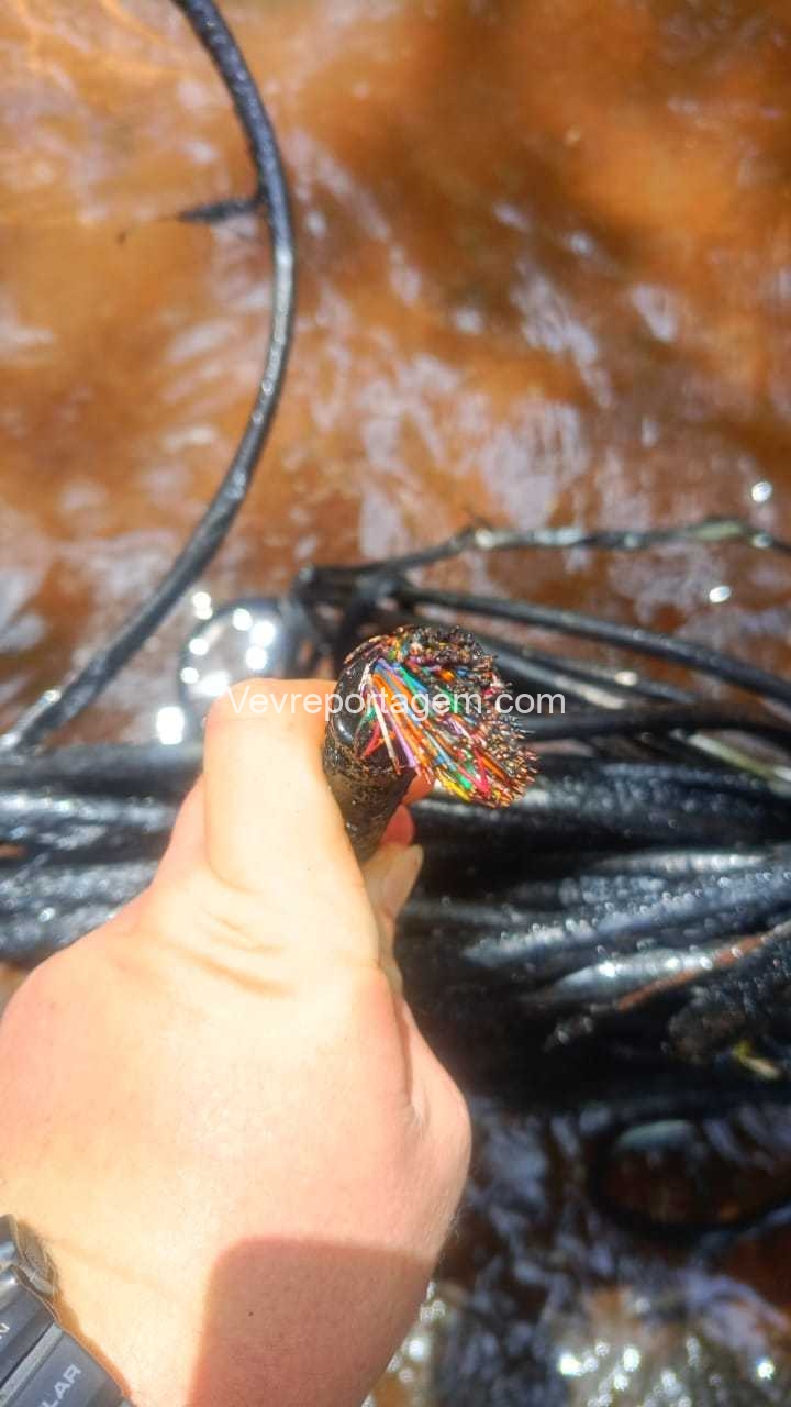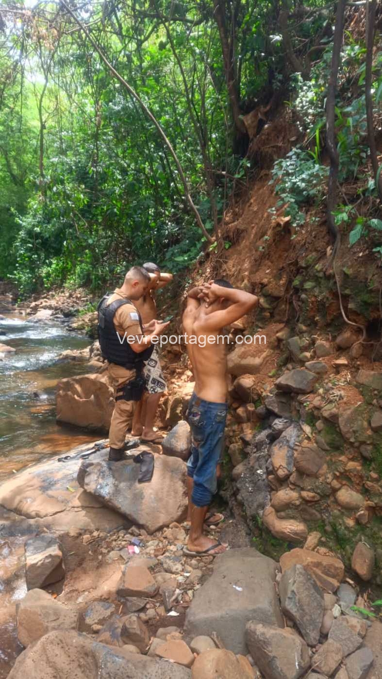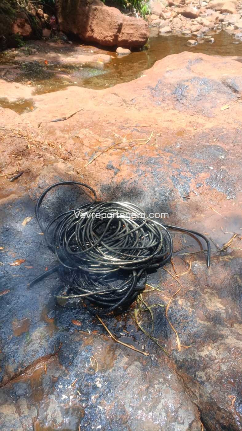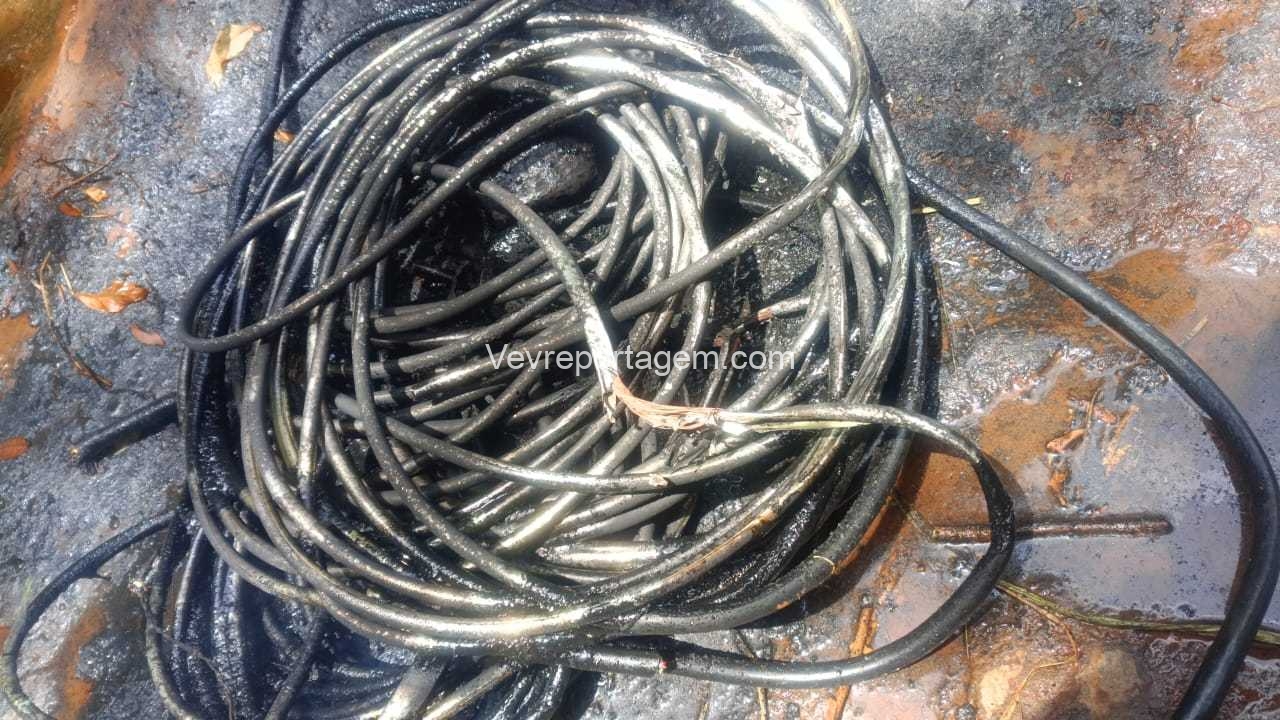 A equipe desceu até a barranca e avistaram os dois elementos queimando fios, sendo então realizado abordagem nos indivíduos. Em conversar com os dois indivíduos, eles acabaram confessando que tinham furtados os fios, e que estavam queimando para ir vender.