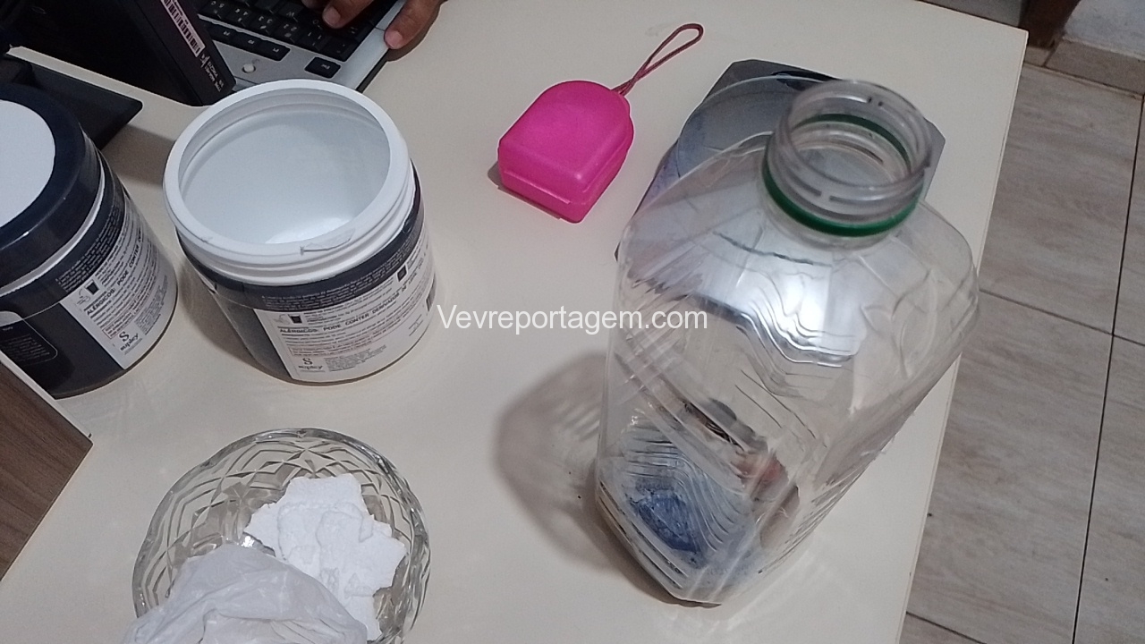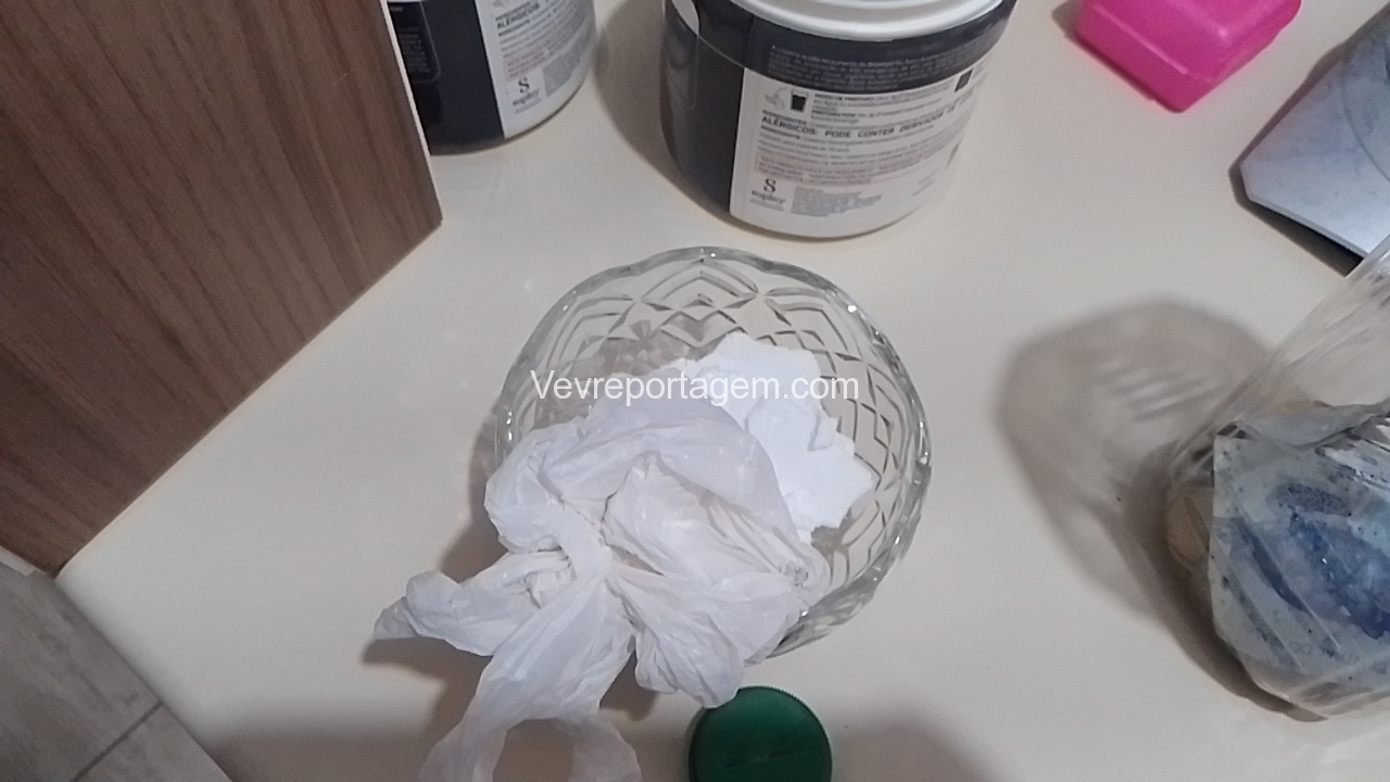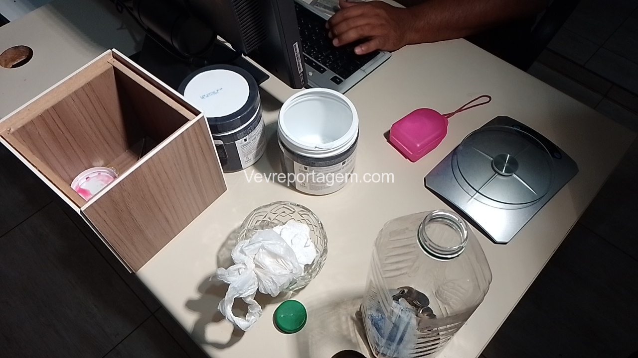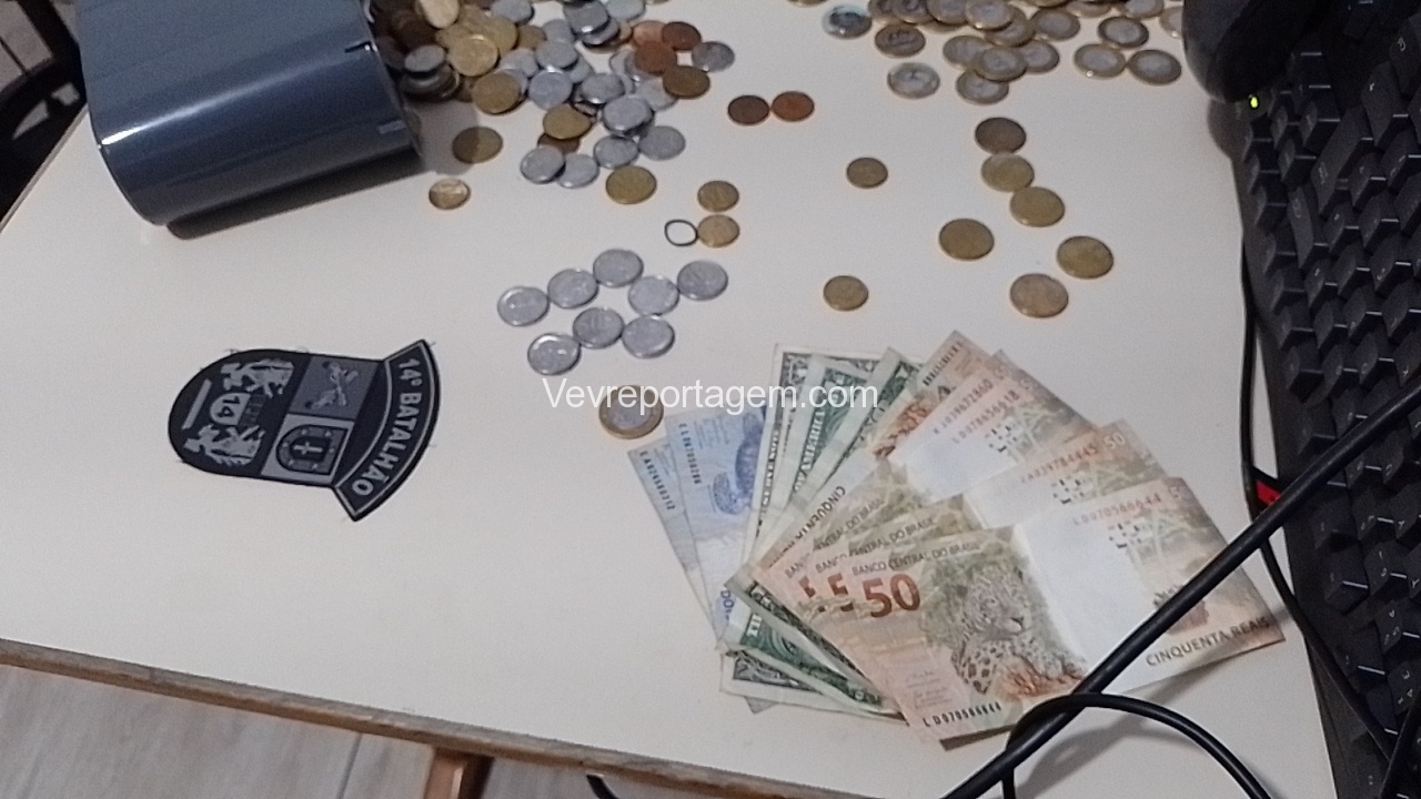Em vistoria na residência foi localizado mais droga sendo substância aparentando ser cocaína, moedas e dinheiro em papel de espécie trocados e notas graúdas.