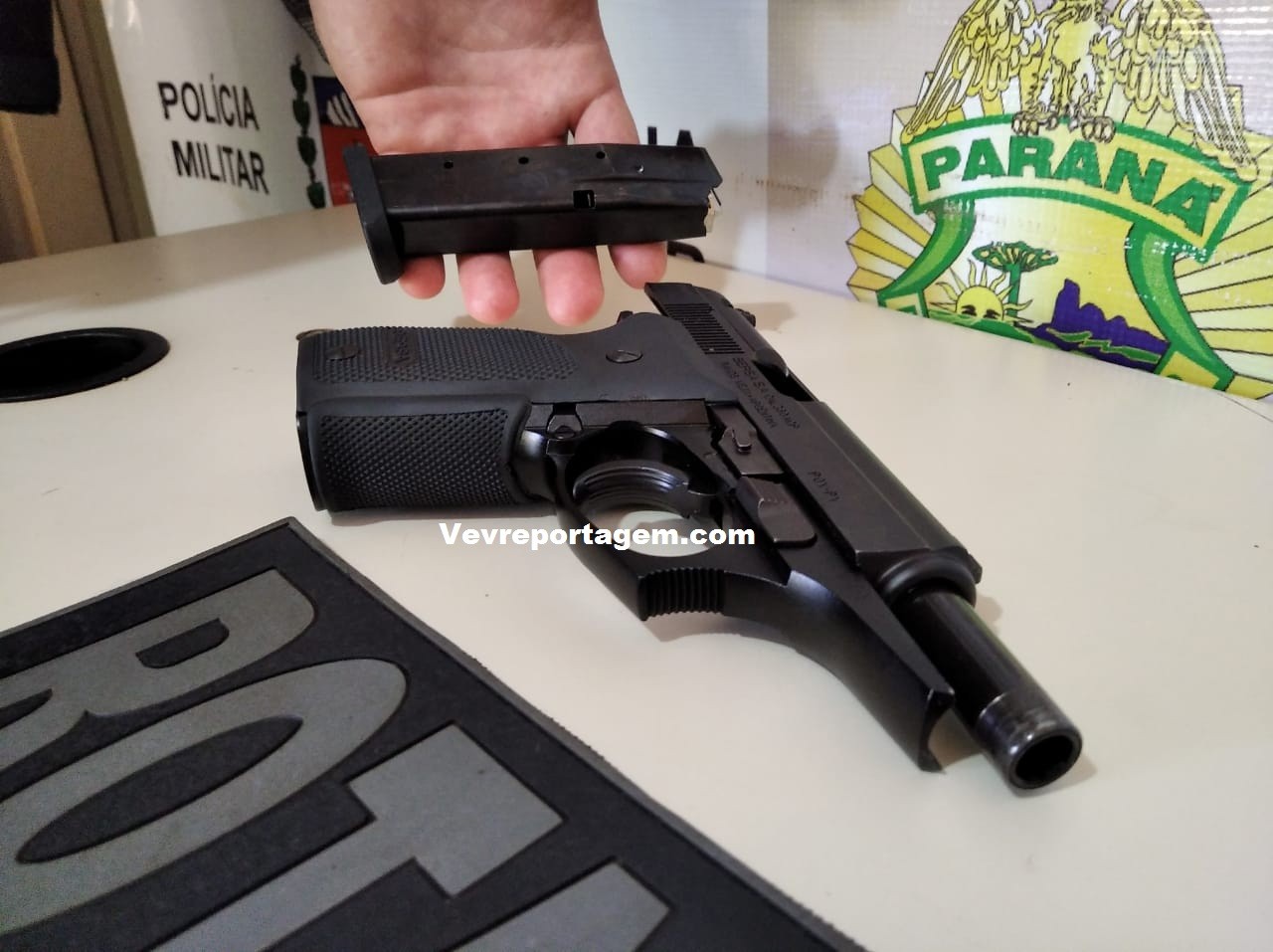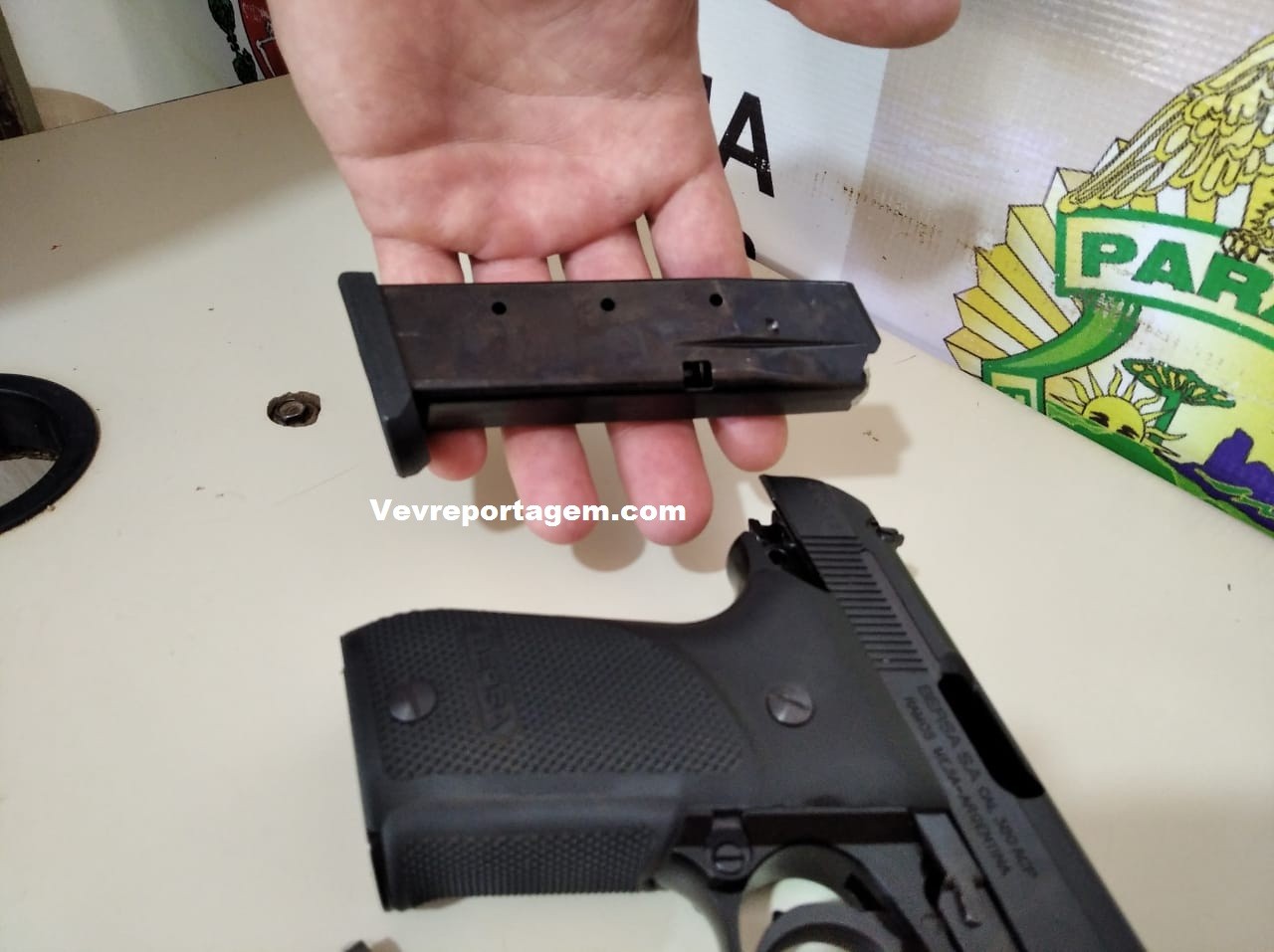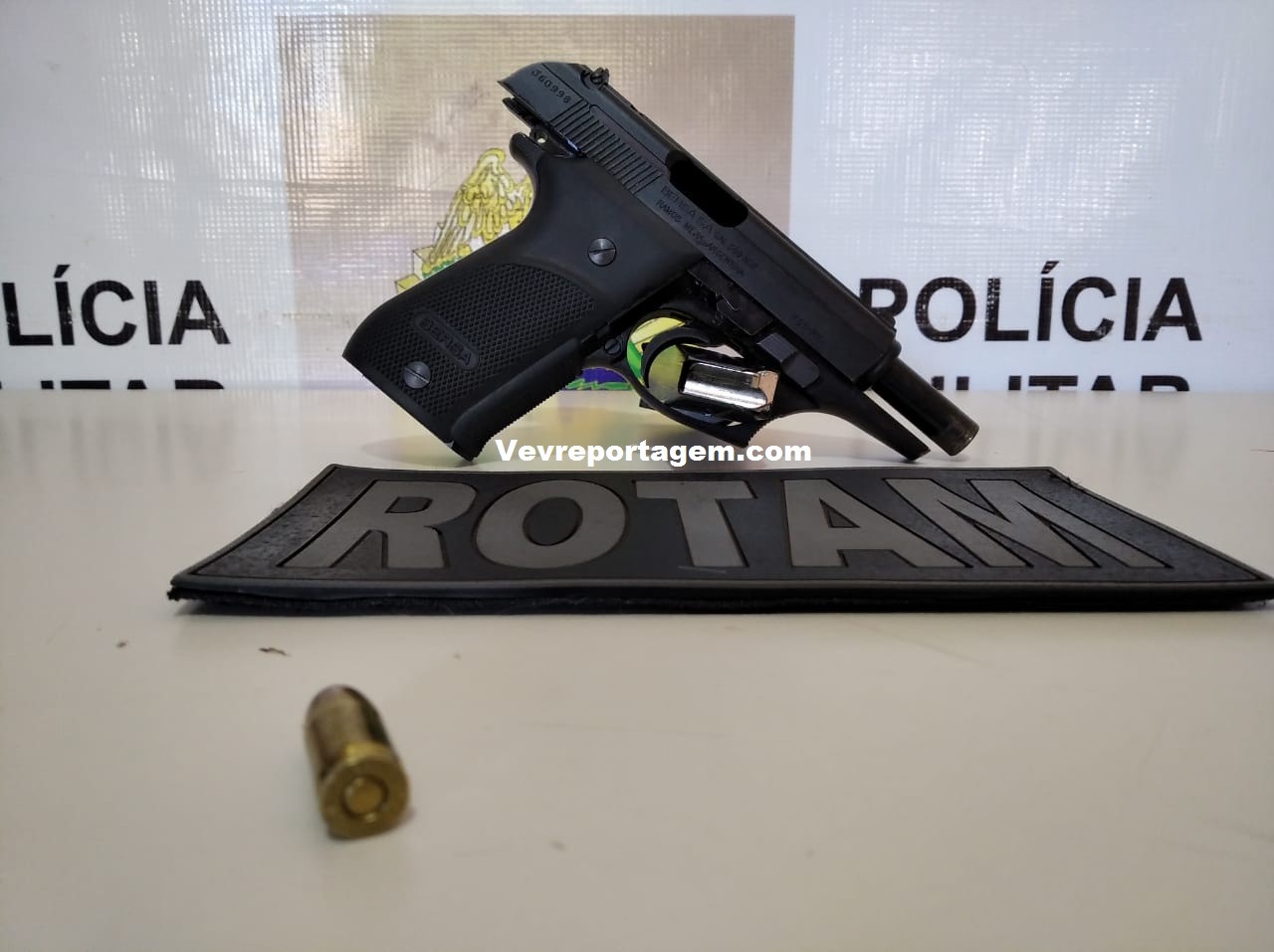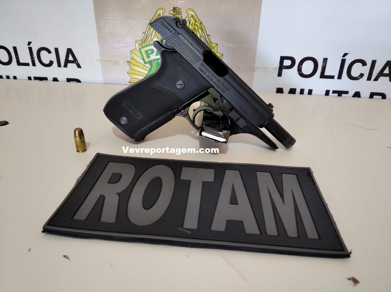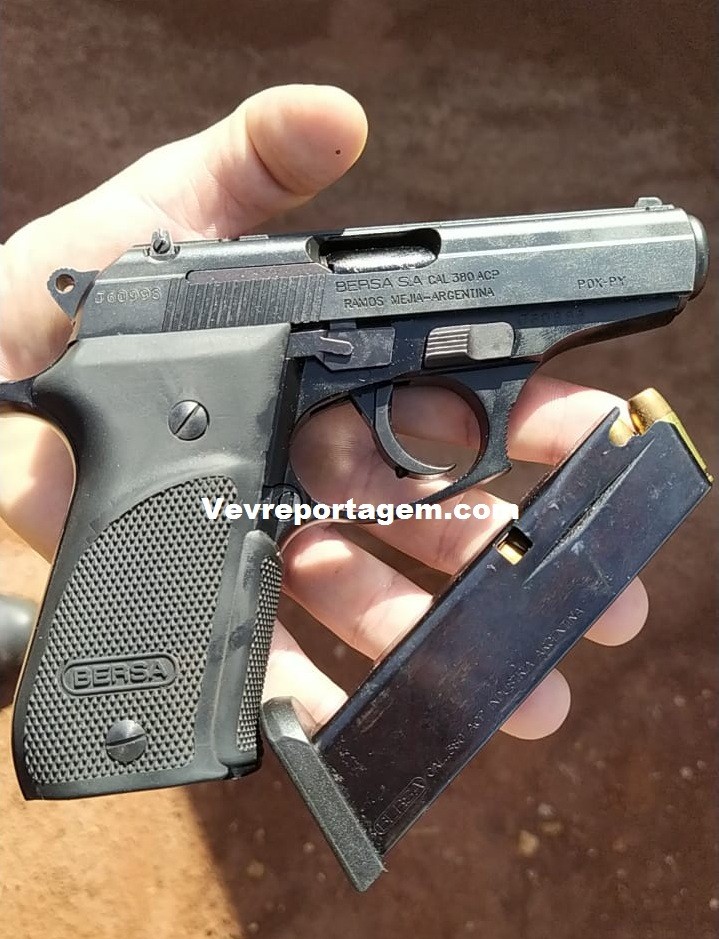 Os policiais deslocaram até o local e realizaram uma incursão a pé no meio da mata, foi nesse instante que avistou um grupo de pessoas, quando perceberam a aproximação dos policiais tentaram fugir, mas porém todos foram abordados. Em revista pessoal a um menor de idade, foi localizado uma pistola calibre .380 com 12 munições intactas.
