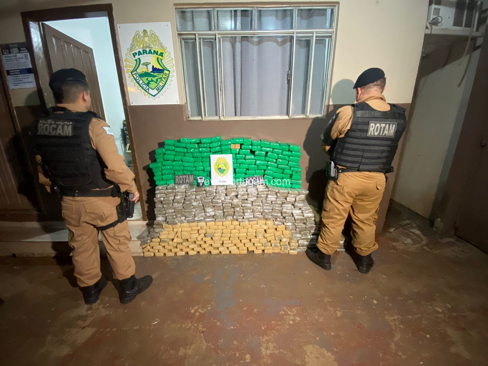 No interior do veículo foram localizados 422kg de substância análoga a maconha, além de duas placas de outro veículo.